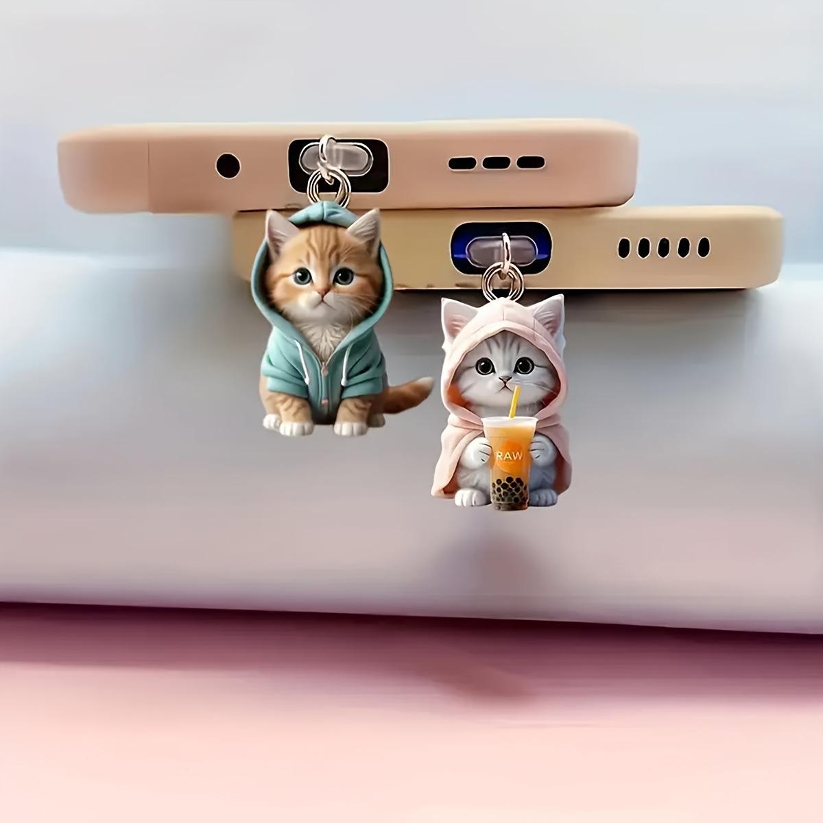 Tapón antipolvo acrílico plano para teléfono móvil transfronterizo, colgante de gato lindo, adornos adecuados para la interfaz Apple Tipo C