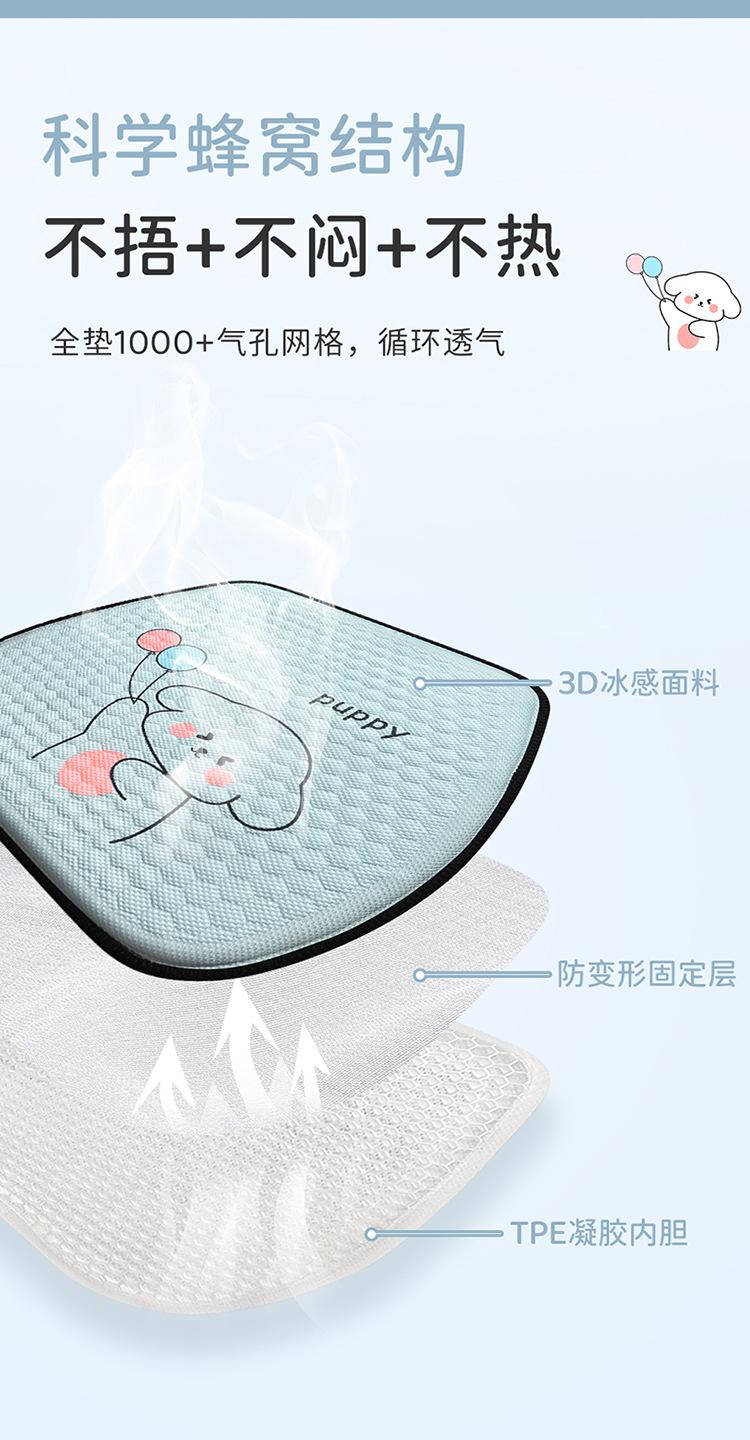Cojín para Asiento de Coche Cojín de Gel para las Cuatro Estaciones Cojín Refrescante Transpirable Refrescante Cojín Cuadrado de Dibujos Animados Cojín para Asiento de Coche Funda para Asiento Suministros para Coche