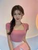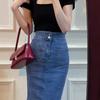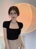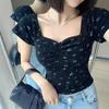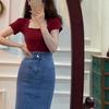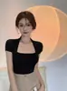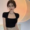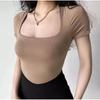 Playera de Manga Corta con Cuello Cuadrado Retro Estilo Hong Kong de Color Puro para Mujer Verano 2025 Nuevo Look Adelgazante Top Versátil de Nicho Ins