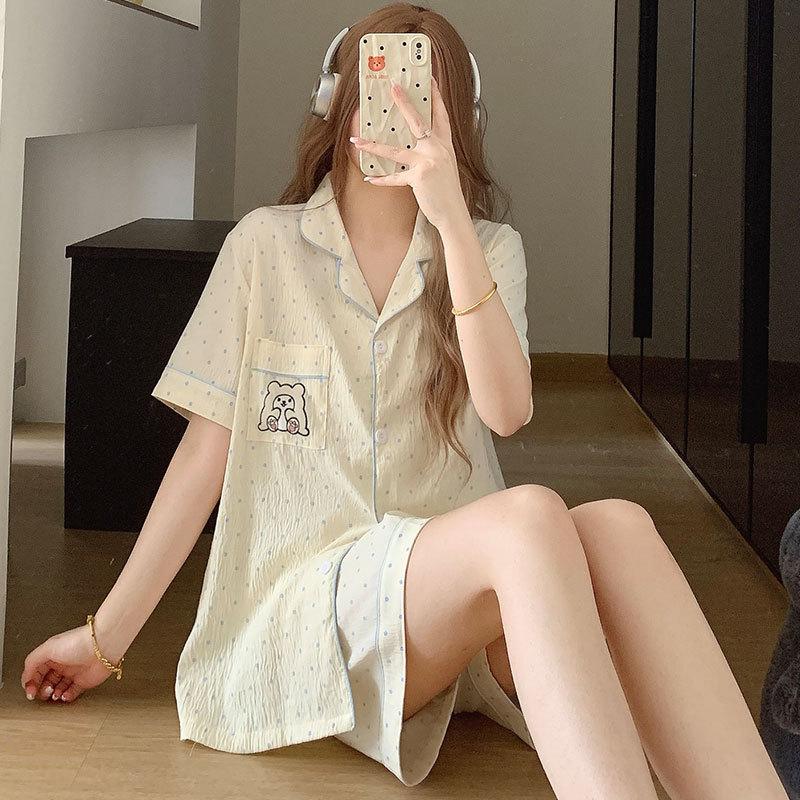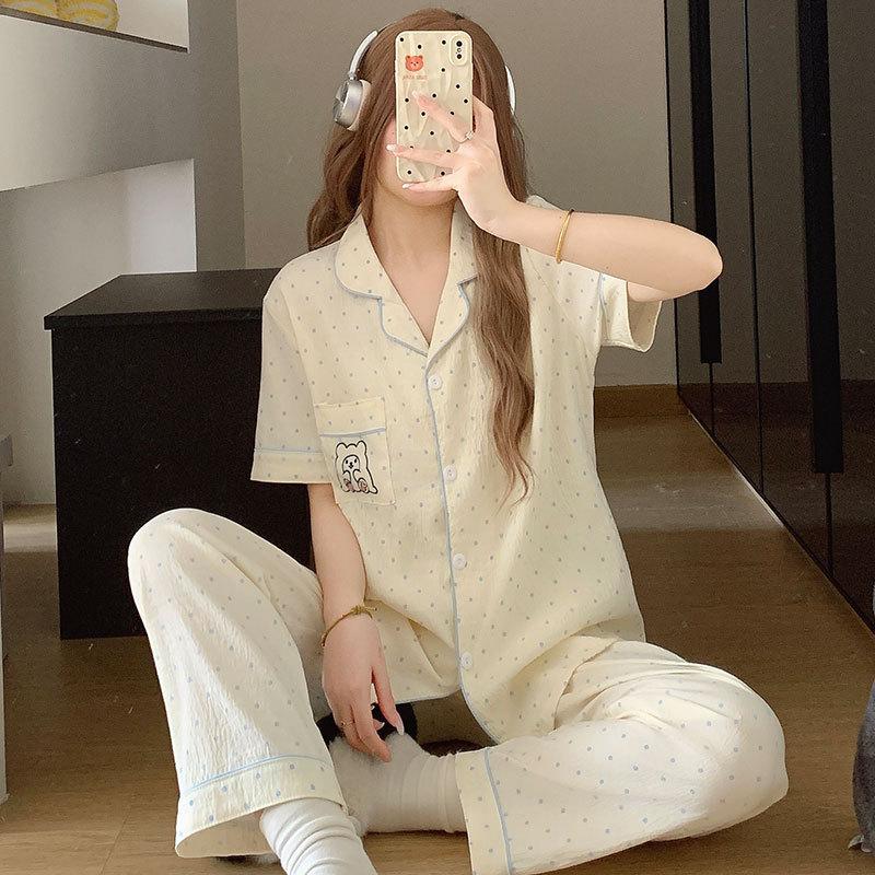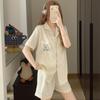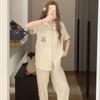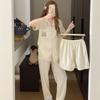 Pijama de tres piezas de algodón de nube para mujer, primavera y verano, nuevo, lindo dibujo animado, estilo coreano, pantalones de manga corta, ropa para el hogar