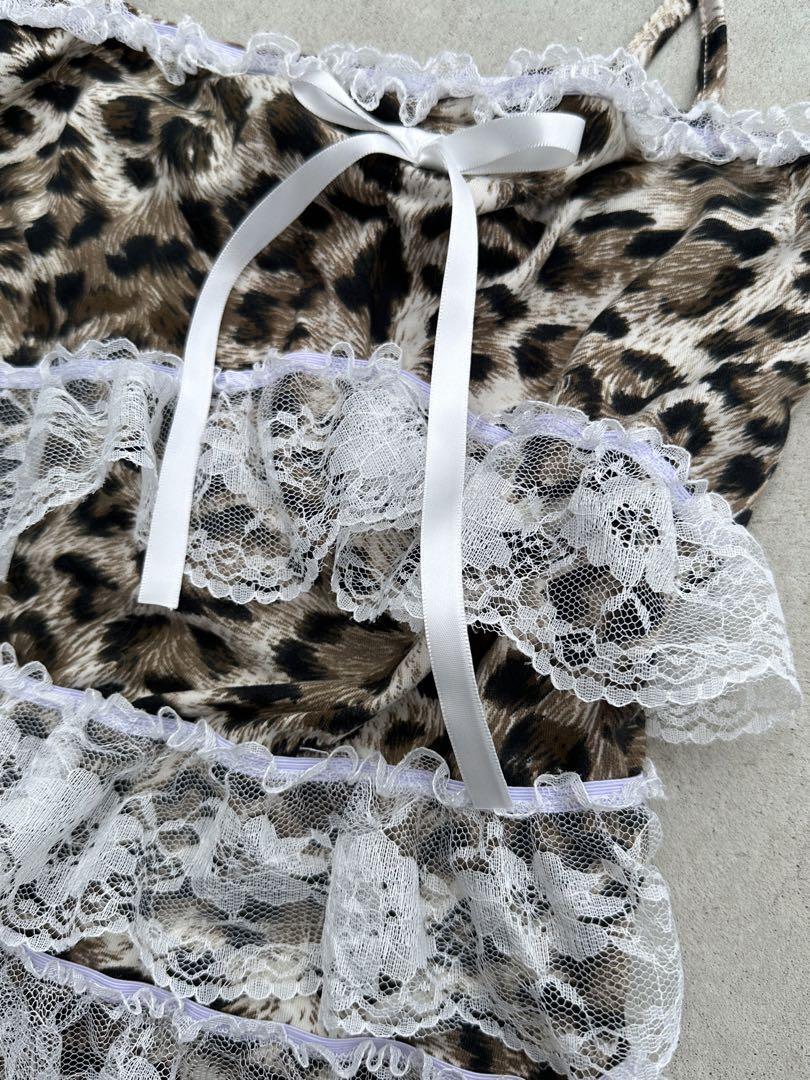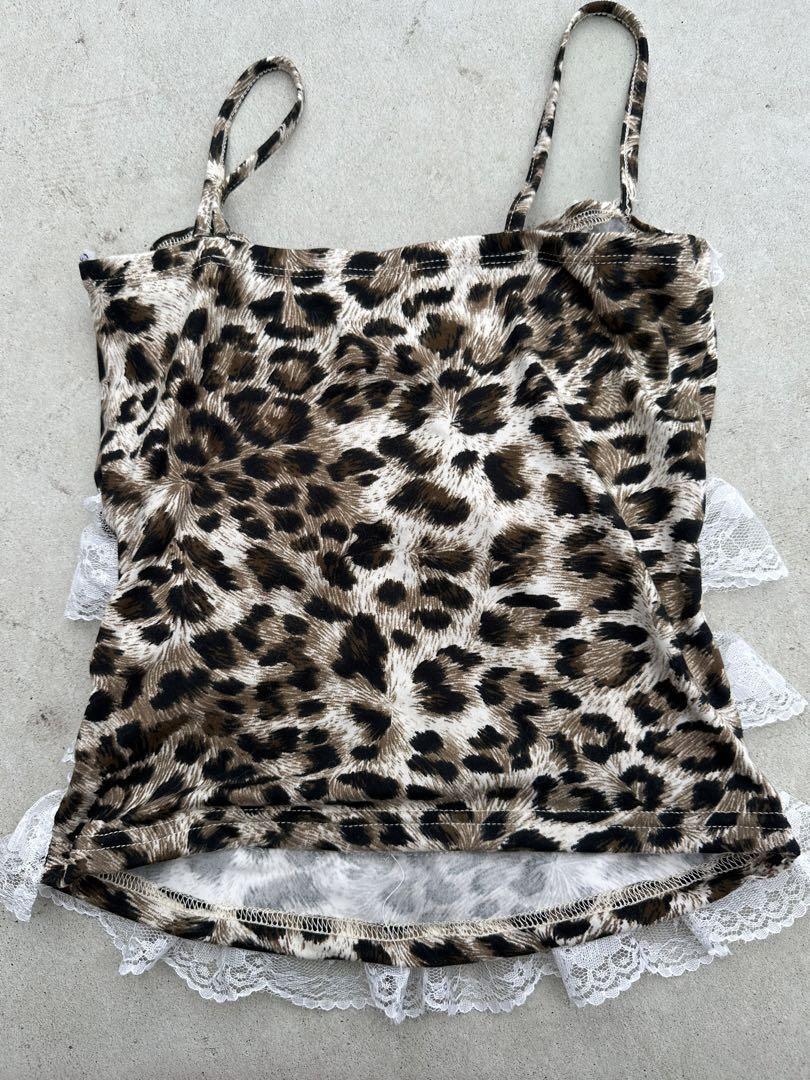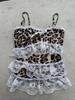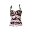 Moda de Estación Europea Sexy Spice Girl Leopardo Lazo Encaje Tirantes Ajustados Adelgazantes Tirantes Top Chaleco Combinable