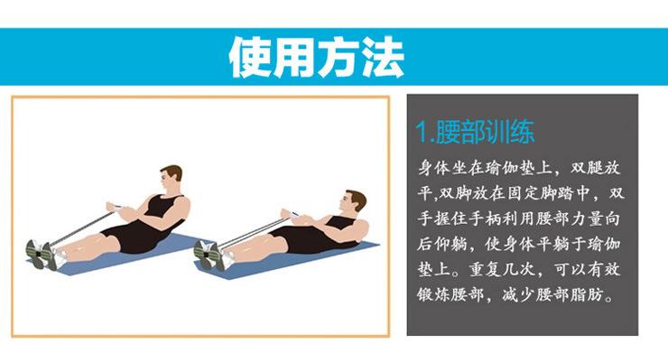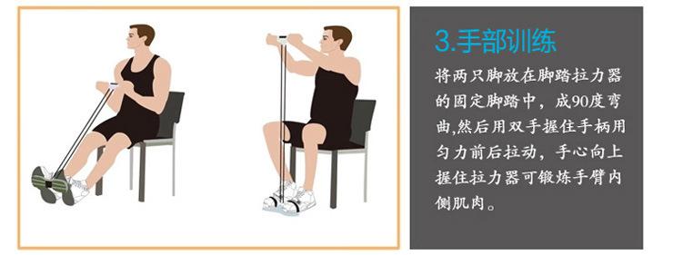 Siéntate en el suelo, estira las piernas, apoya los pies en los pedales fijos del fisicoculturista, sujeta las asas con ambas manos y tira de ellas hacia adelante y hacia atrás uniformemente para fortalecer piernas y brazos. Ponte de pie, apoya los pies en los pedales fijos, sujeta las asas con ambas manos y tira de ellas hacia arriba y hacia abajo con fuerza. Repite esto tantas veces como puedas para fortalecer tu cuerpo.