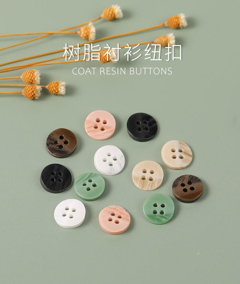 Botón de camisa de cuatro ojales con patrón de resina de alta calidad, botón de camisa de gasa con protección solar, botón de puño redondo versátil