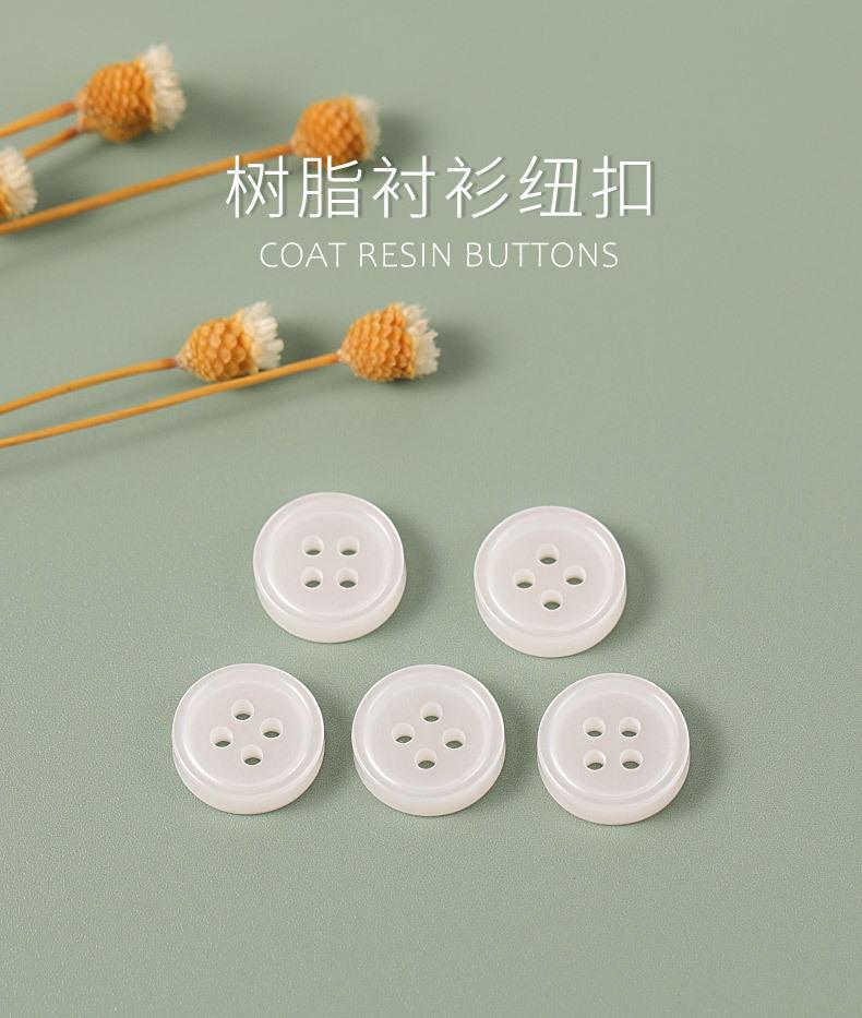 Botón de camisa de cuatro ojales de resina blanca de alta calidad, protector solar, de gasa, versátil, con puños redondos.