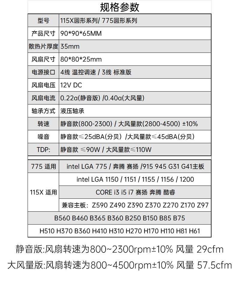 Copper core 775 ultra-quiet 2300 rpm temperature control speed adjustment, Copper core 775 large air volume 45...
