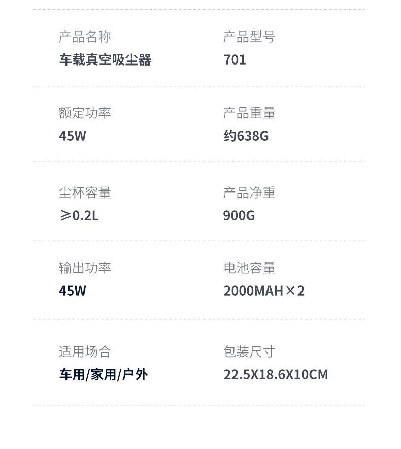 Modelo:701 Nombre del producto:Aspiradora para coche