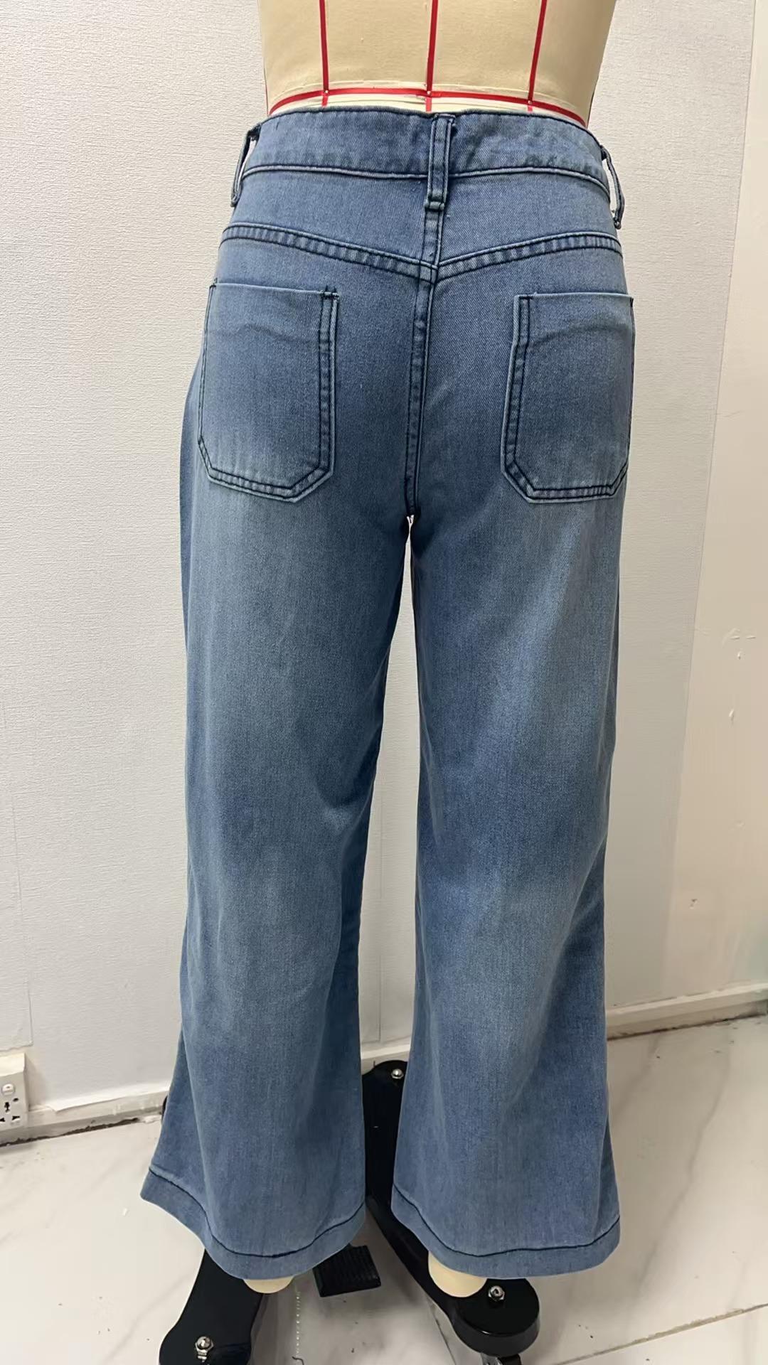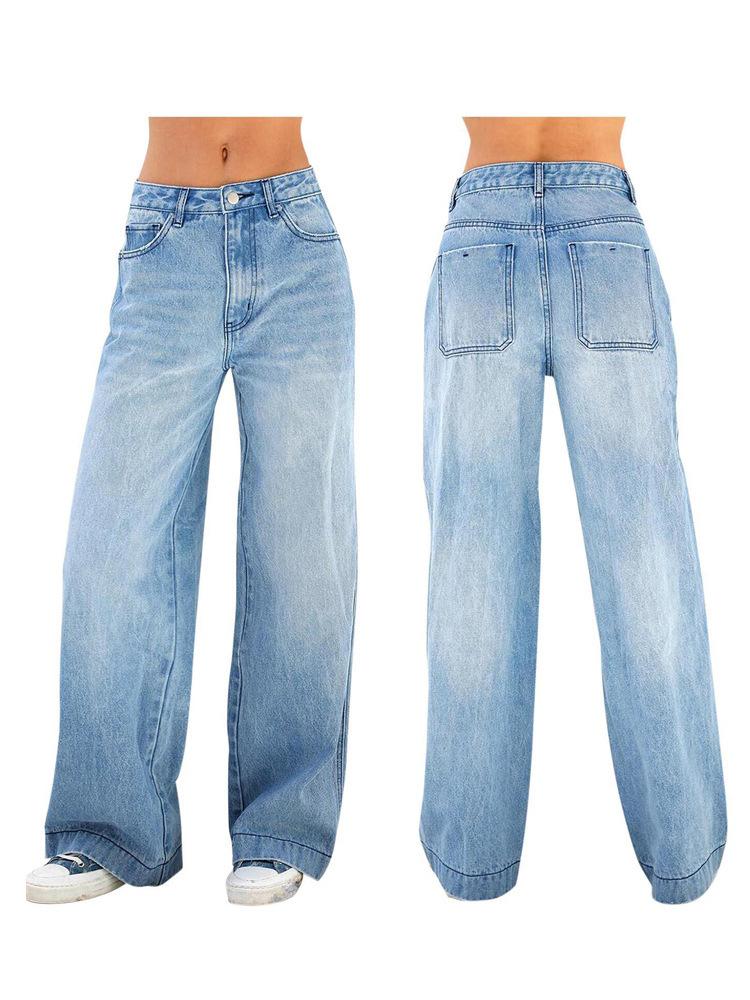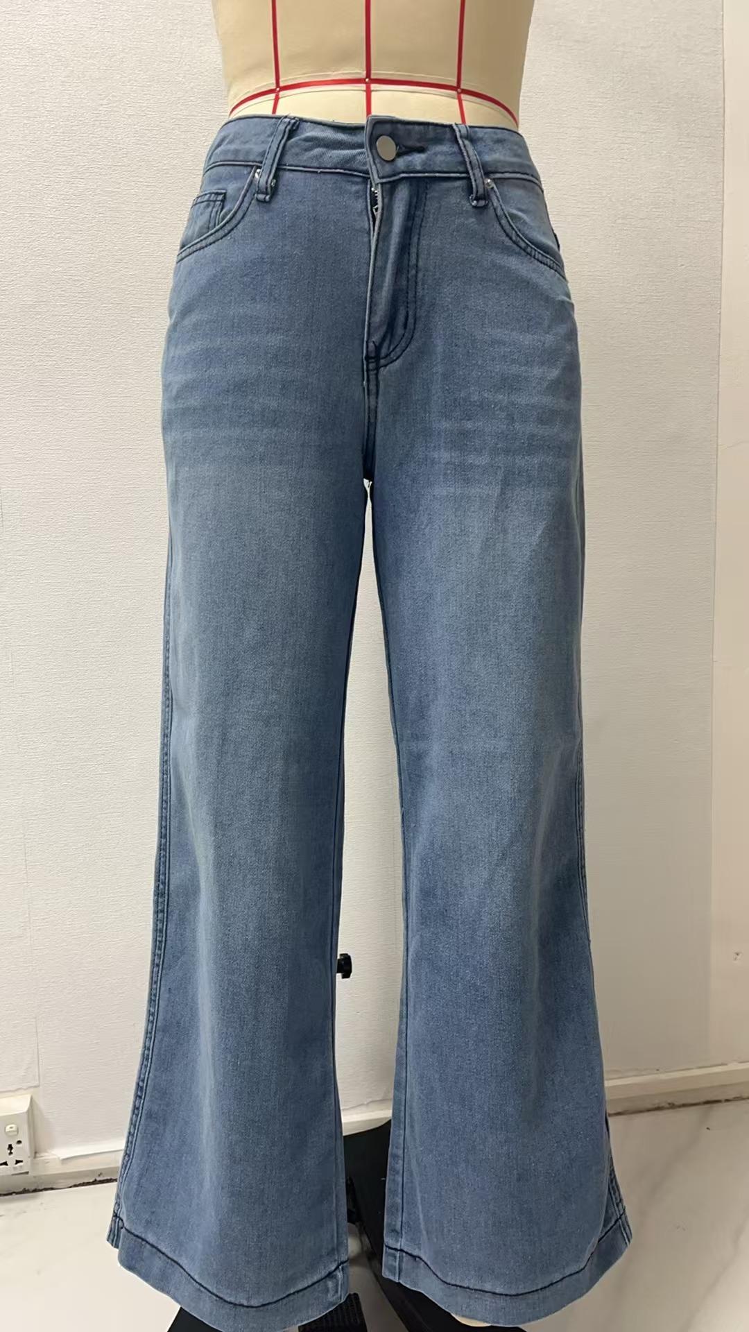 Europa y Estados Unidos comercio exterior transfronterizo jeans para mujer fábrica directa sueltos pierna ancha jeans de mujer
