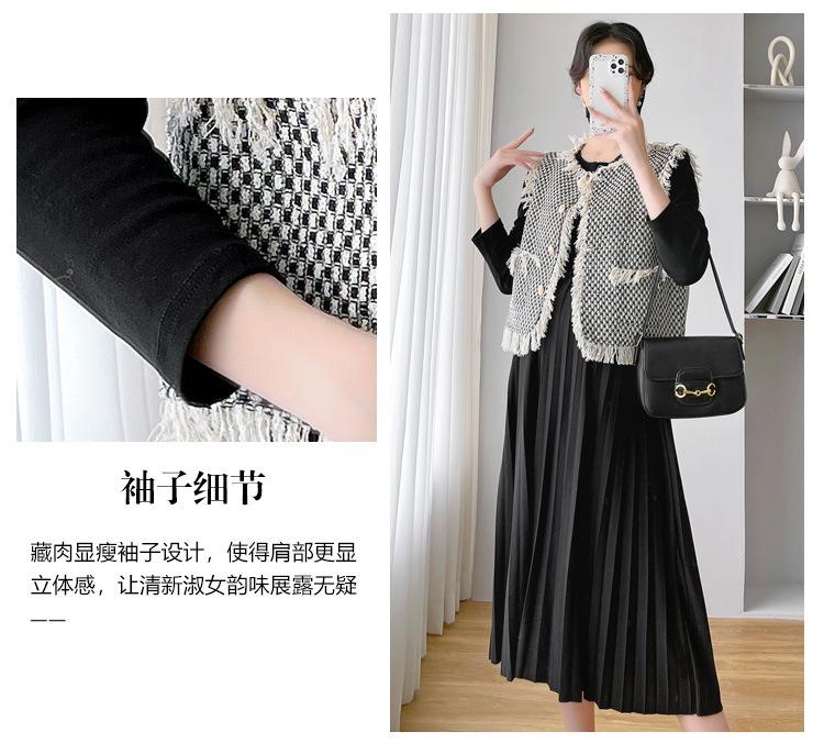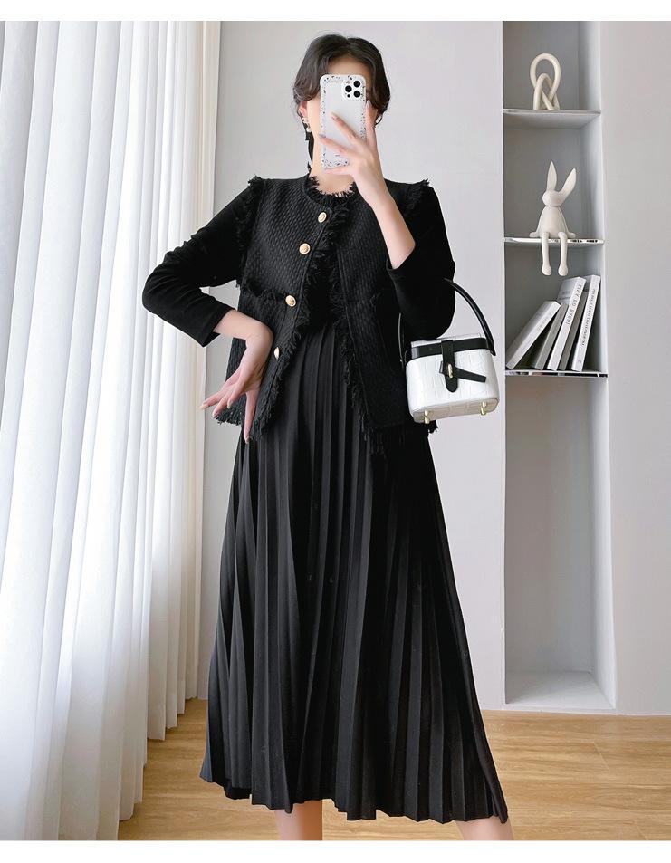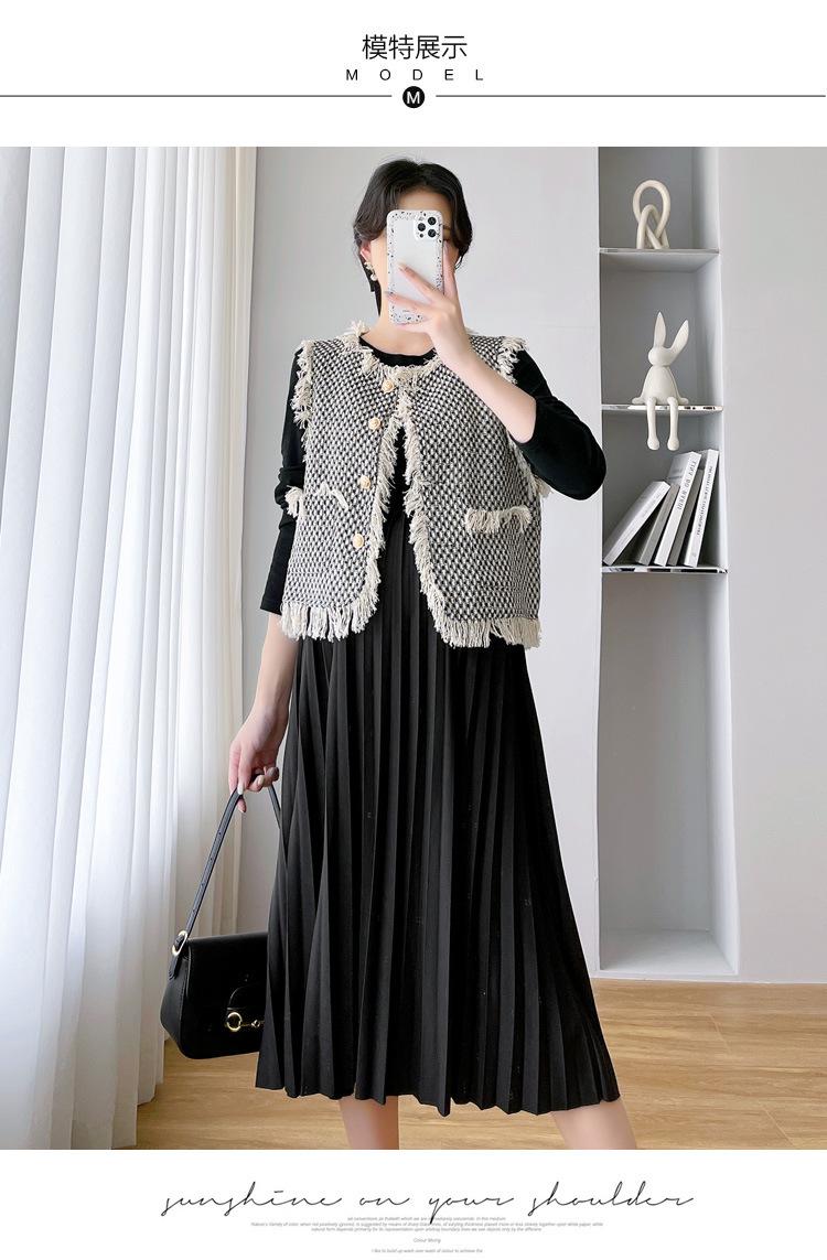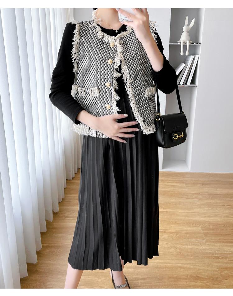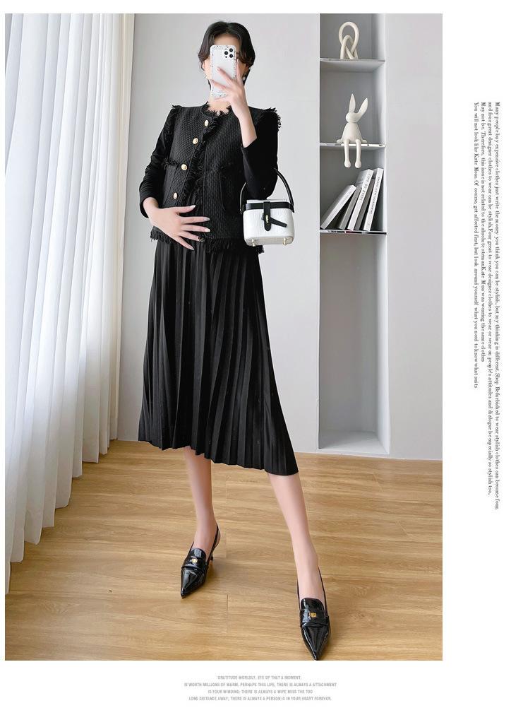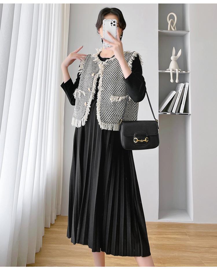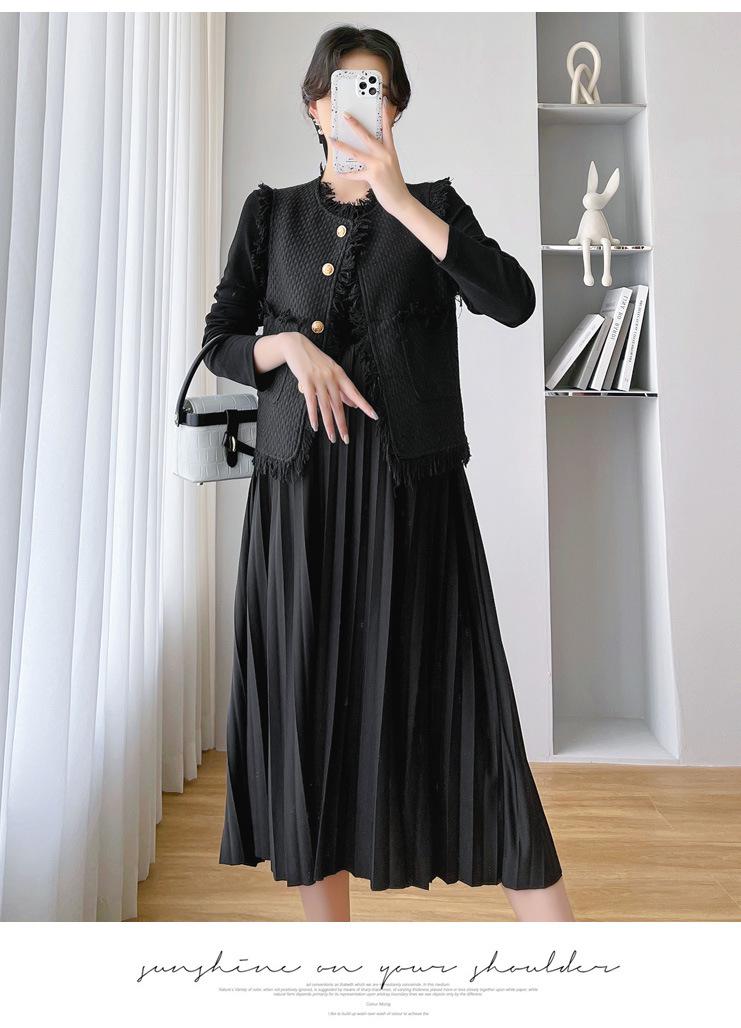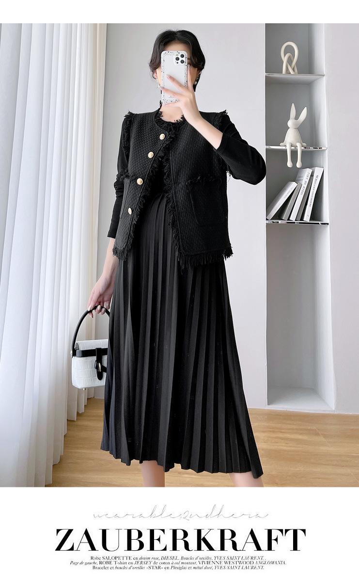 Vestido para Mujer Embarazada Primavera y Otoño Nuevo Estilo Estilo Fragante Traje para Mujer Embarazada Talla Grande Falda Base Plisada Vestido de Dos Piezas