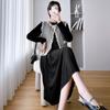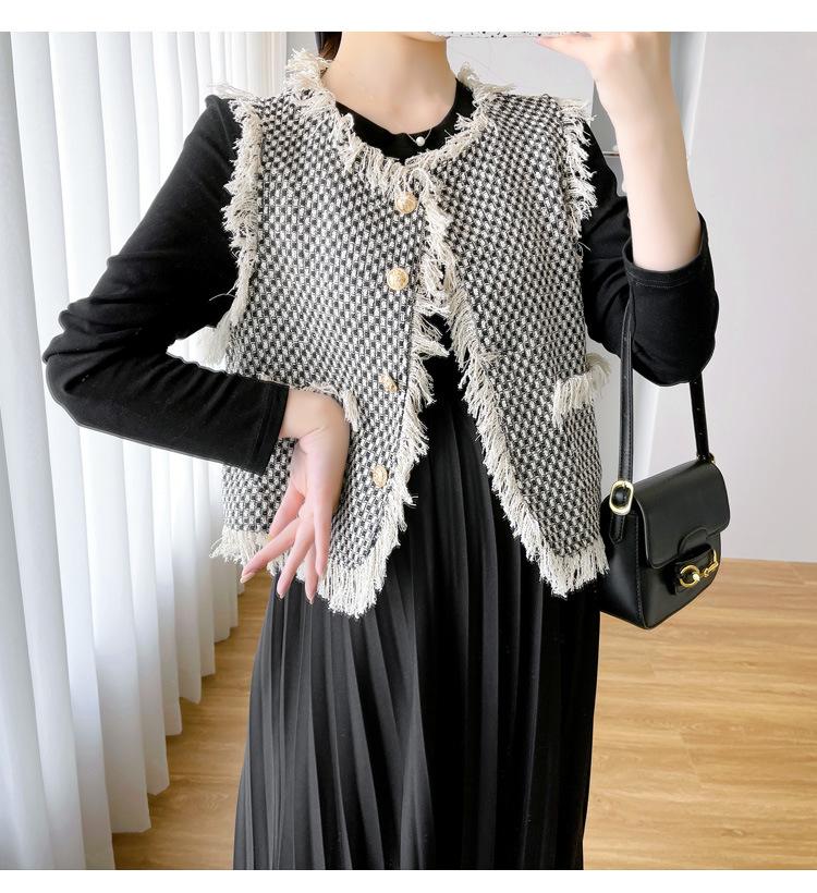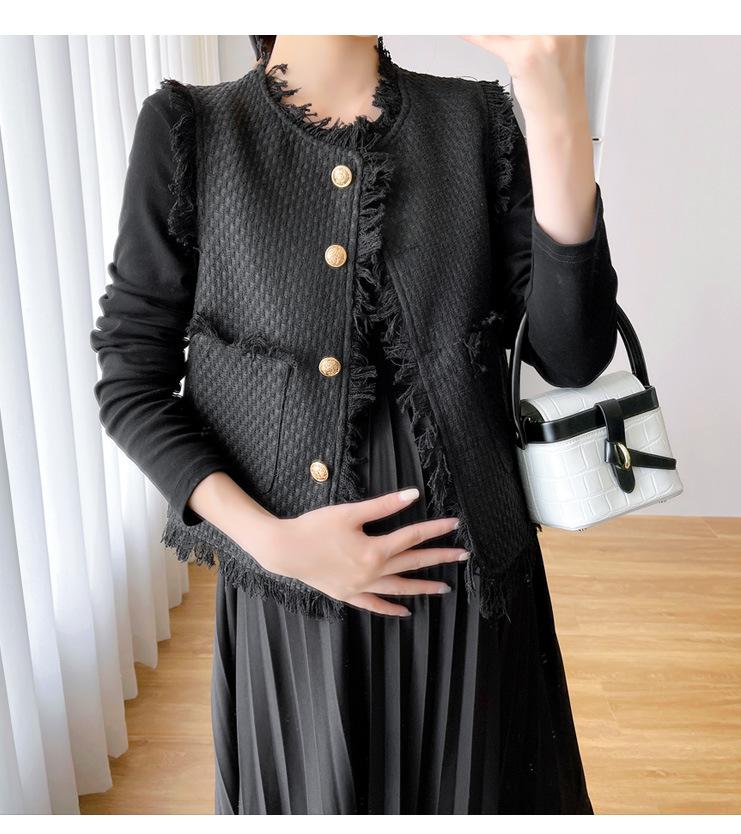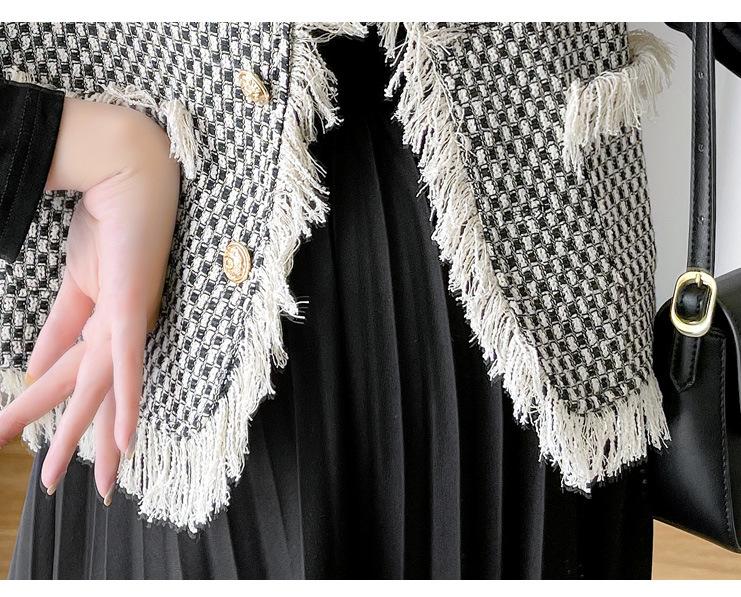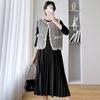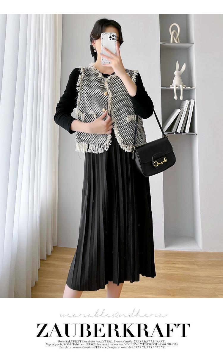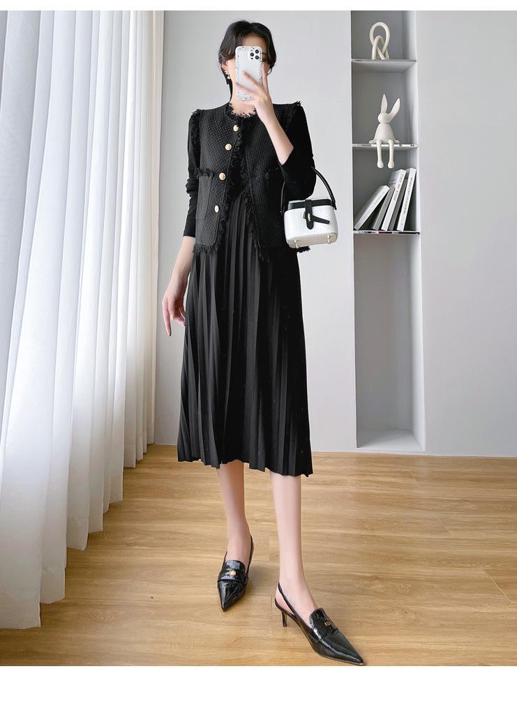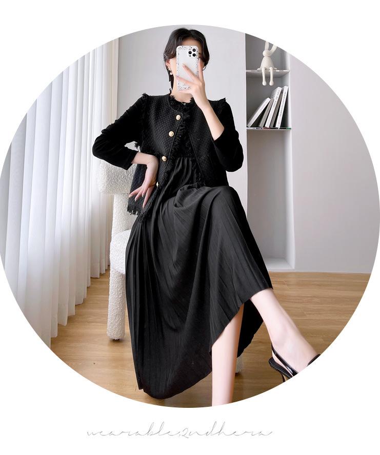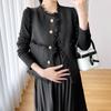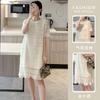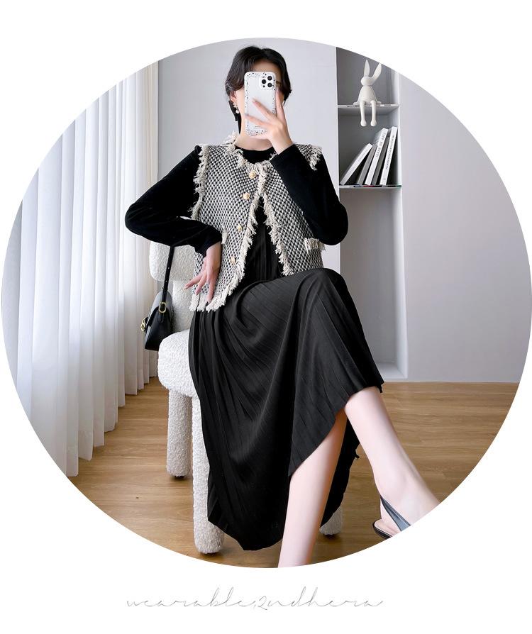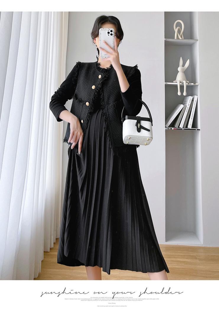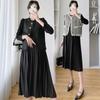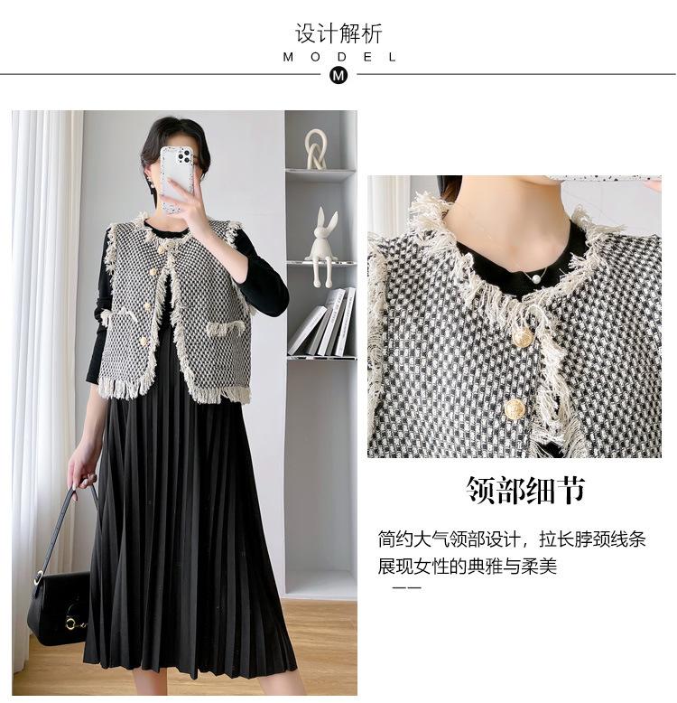 Vestido para Mujer Embarazada Primavera y Otoño Nuevo Estilo Estilo Fragante Traje para Mujer Embarazada Talla Grande Falda Base Plisada Vestido de Dos Piezas