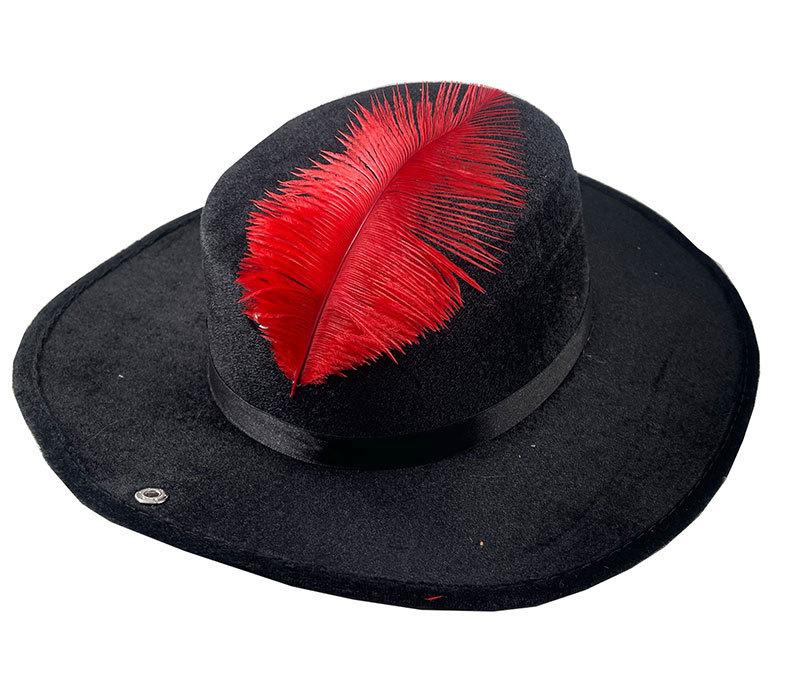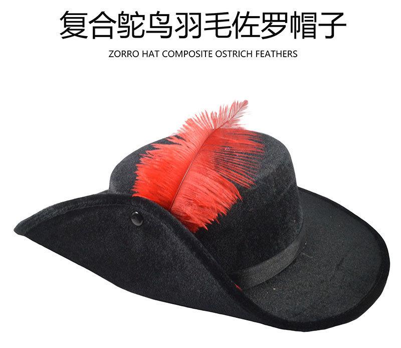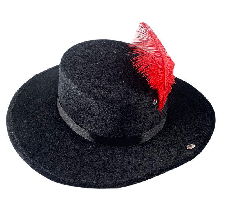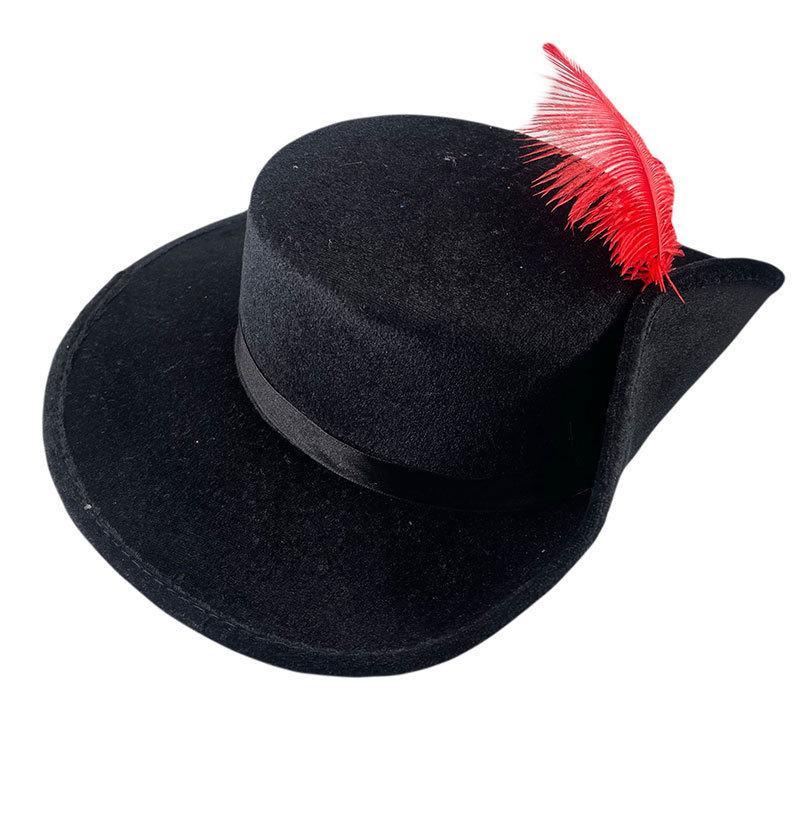 Sombrero Zorro de Flocado Sombrero de Escenario de Festival Fiesta Festival Tiara Banda para el Cabello Sombrero Pirata Negro Sombrero de Plumas