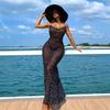 Vestido de verano para vacaciones en la playa, con tirantes, cintura ajustada, cuello sin espalda, estampado con cordones y borde cruzado, novedad de 2025