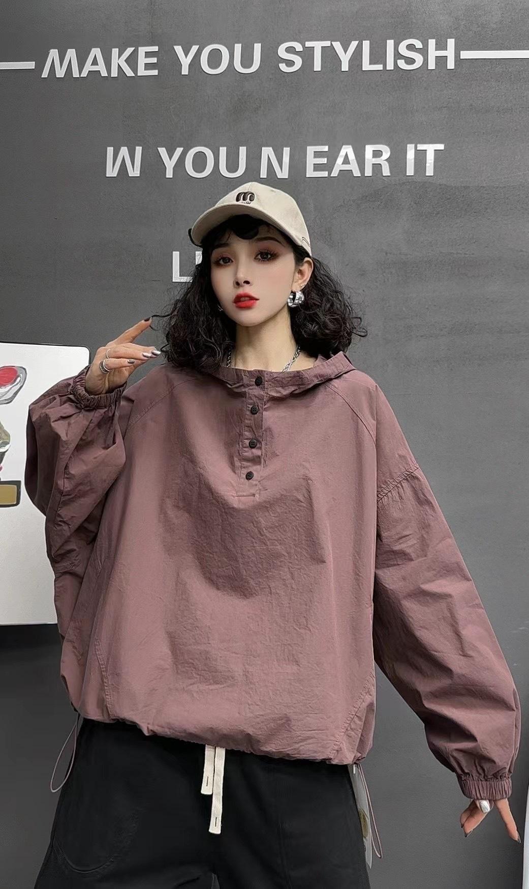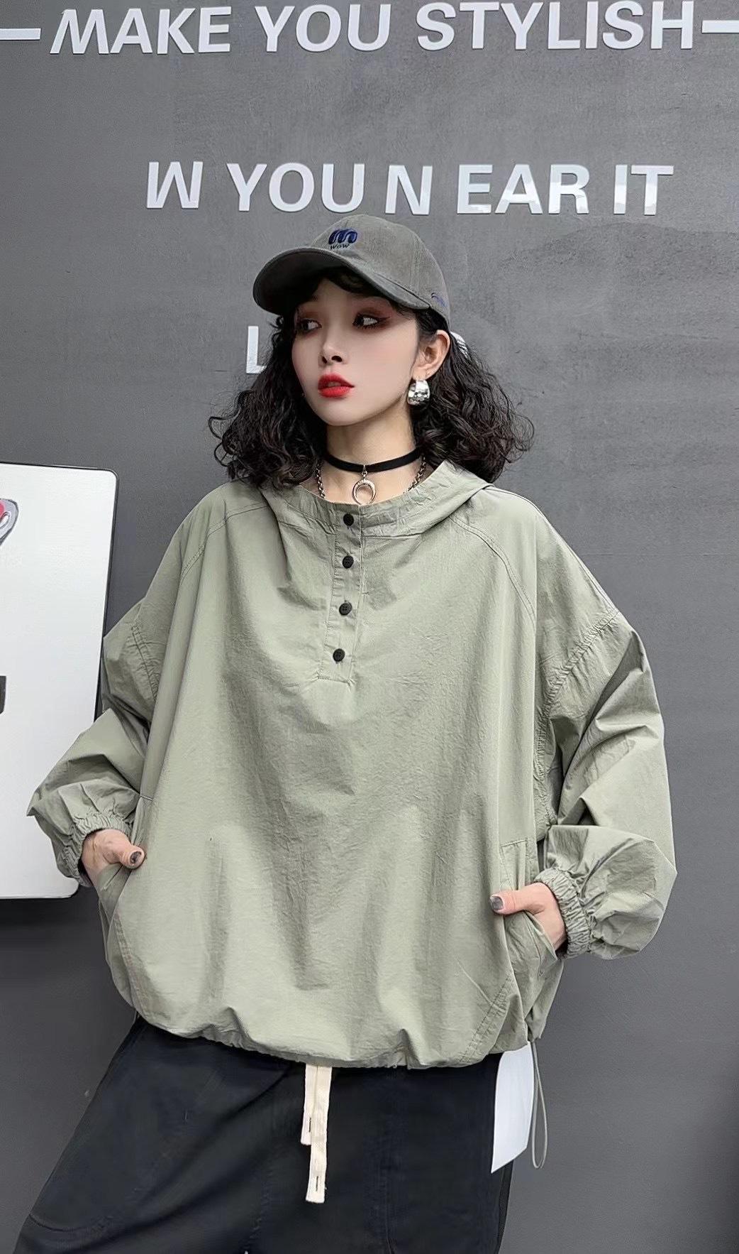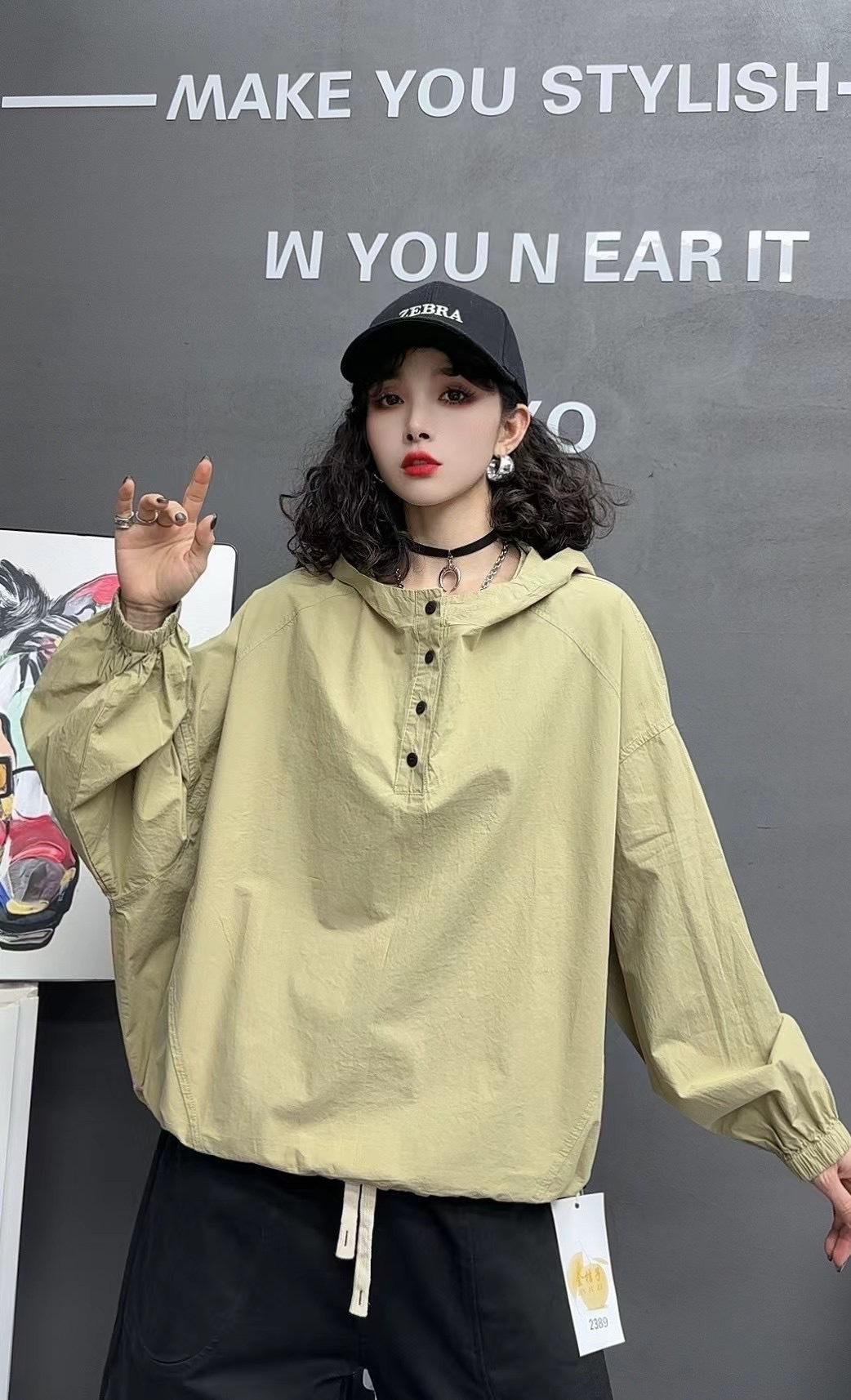 Chaqueta holgada de manga murciélago con capucha y color liso estilo Hong Kong, nueva moda de primavera, jersey informal que combina con todo, sudadera para mujer.
