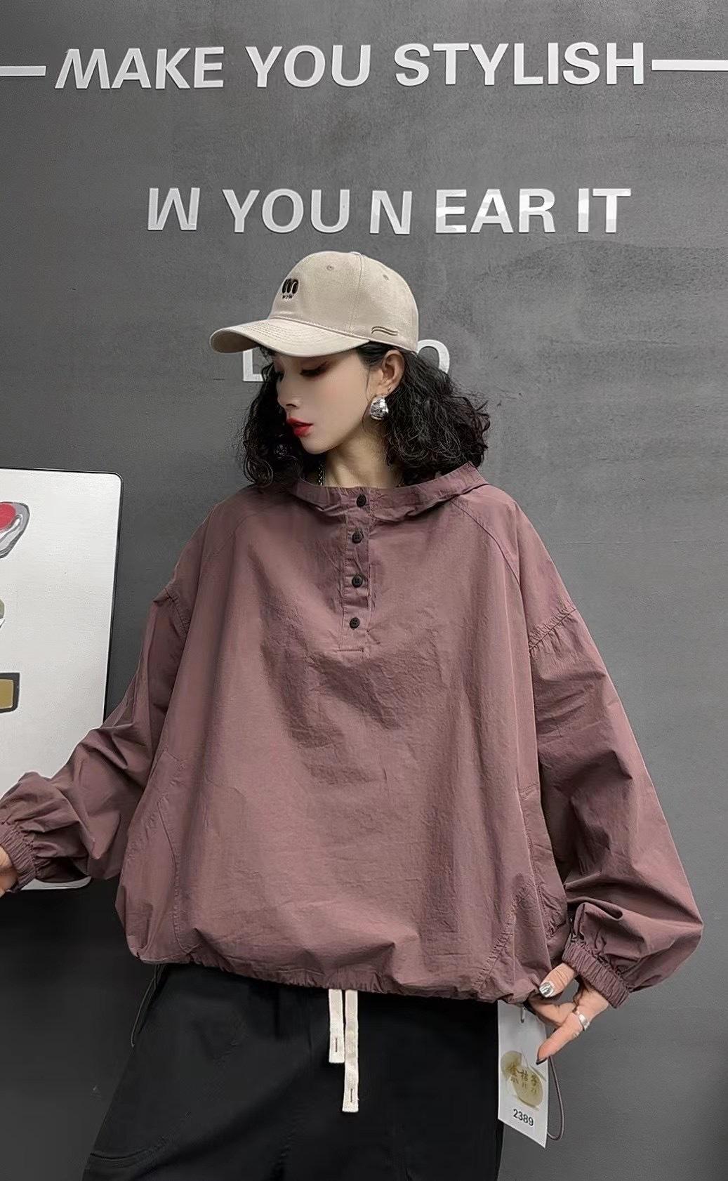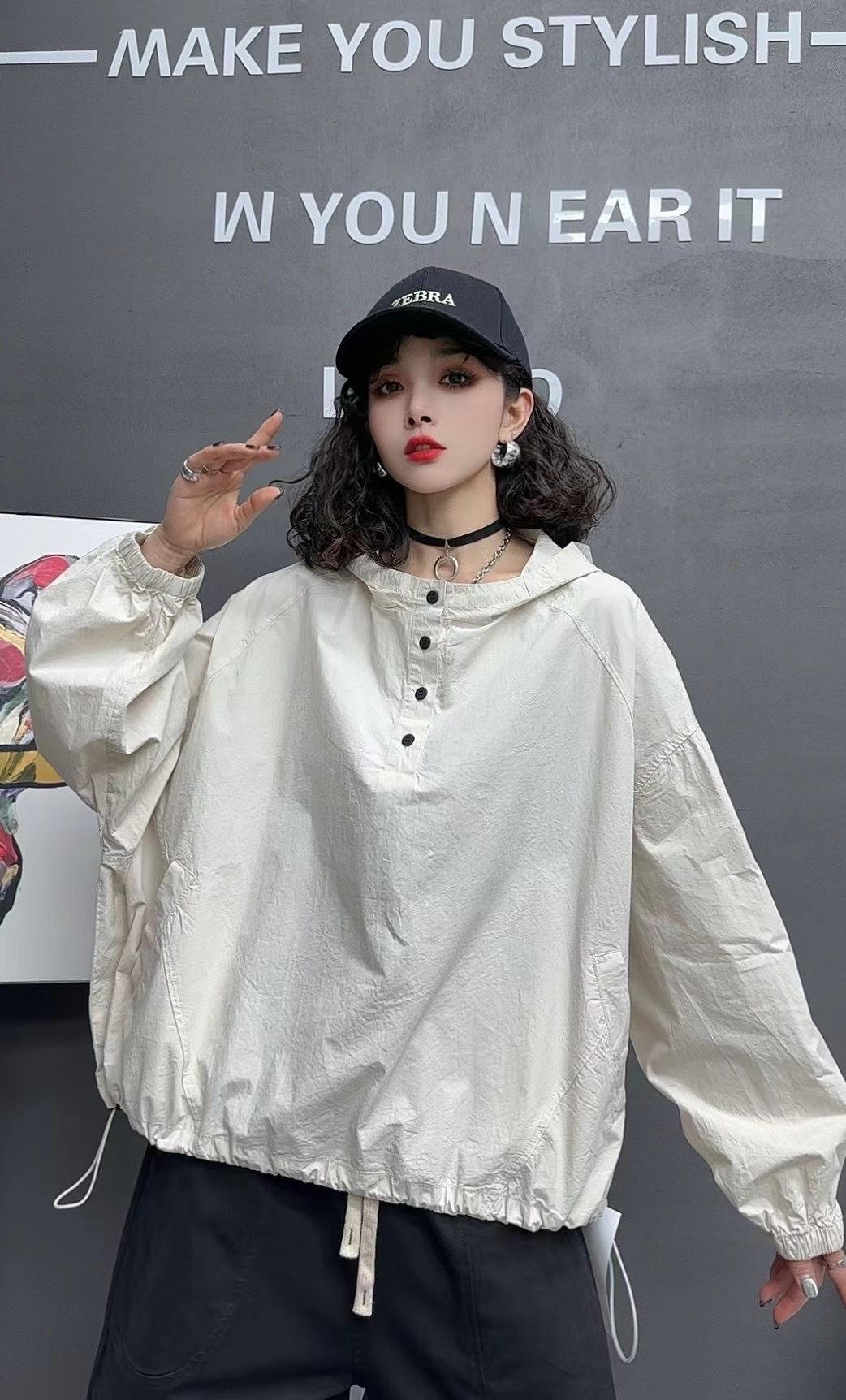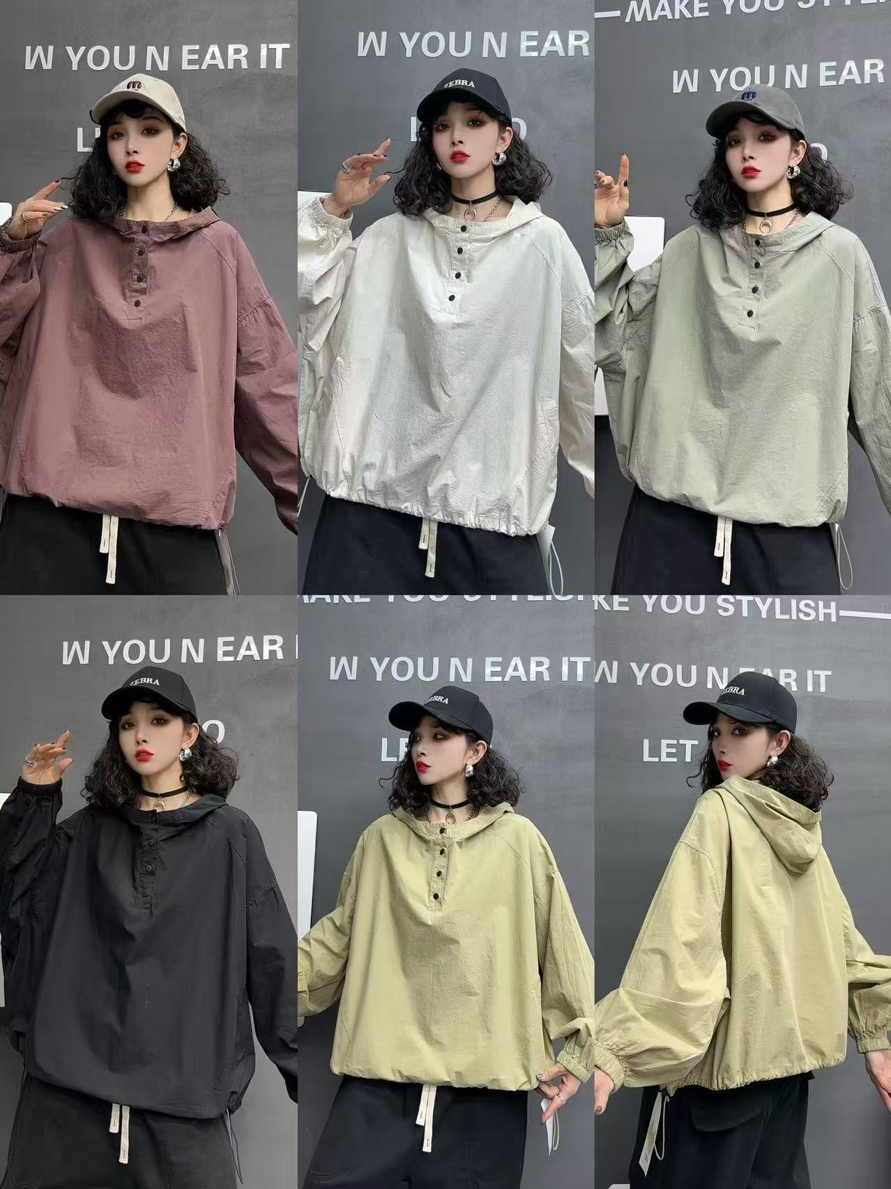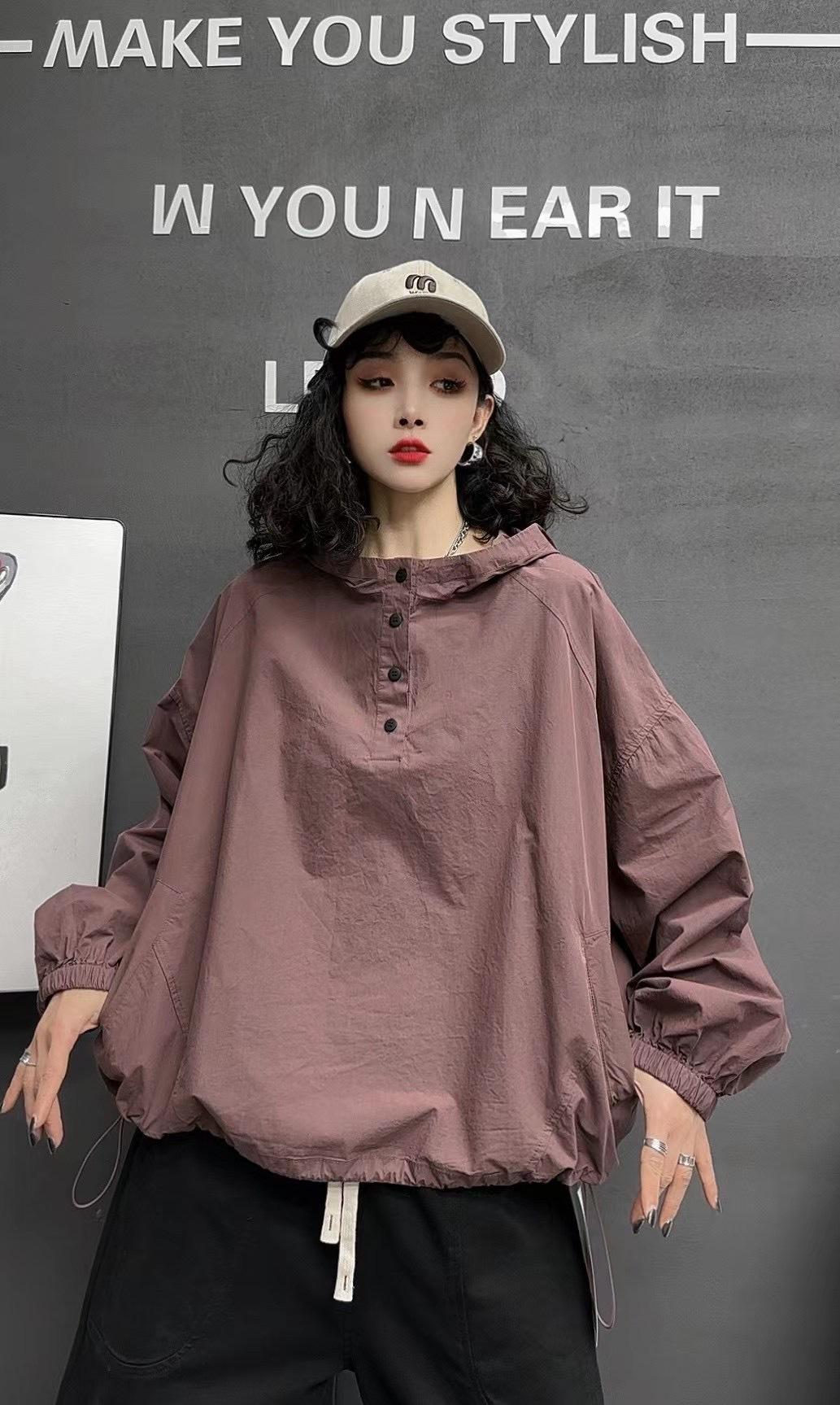 Chaqueta holgada de manga murciélago con capucha y color liso estilo Hong Kong, nueva moda de primavera, jersey informal que combina con todo, sudadera para mujer.