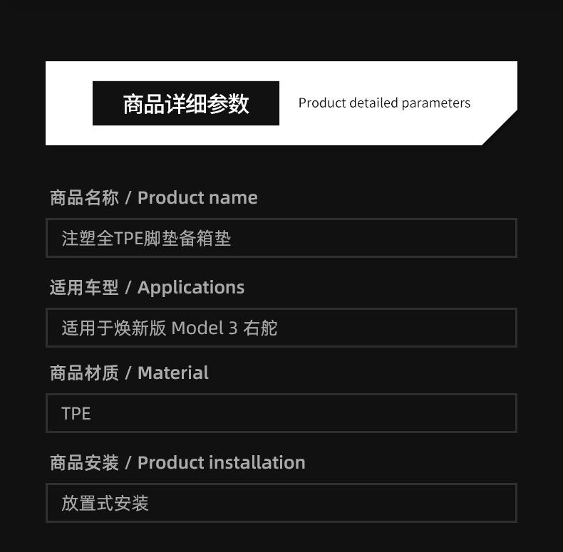 【w230006324】24 new models of model 3 [right-hand drive/blister] rear trunk mat