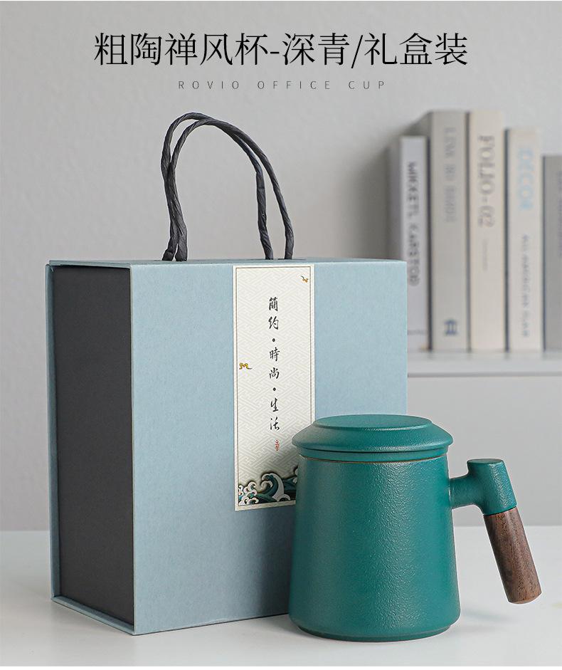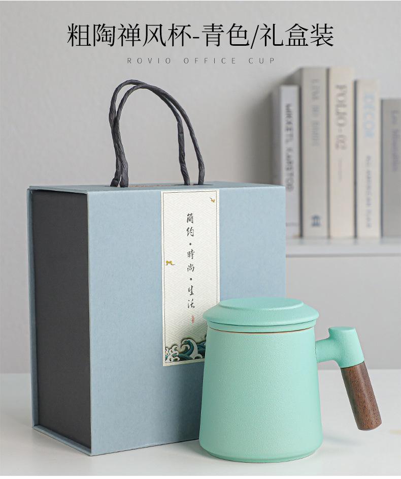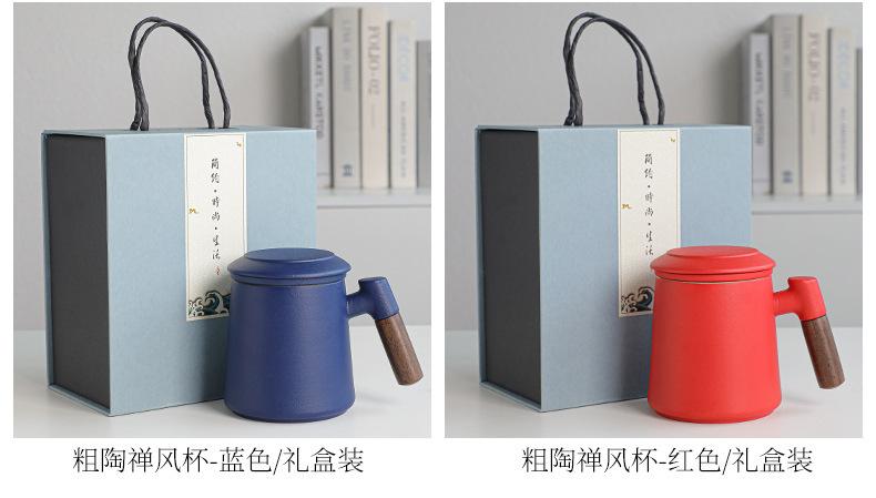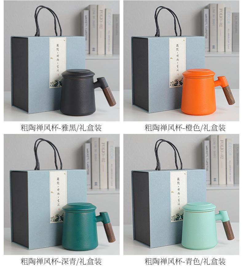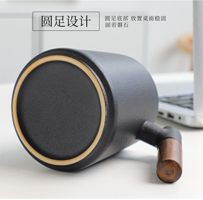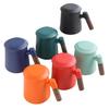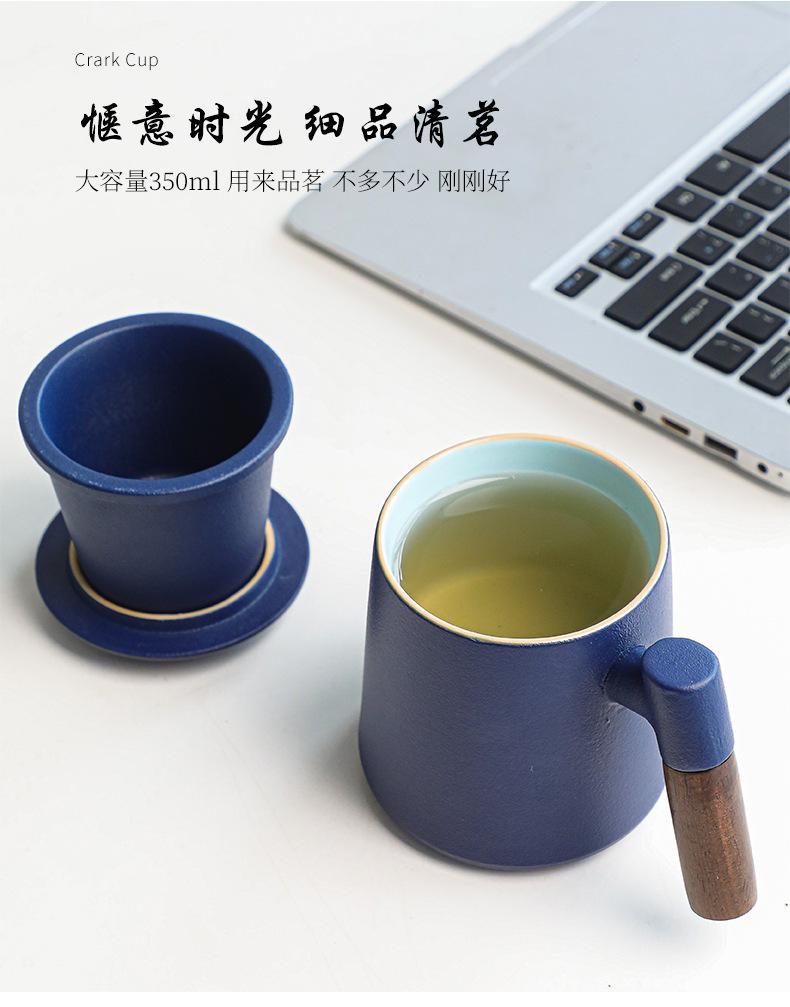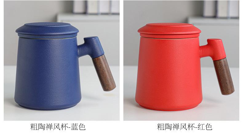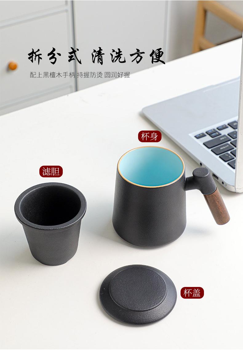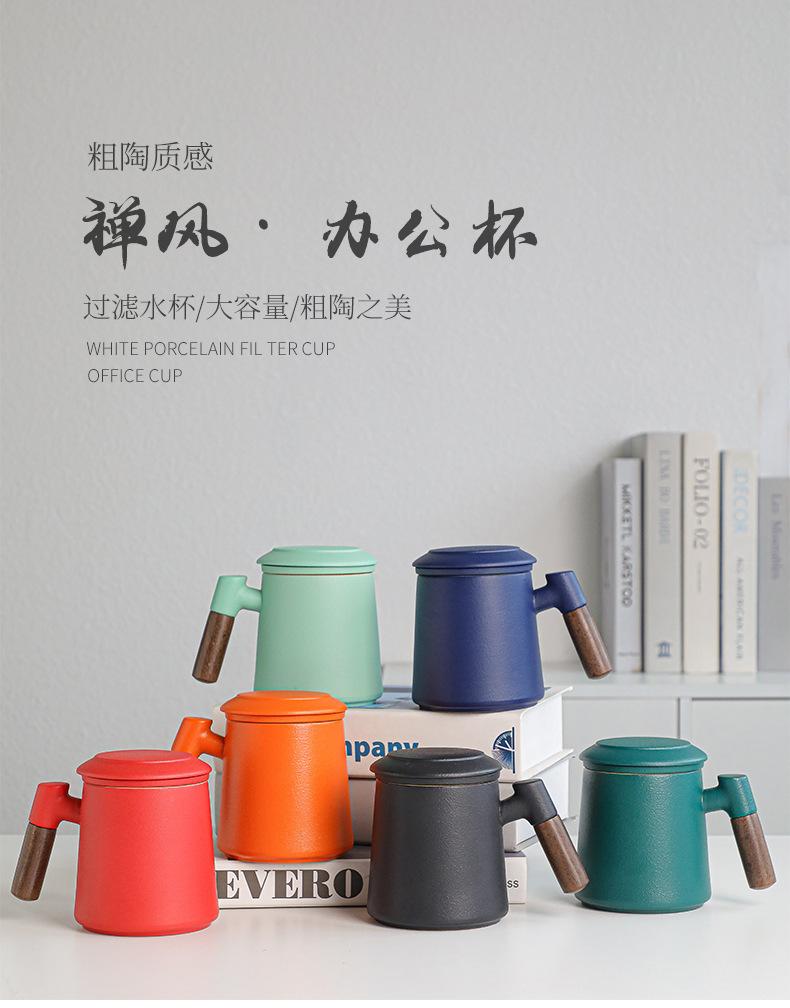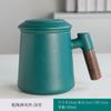 Taza de cerámica al por mayor con tapa, taza separadora de agua para té, taza de té con filtro, taza de oficina con mango de madera, taza creativa de alta calidad