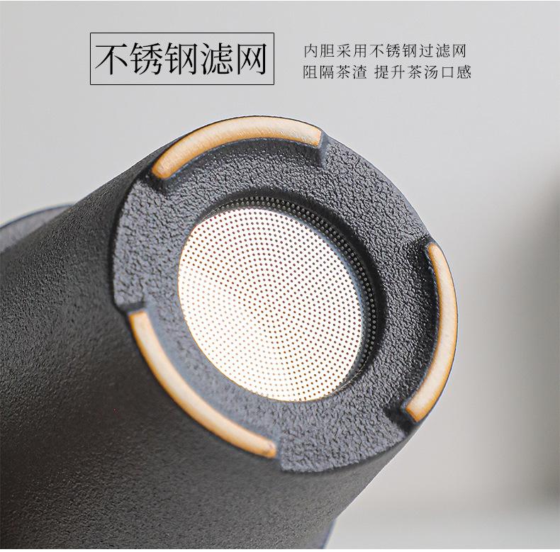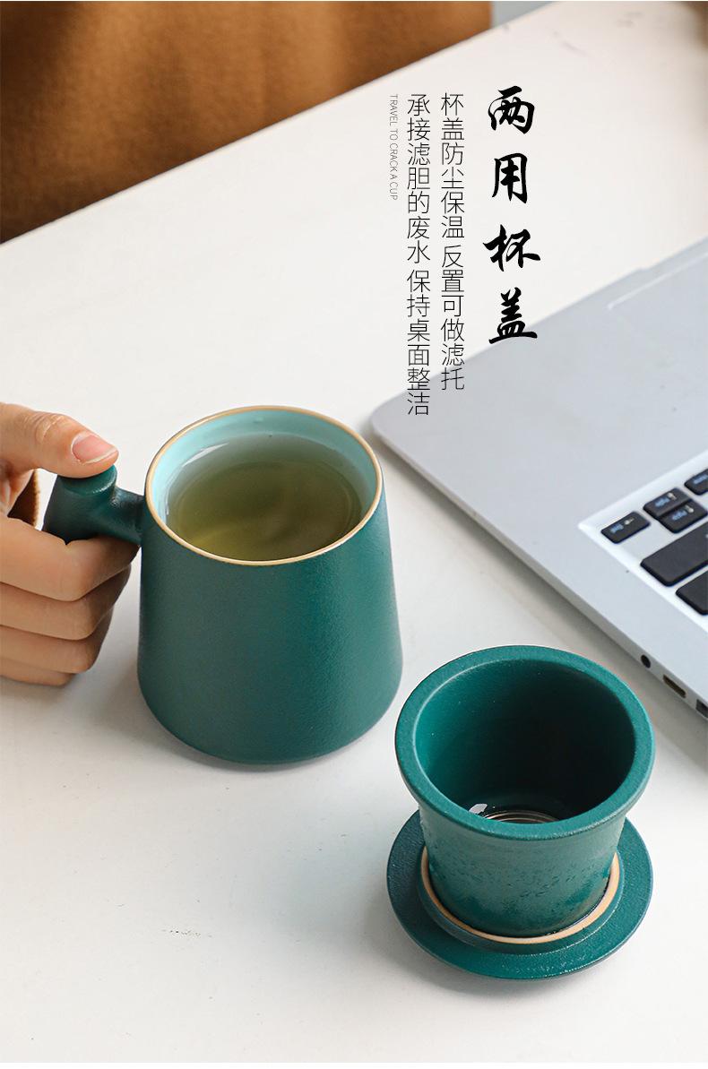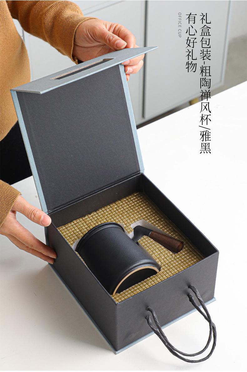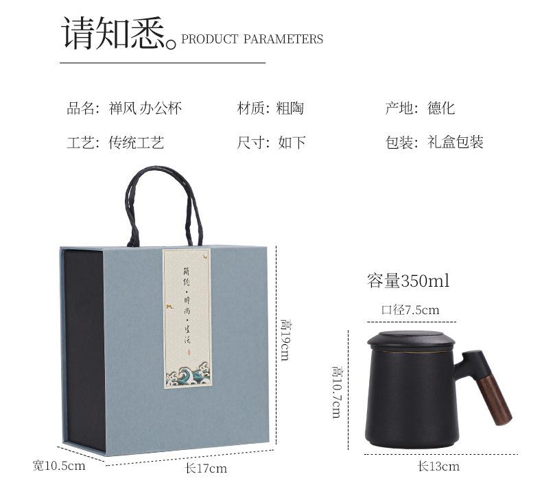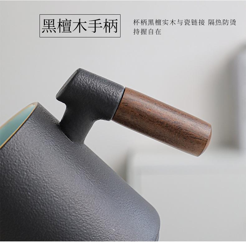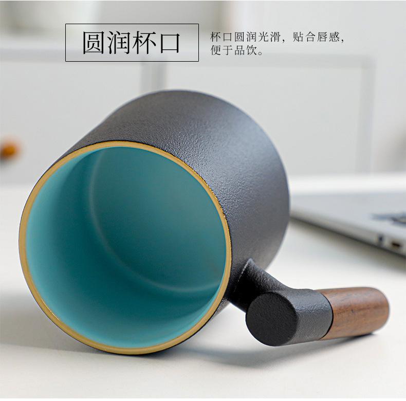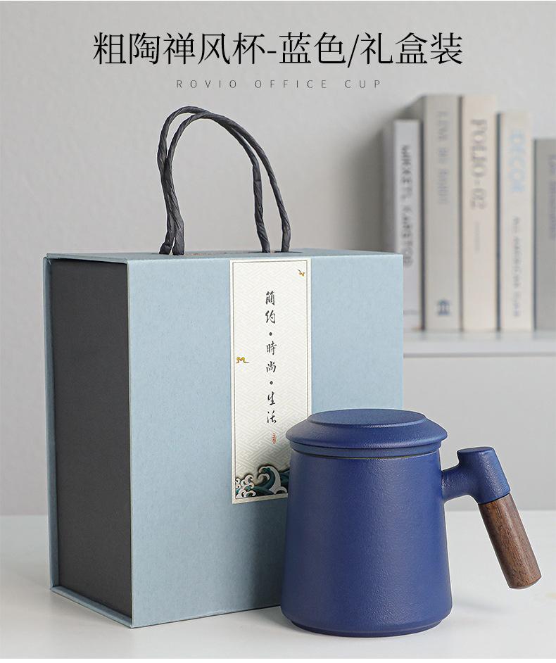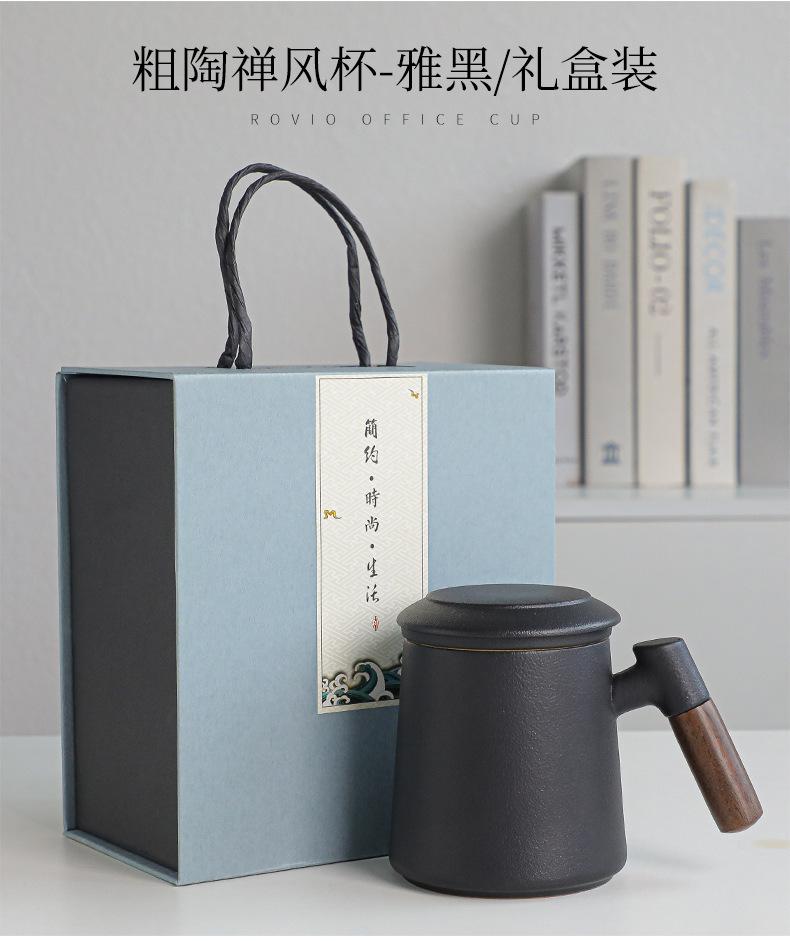 Taza de cerámica al por mayor con tapa, taza separadora de agua para té, taza de té con filtro, taza de oficina con mango de madera, taza creativa de alta calidad
