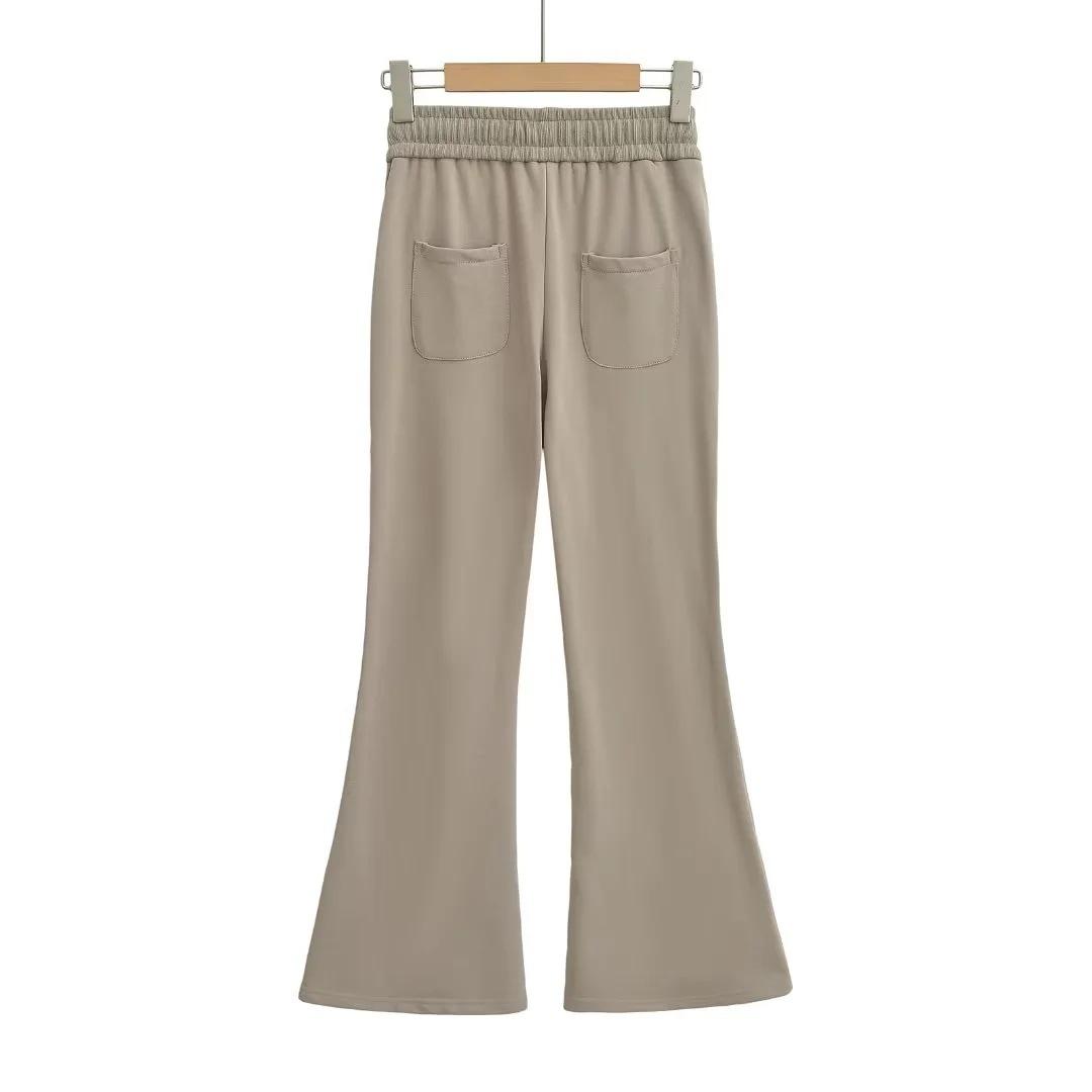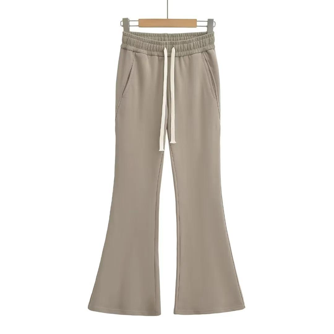 Pantalones deportivos americanos de microcampana para mujer, de cintura alta, ajustados, con diseño de herradura, informales, drapeados, para otoño de 2024