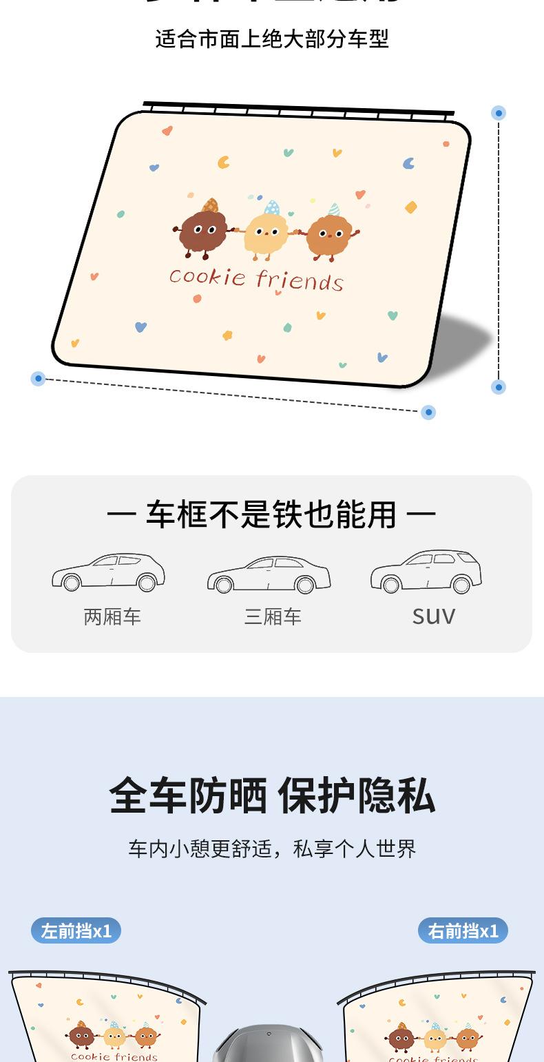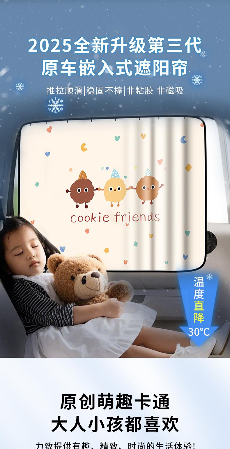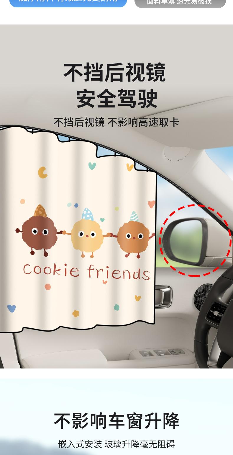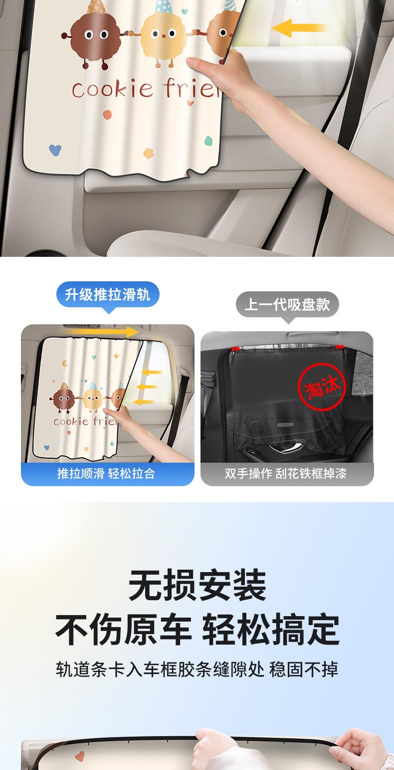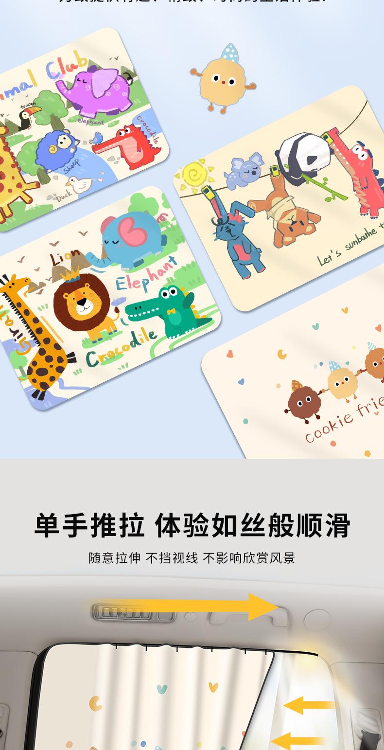 Cortina lateral parasol para coche con riel integrado para ventana de coche, protección solar, aislamiento térmico, parasol, cortina de coche de dibujos animados