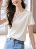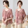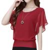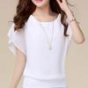 Camisa básica de gasa holgada de manga corta con cuello redondo y talla grande para mujer, novedad de verano de 2024