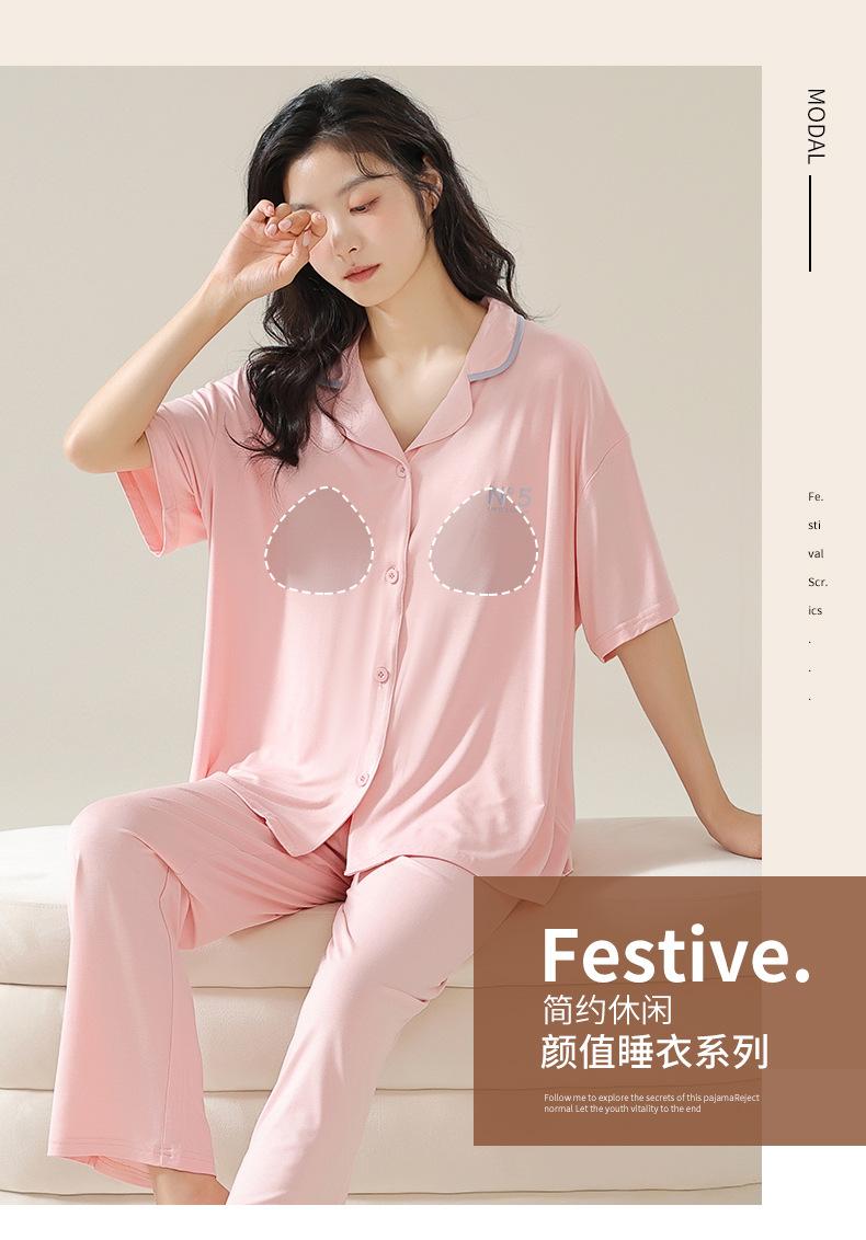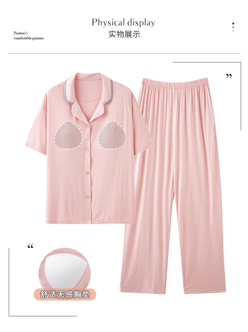 Pijama de modal para mujer, pantalones de verano de manga corta con almohadilla para el pecho, ropa de abrigo fina de verano para mujer, traje de ropa de casa