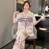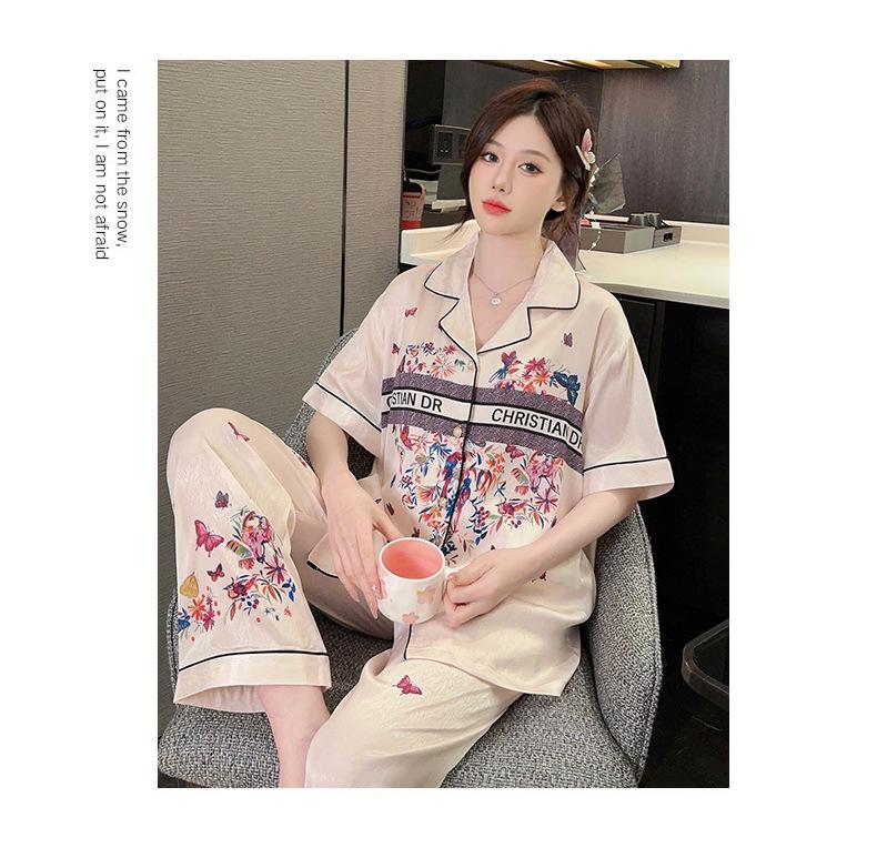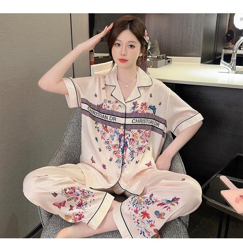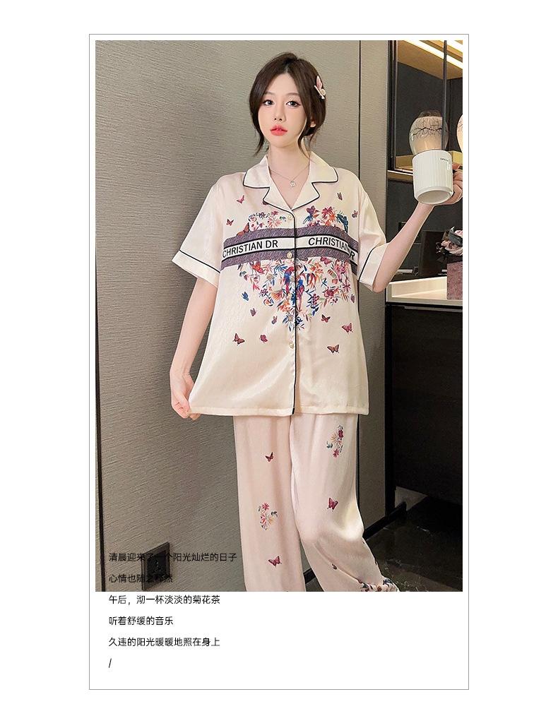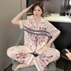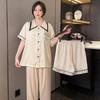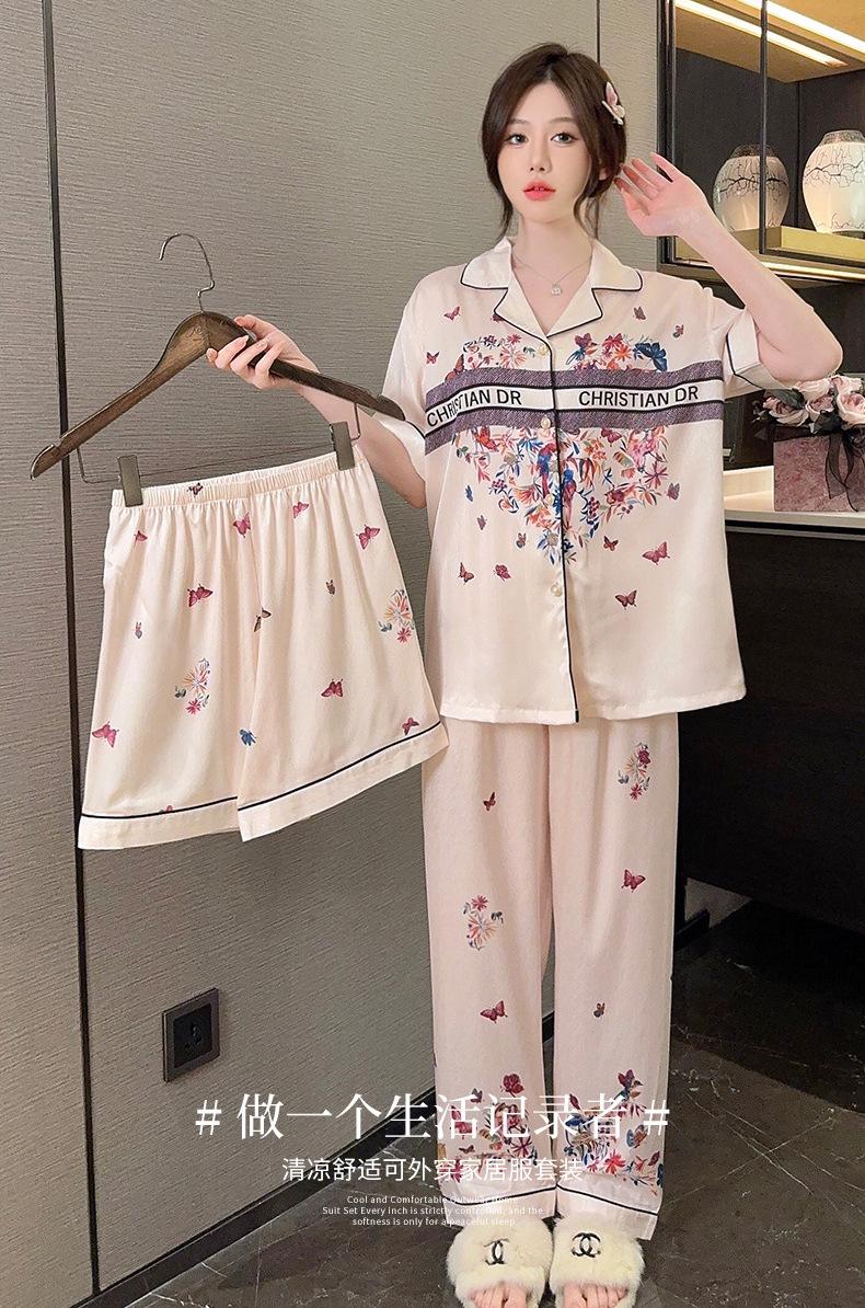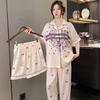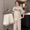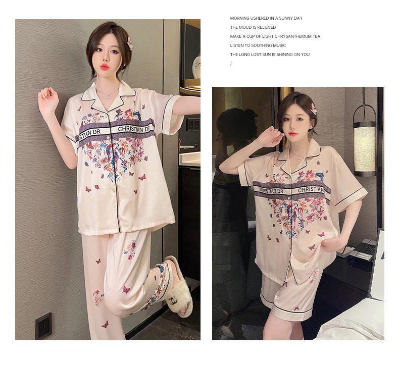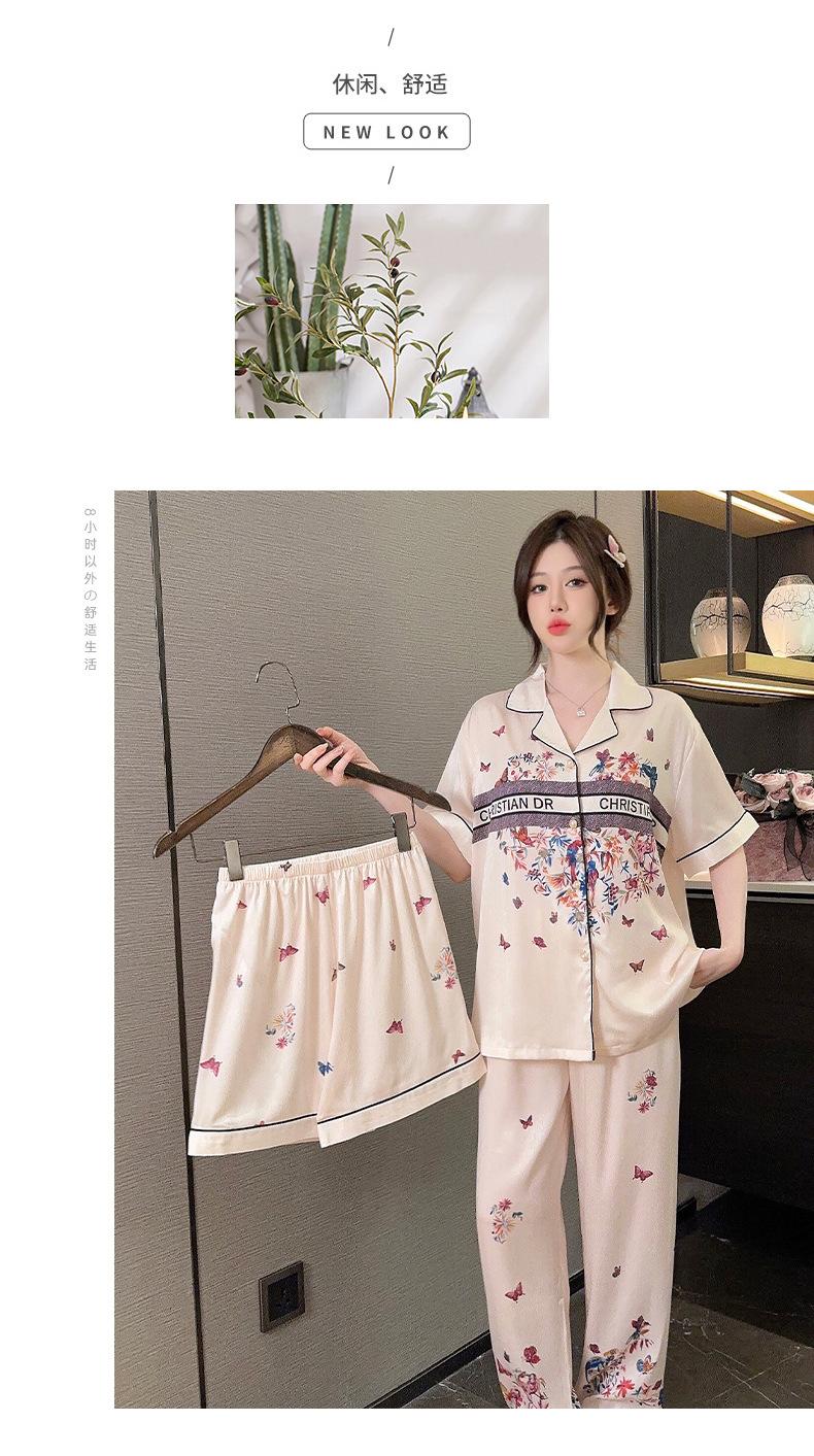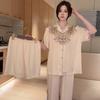 Pijama de seda de hielo de tres piezas para mujer, verano fino, 2024, nuevo traje de manga corta, cárdigan de verano, ropa para el hogar