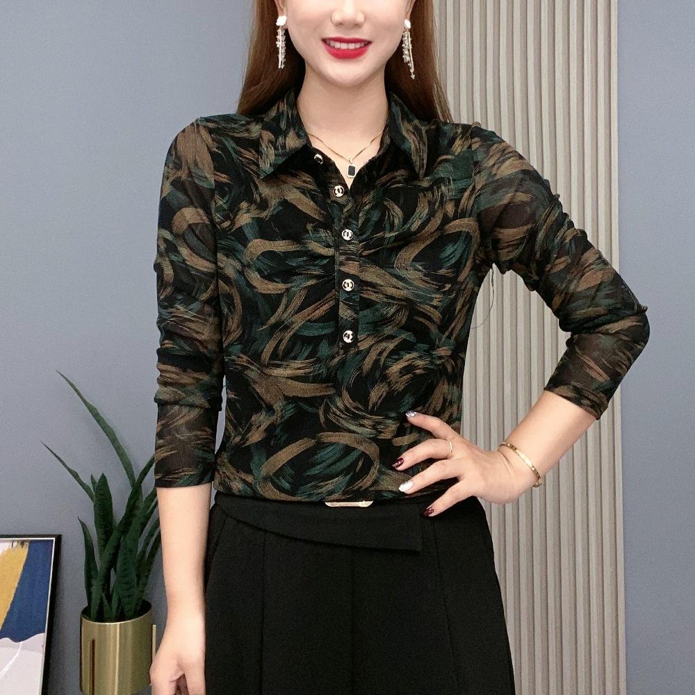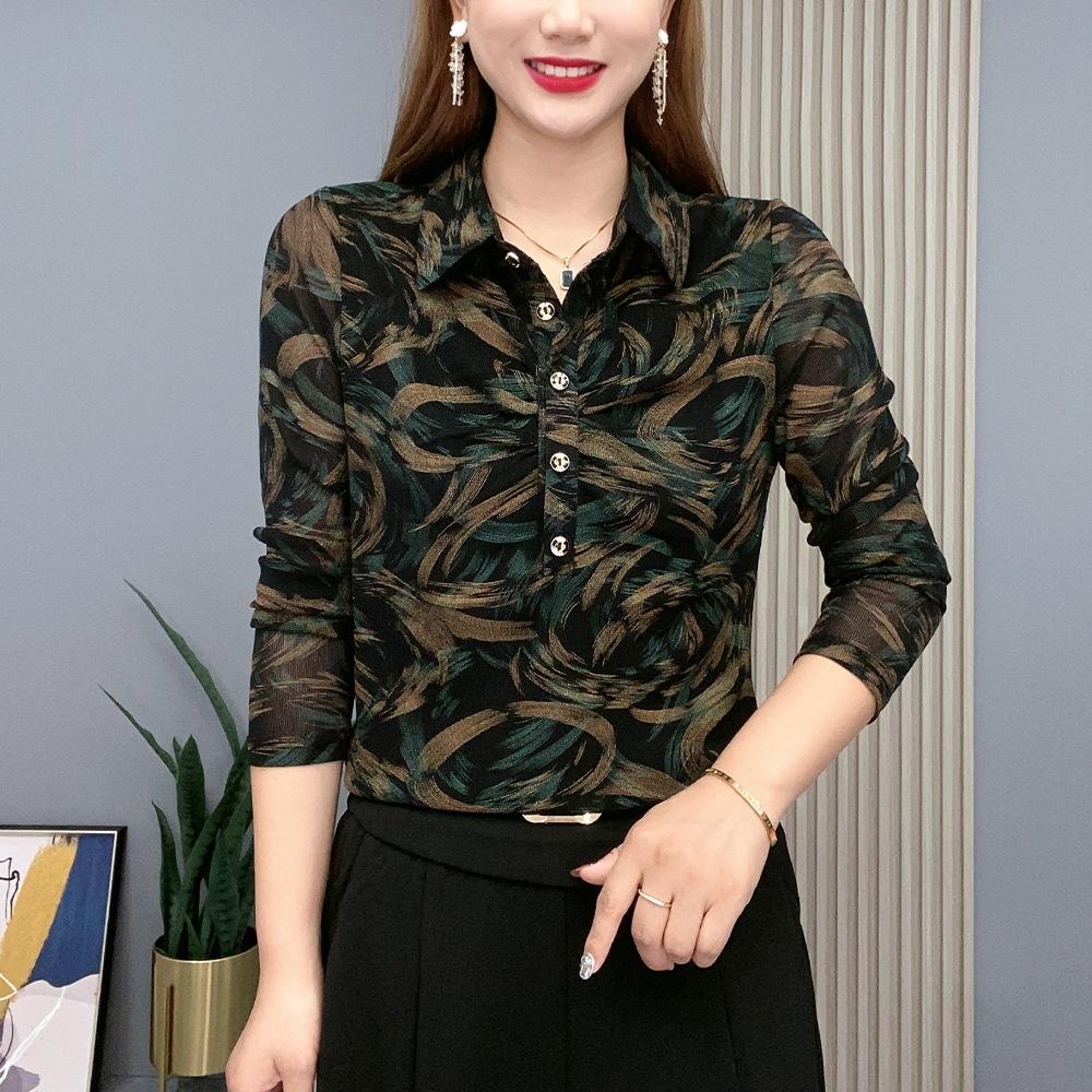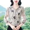 Camisa de otoño para madres de mediana edad y mayores, fina, antiedad, estampada, de manga larga, con solapa a la moda, elegante y combinable, para mujer.