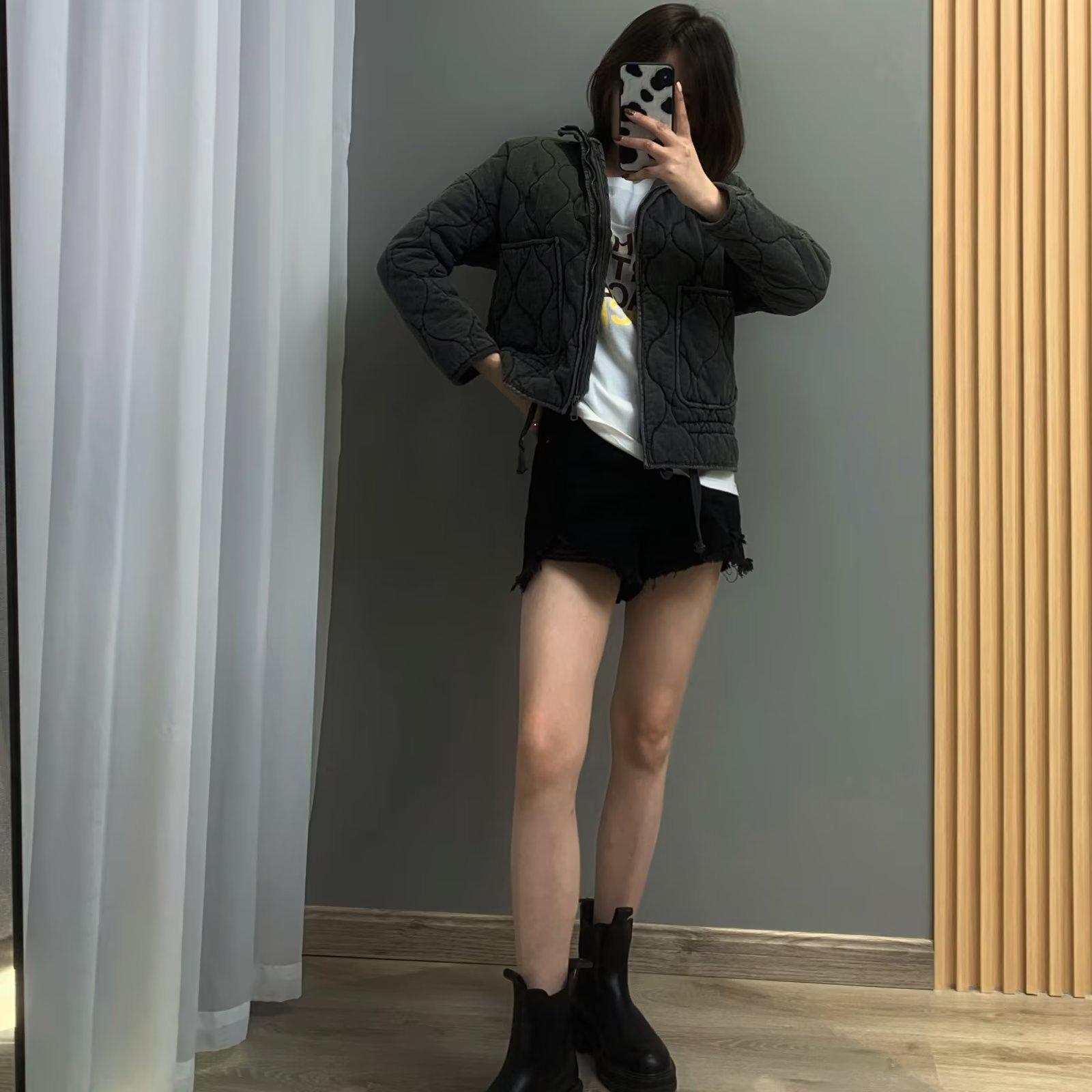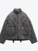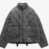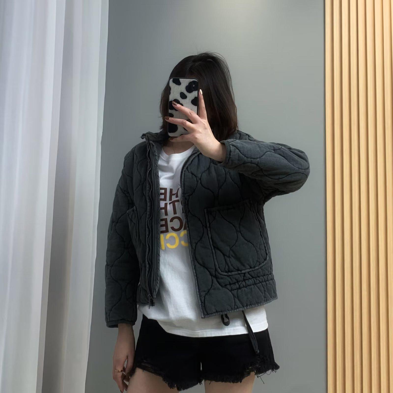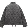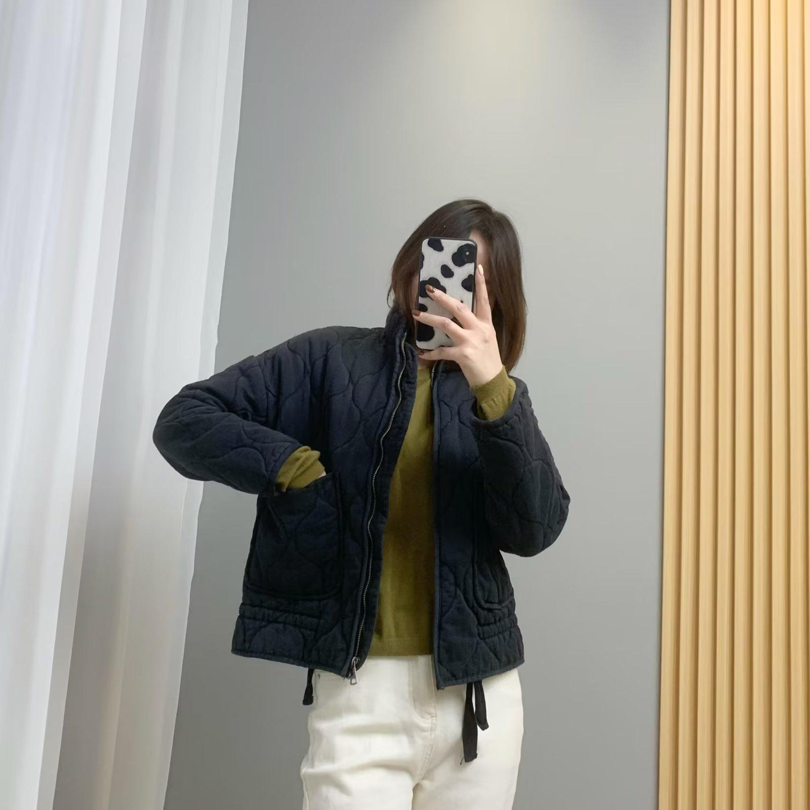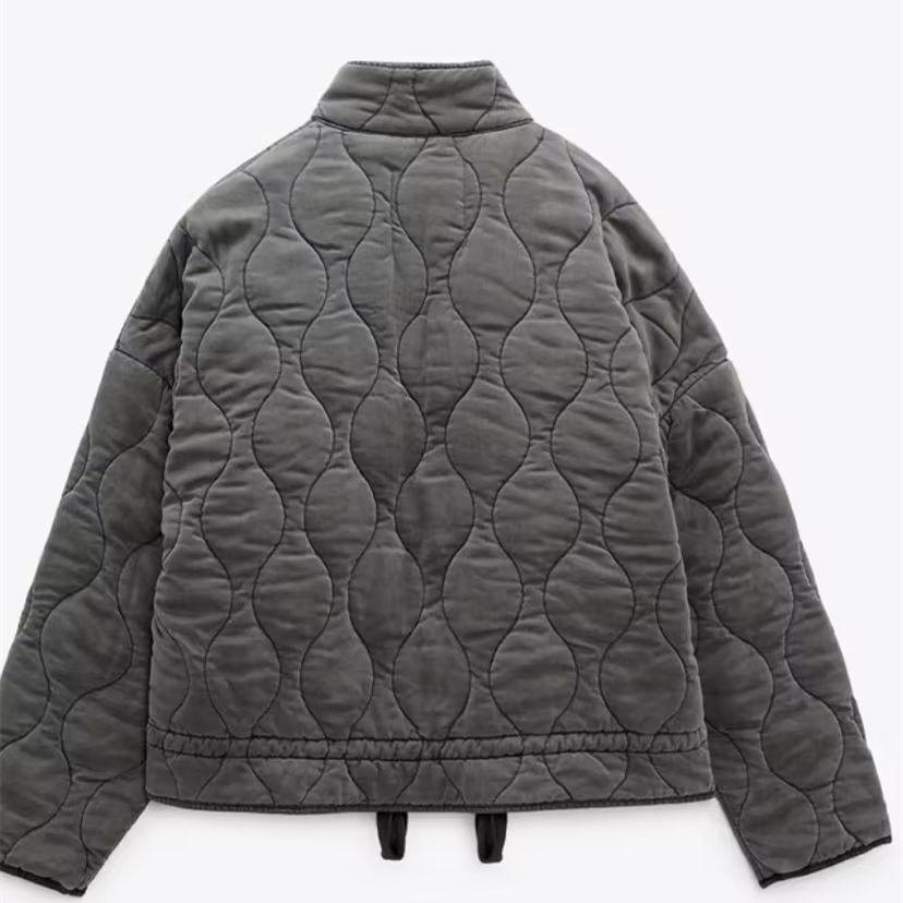Venta al por mayor transfronteriza 2023 otoño nuevo color sólido cuello alto cremallera bolsillo grande cordones manga larga abrigo acolchado de algodón F79256