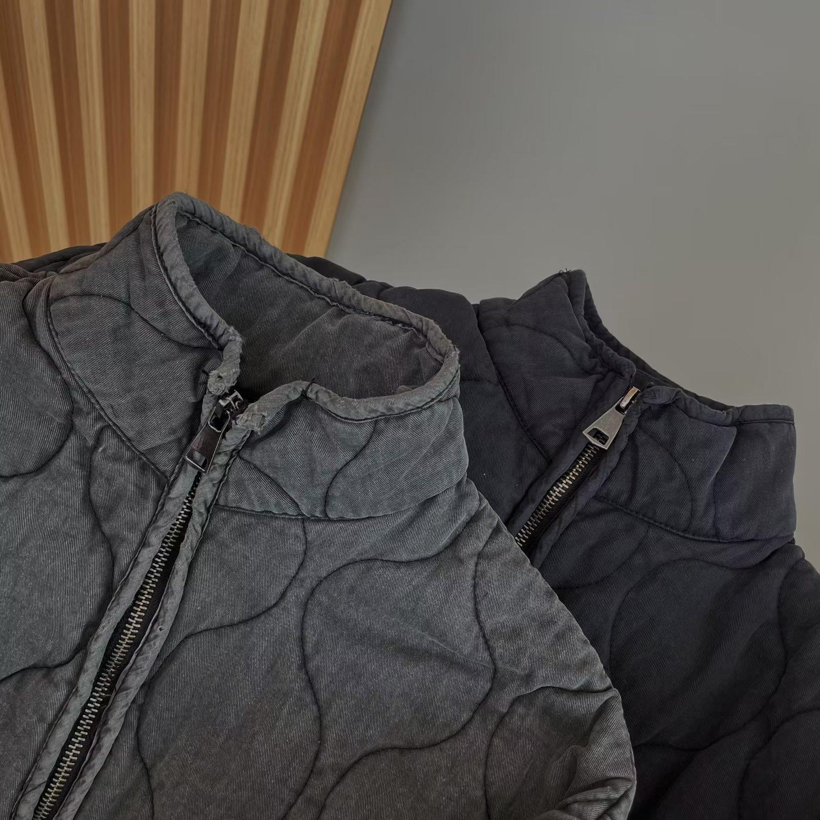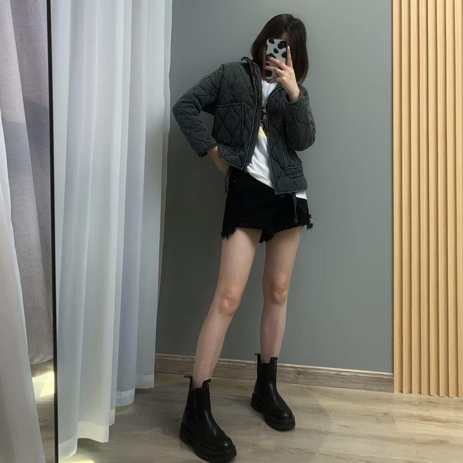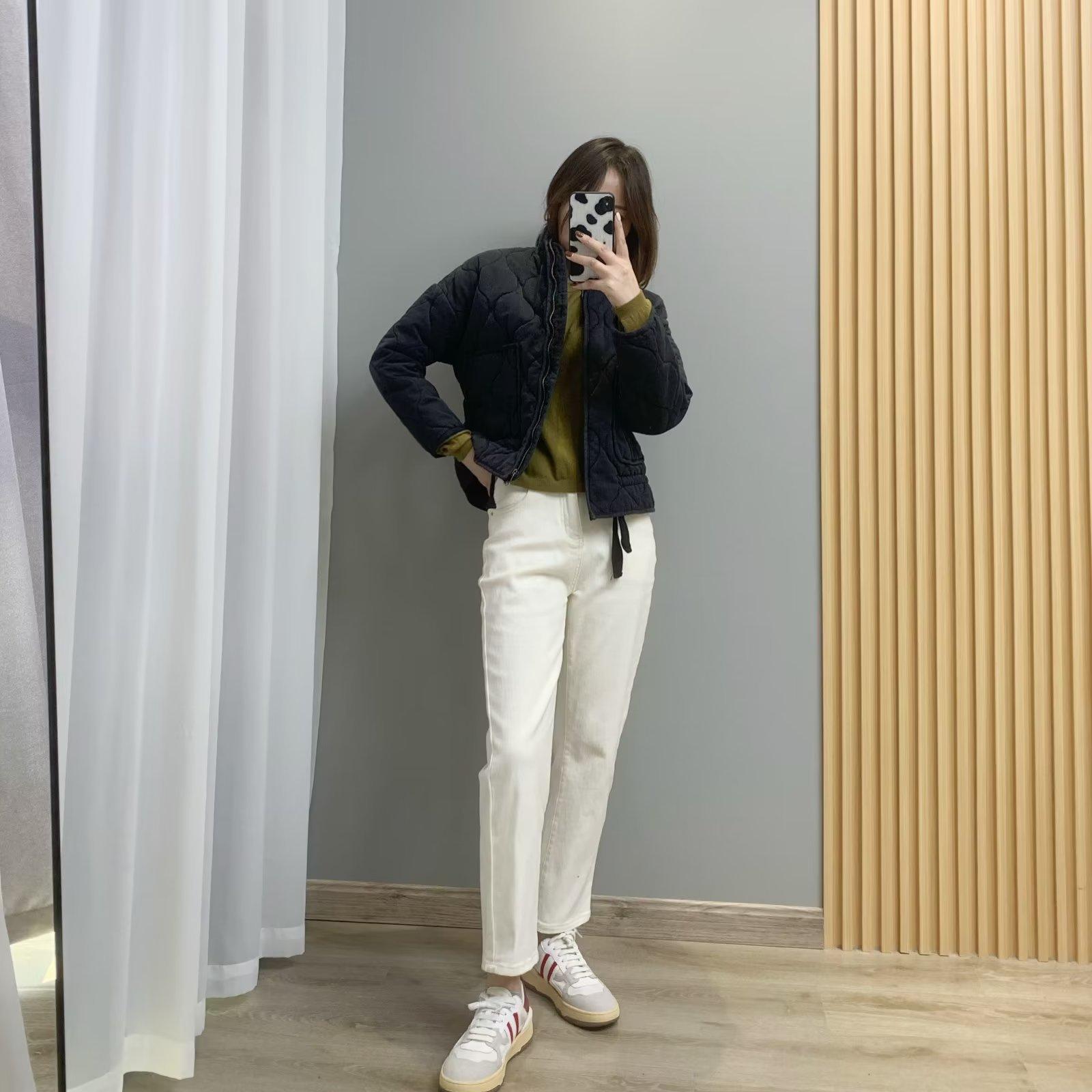 Venta al por mayor transfronteriza 2023 otoño nuevo color sólido cuello alto cremallera bolsillo grande cordones manga larga abrigo acolchado de algodón F79256