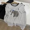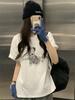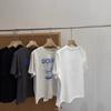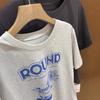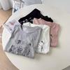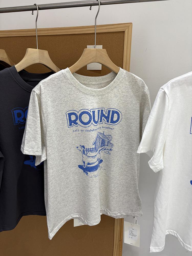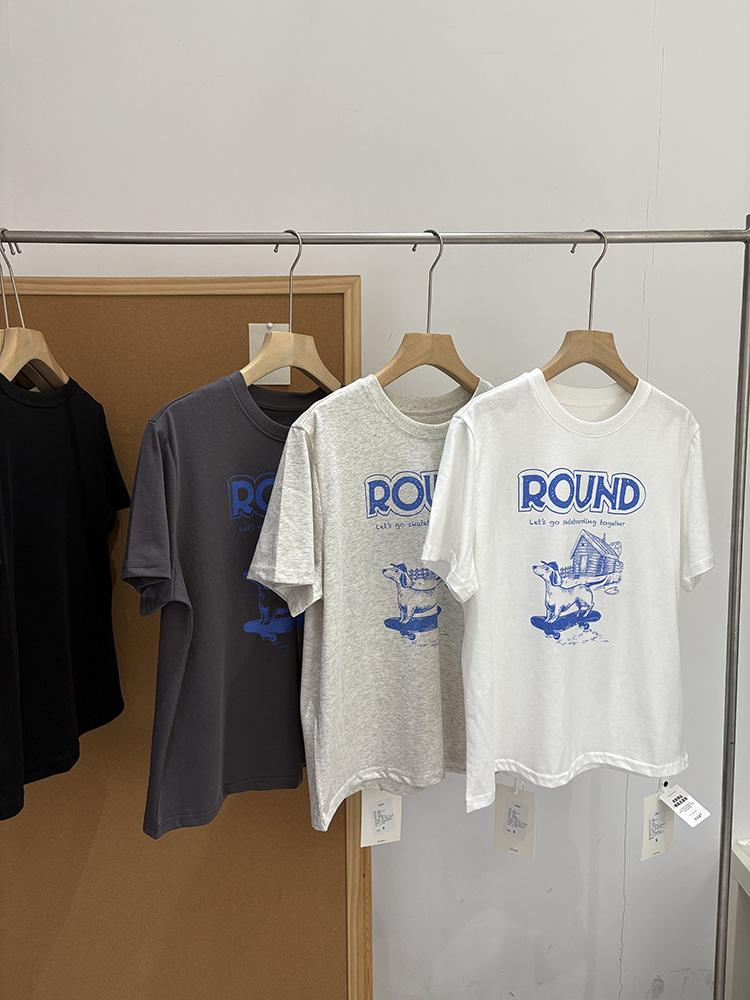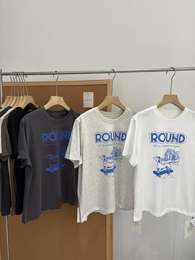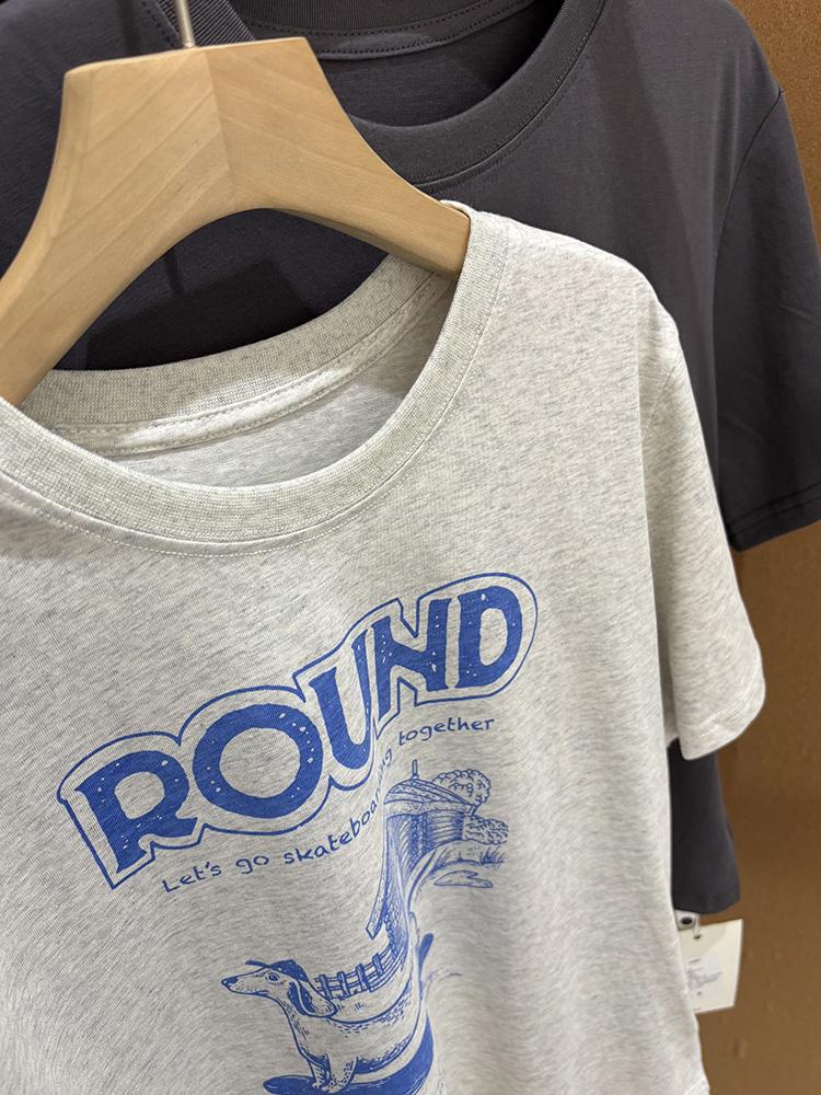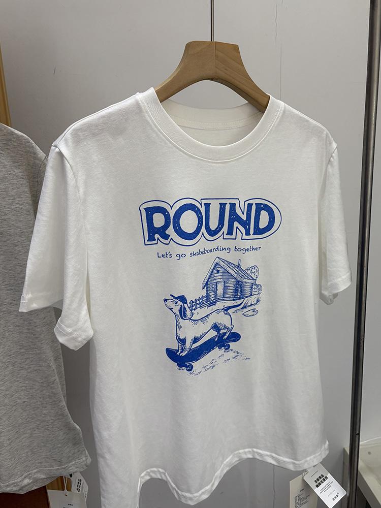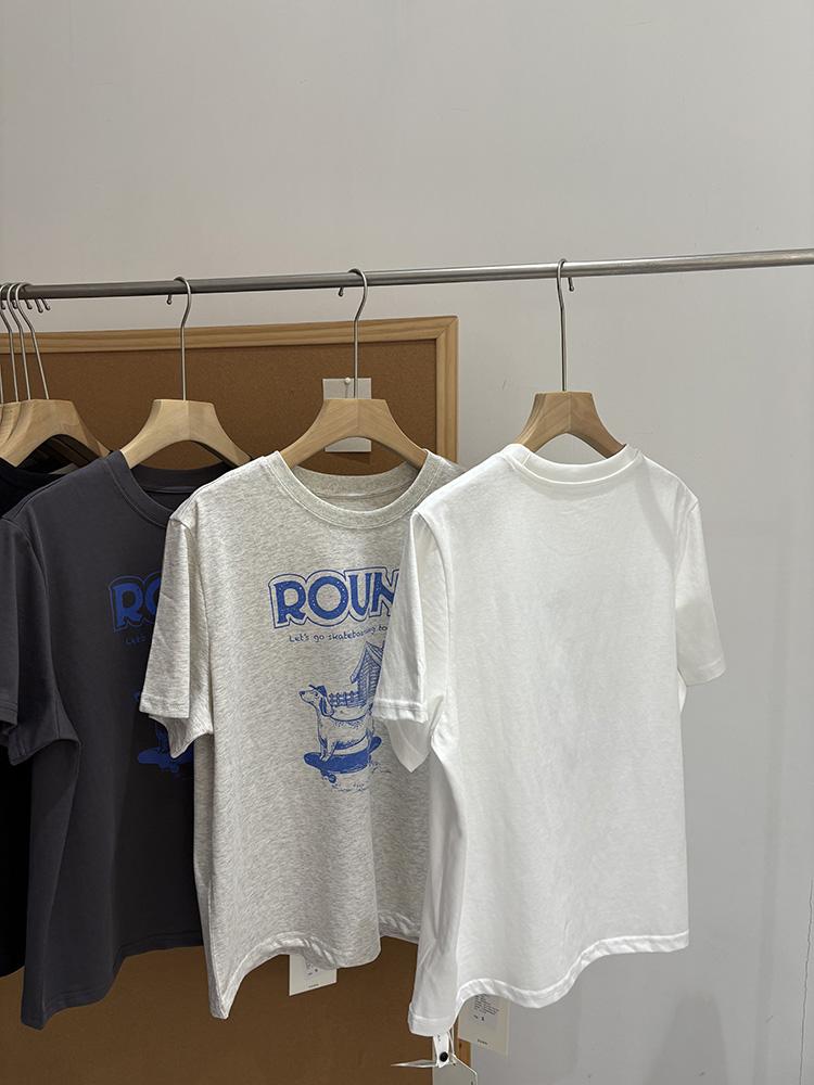 Verano Nuevo ~ Camiseta Coreana Linda con Estampado de Cachorro, Gris Mezcla, Algodón Fino, Cuello Redondo, Holgada, Adelgazante, Manga Corta para Mujer