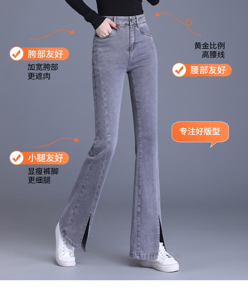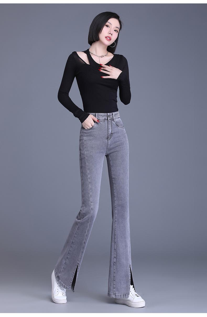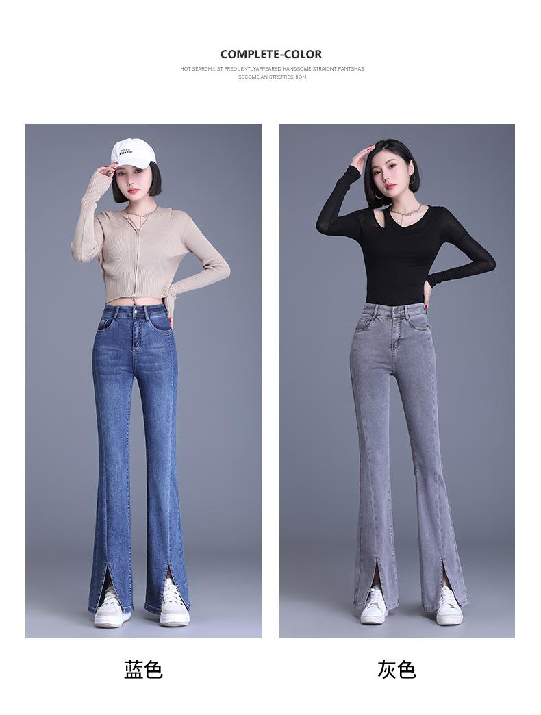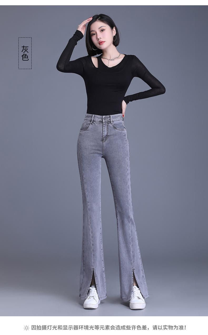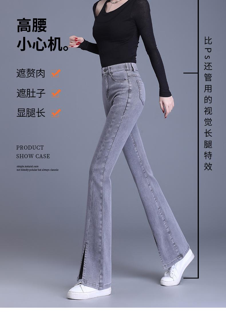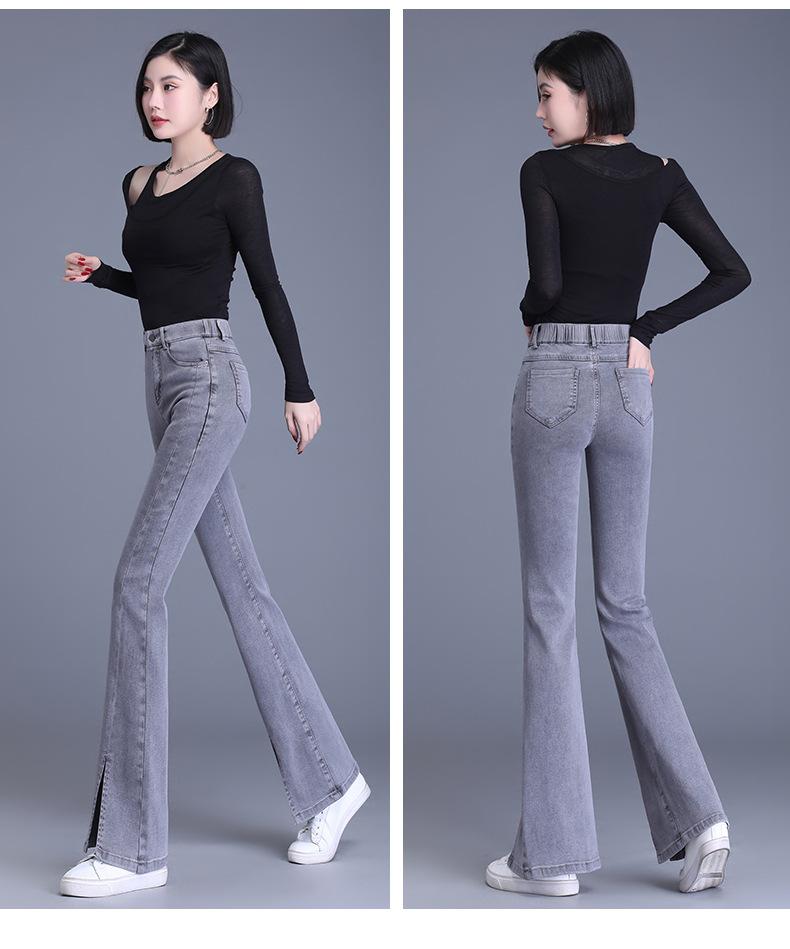 Vaqueros acampanados de cintura alta con abertura gris para mujer 2023 Primavera y Otoño Nuevos pantalones ajustados elásticos ajustados pantalones de herradura