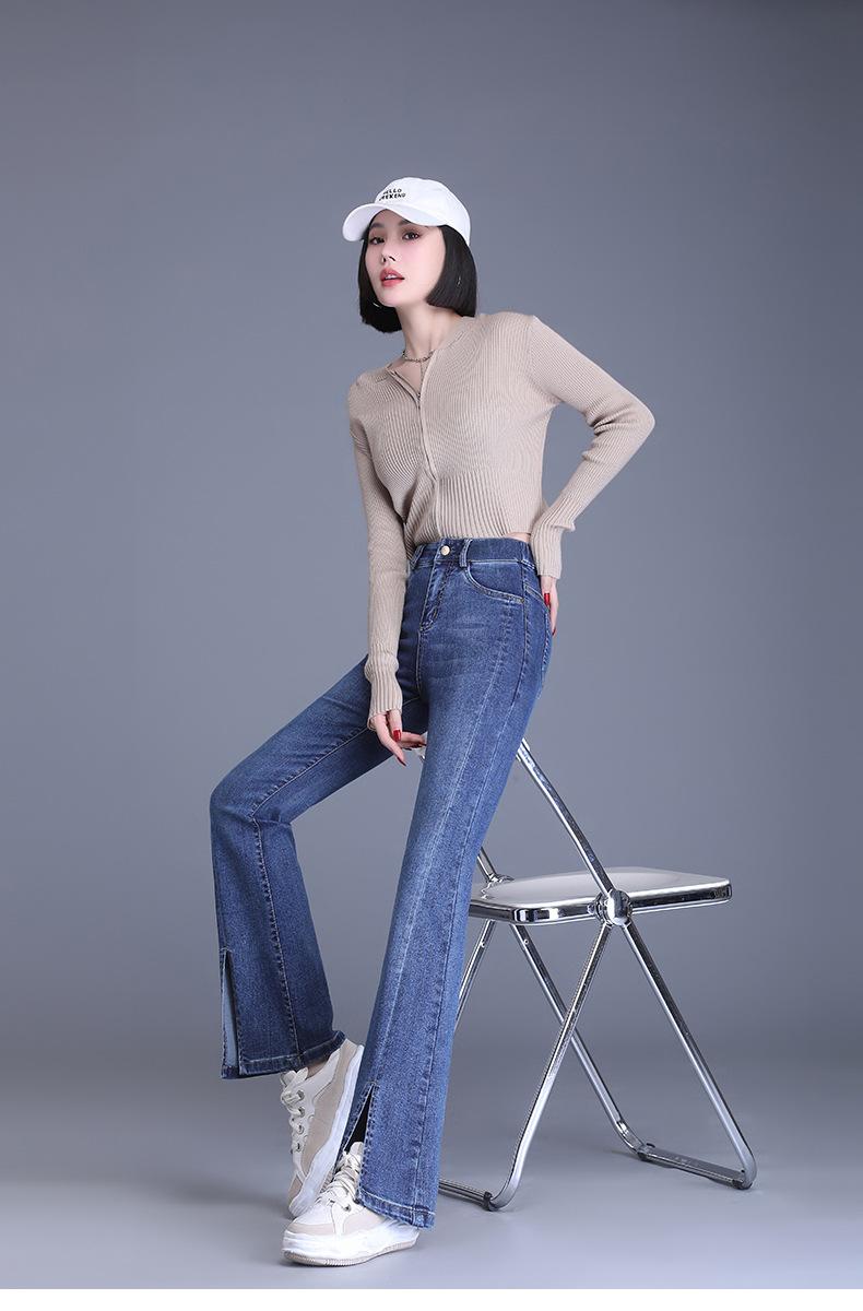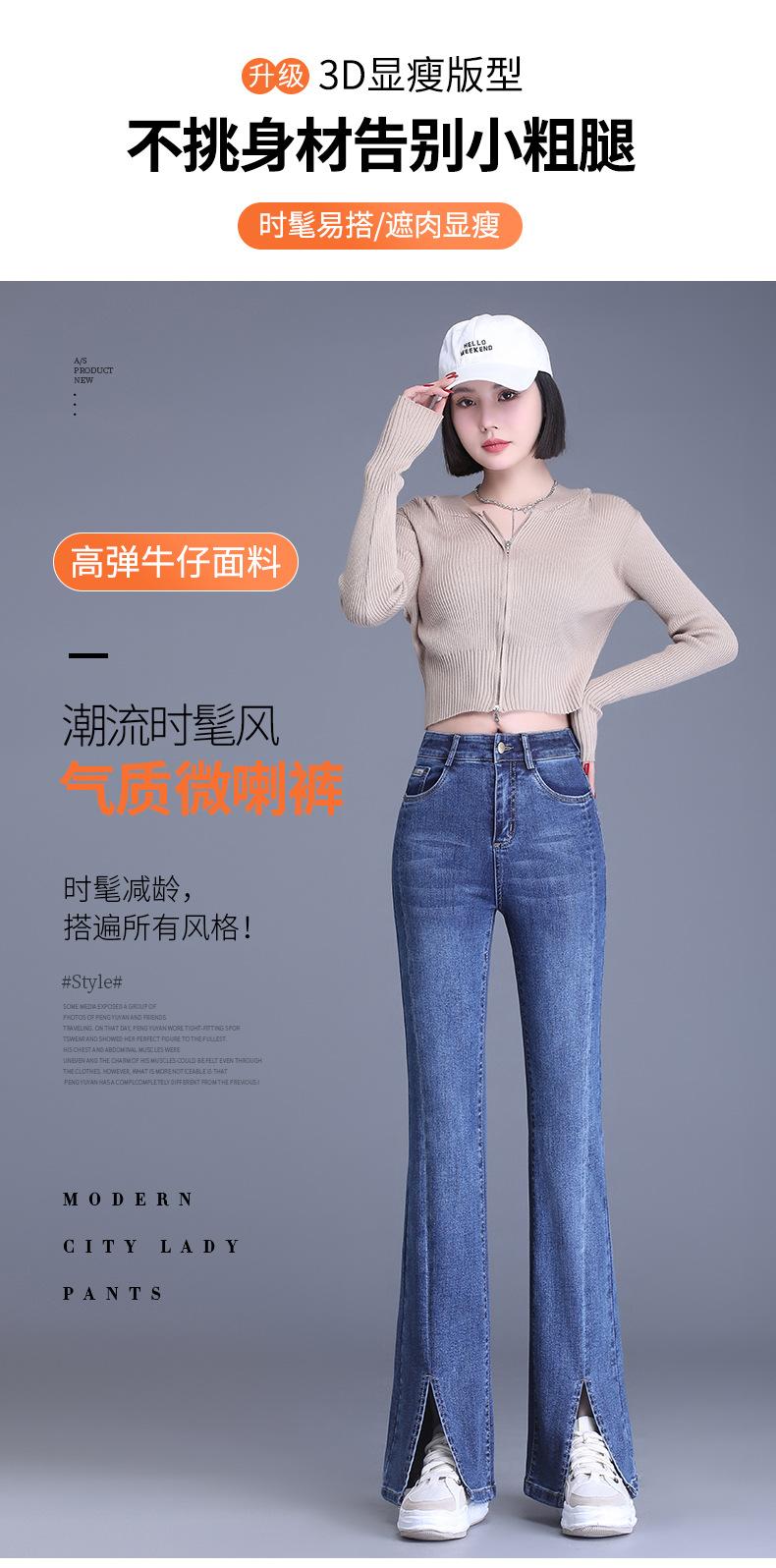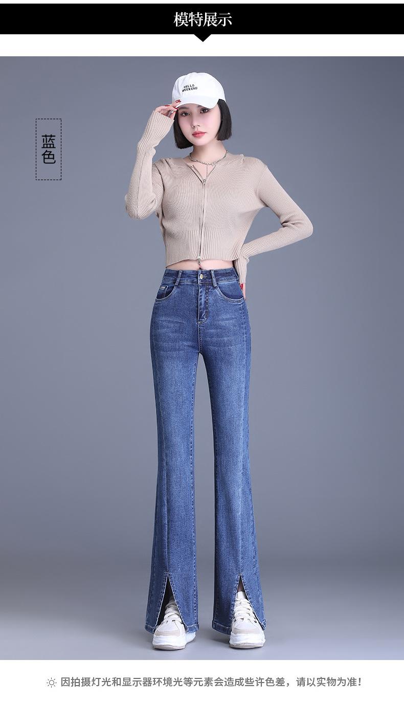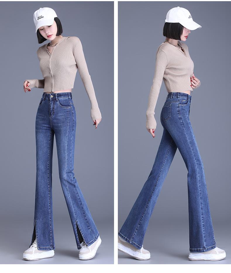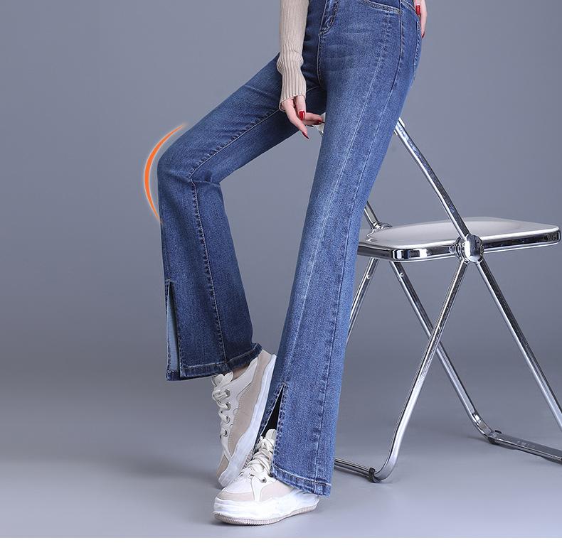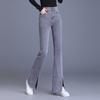 Vaqueros acampanados de cintura alta con abertura gris para mujer 2023 Primavera y Otoño Nuevos pantalones ajustados elásticos ajustados pantalones de herradura