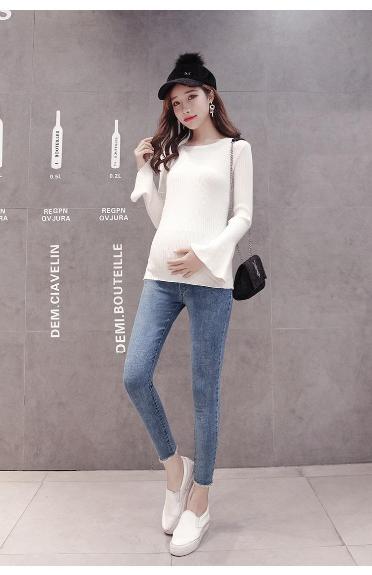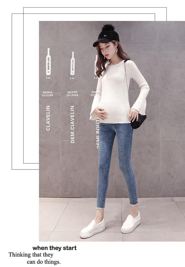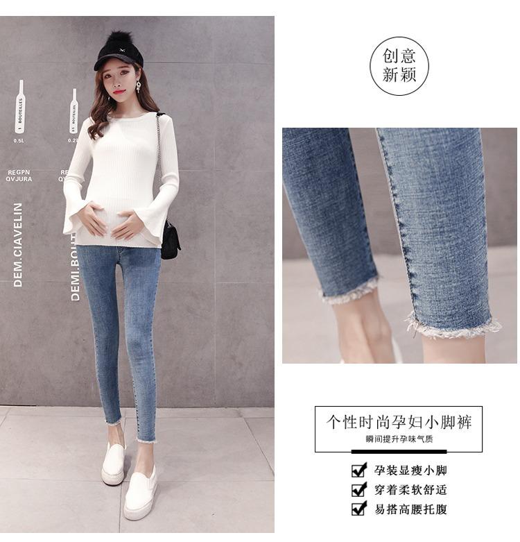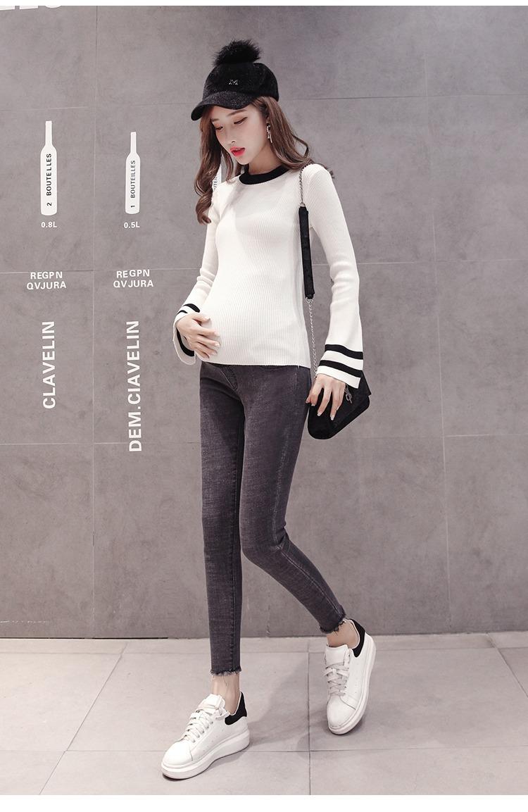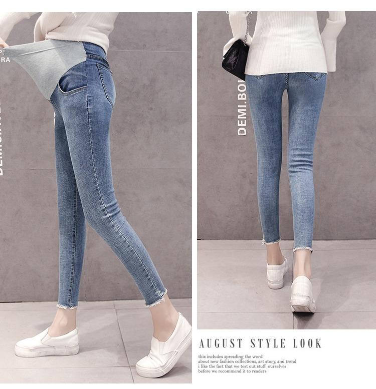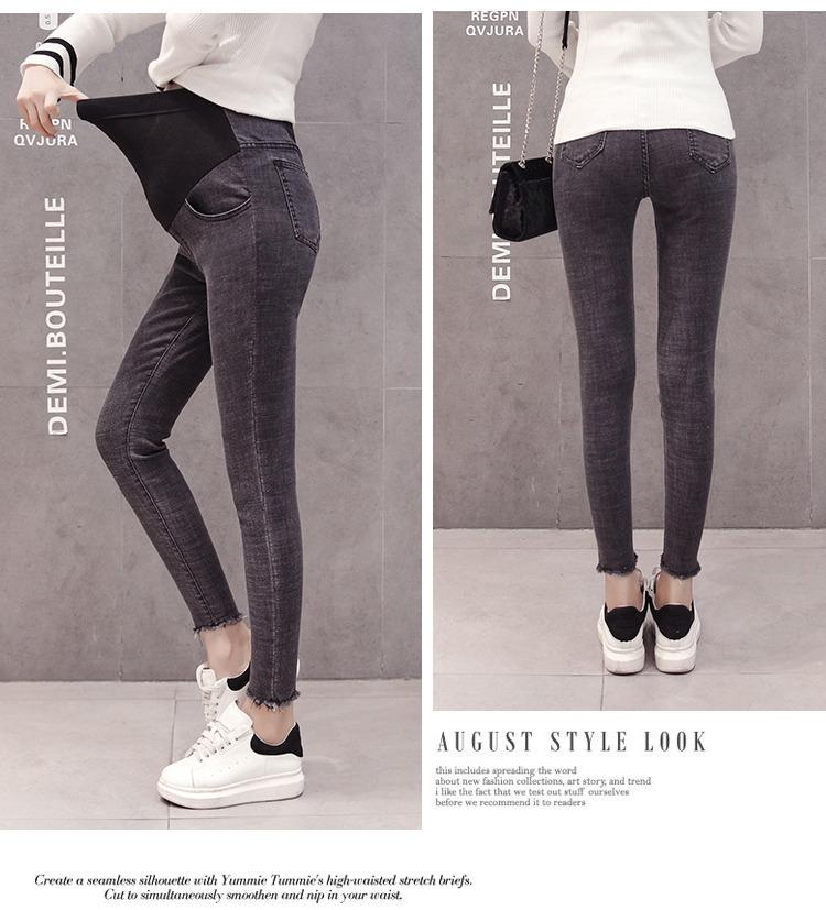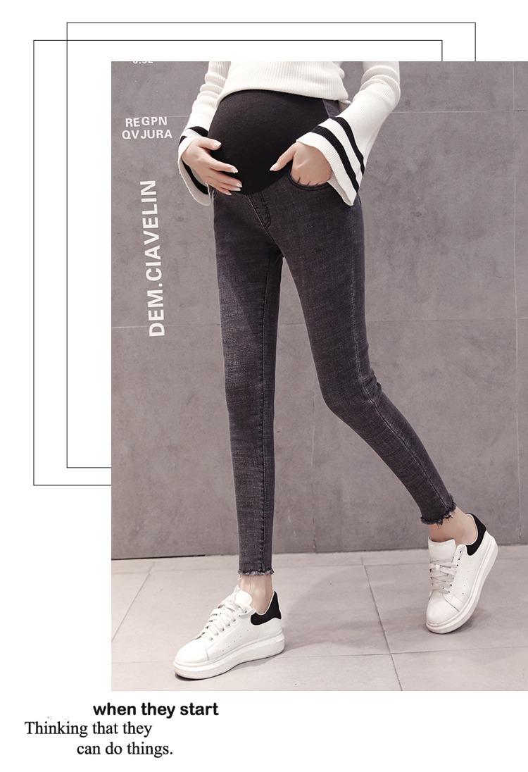 Pantalones vaqueros elásticos recortados para embarazadas, otoño e invierno 2022, nueva moda coreana para embarazadas
