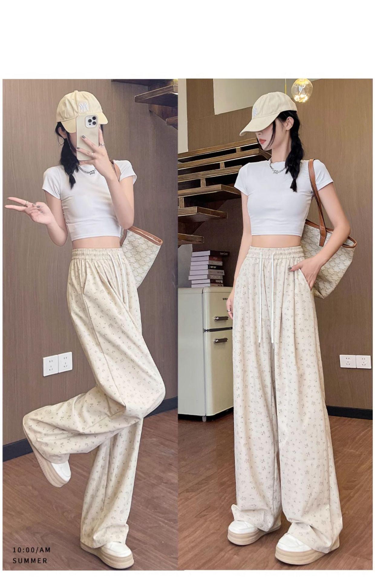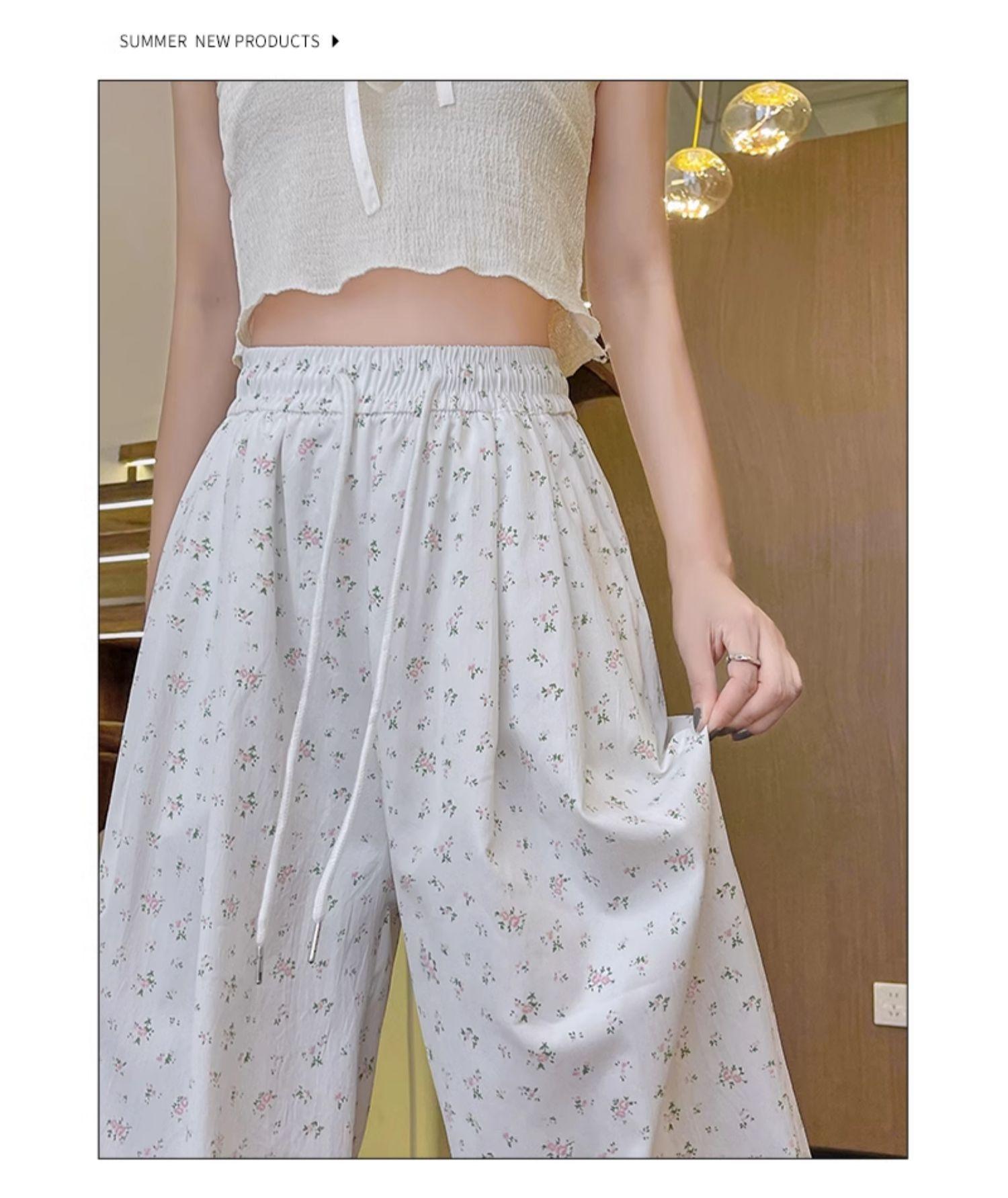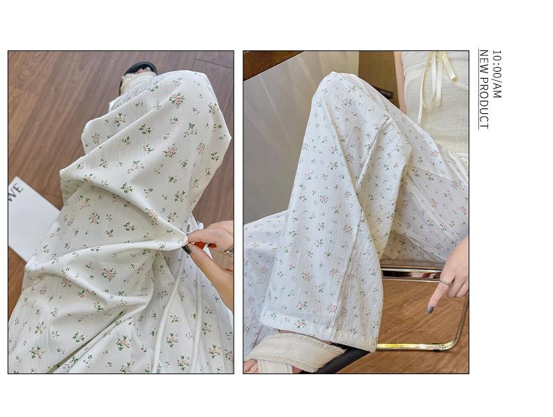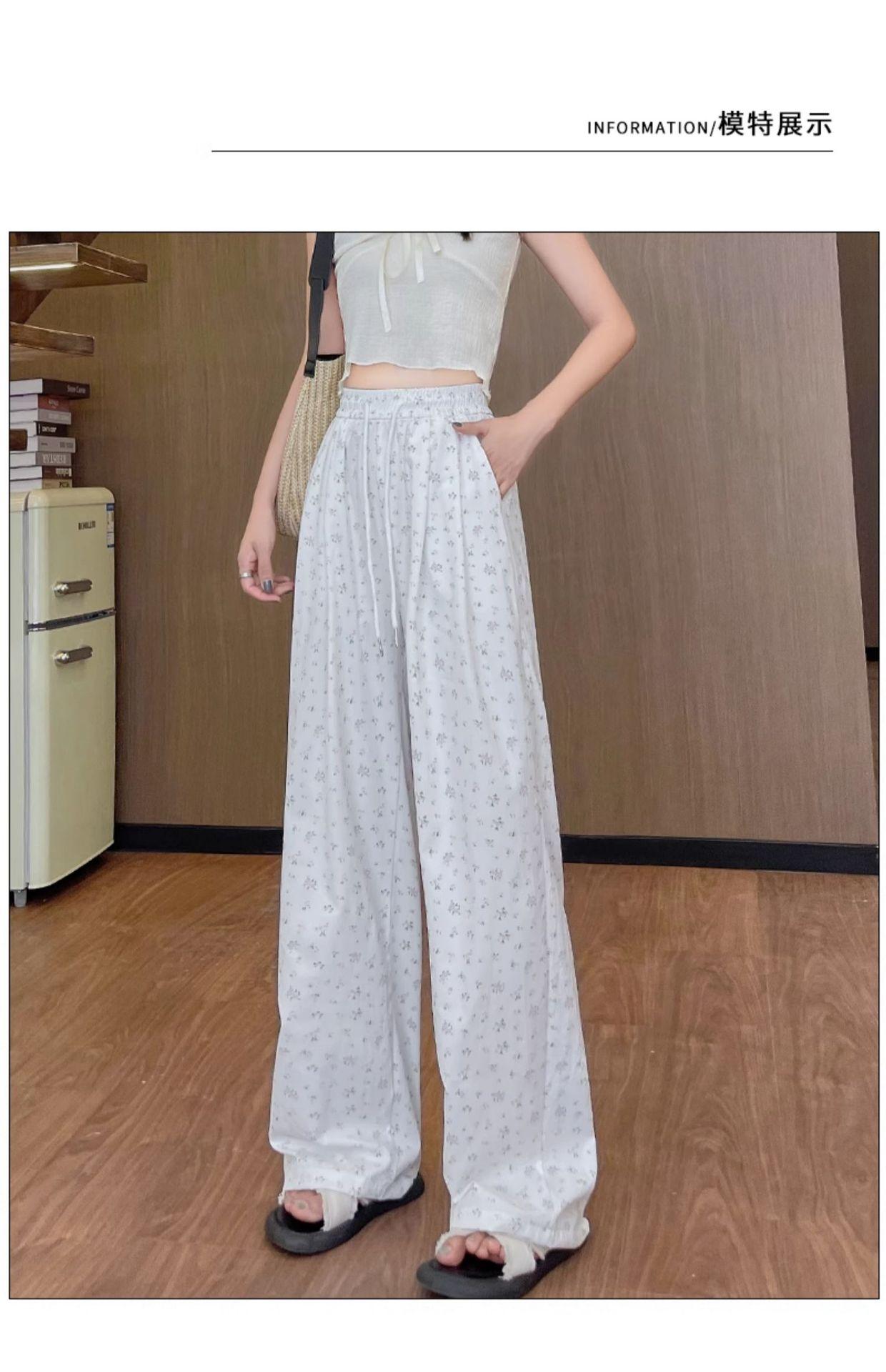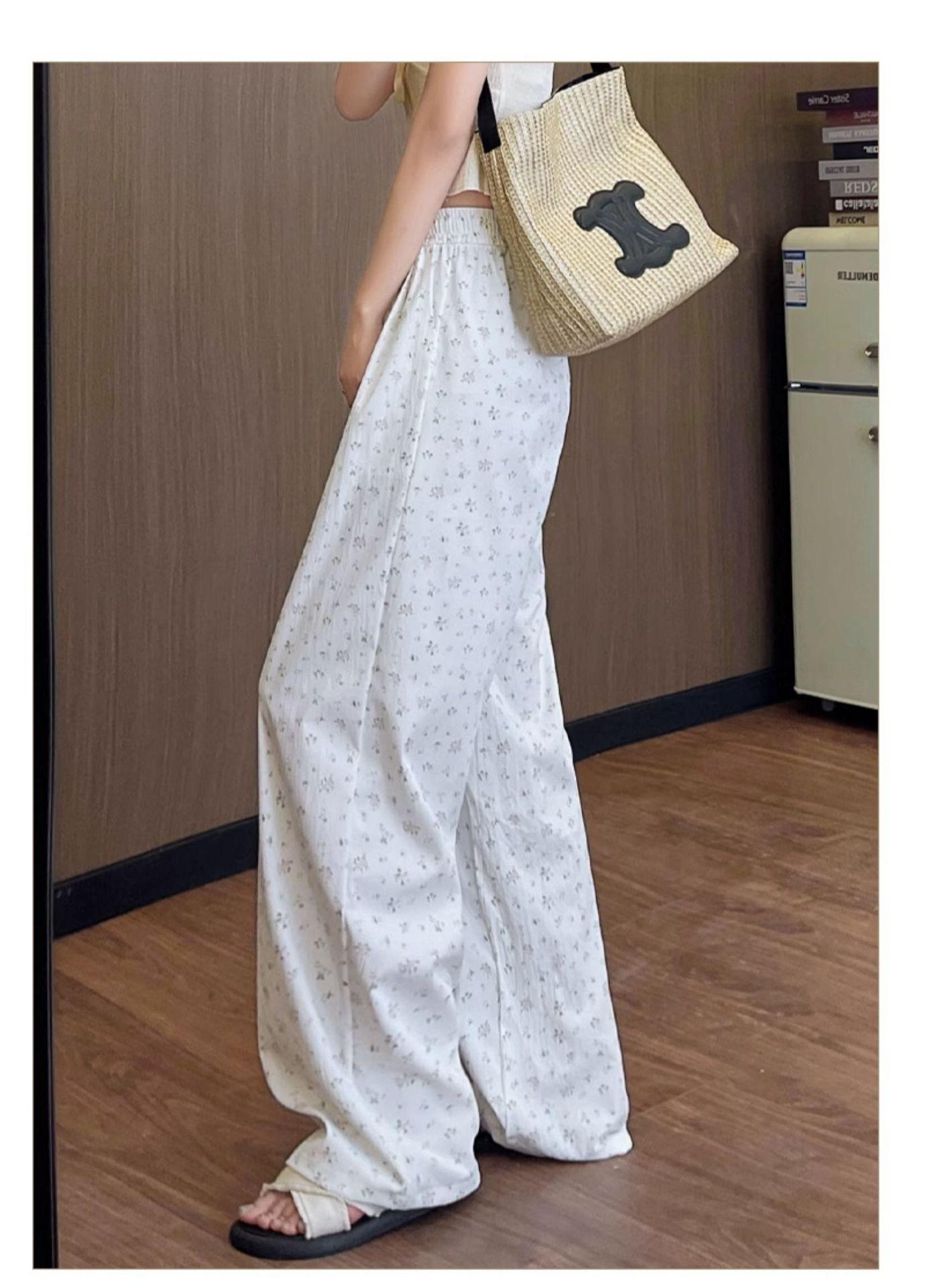 Pantalones Florales de Seda de Hielo Blanco para Mujer Verano 2025 Nuevo Casual Pequeño Perezoso Textura Yamamoto Piernas Anchas