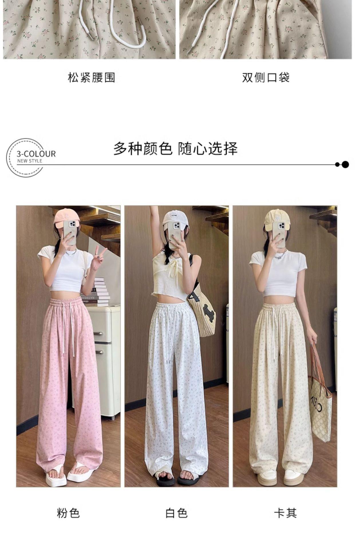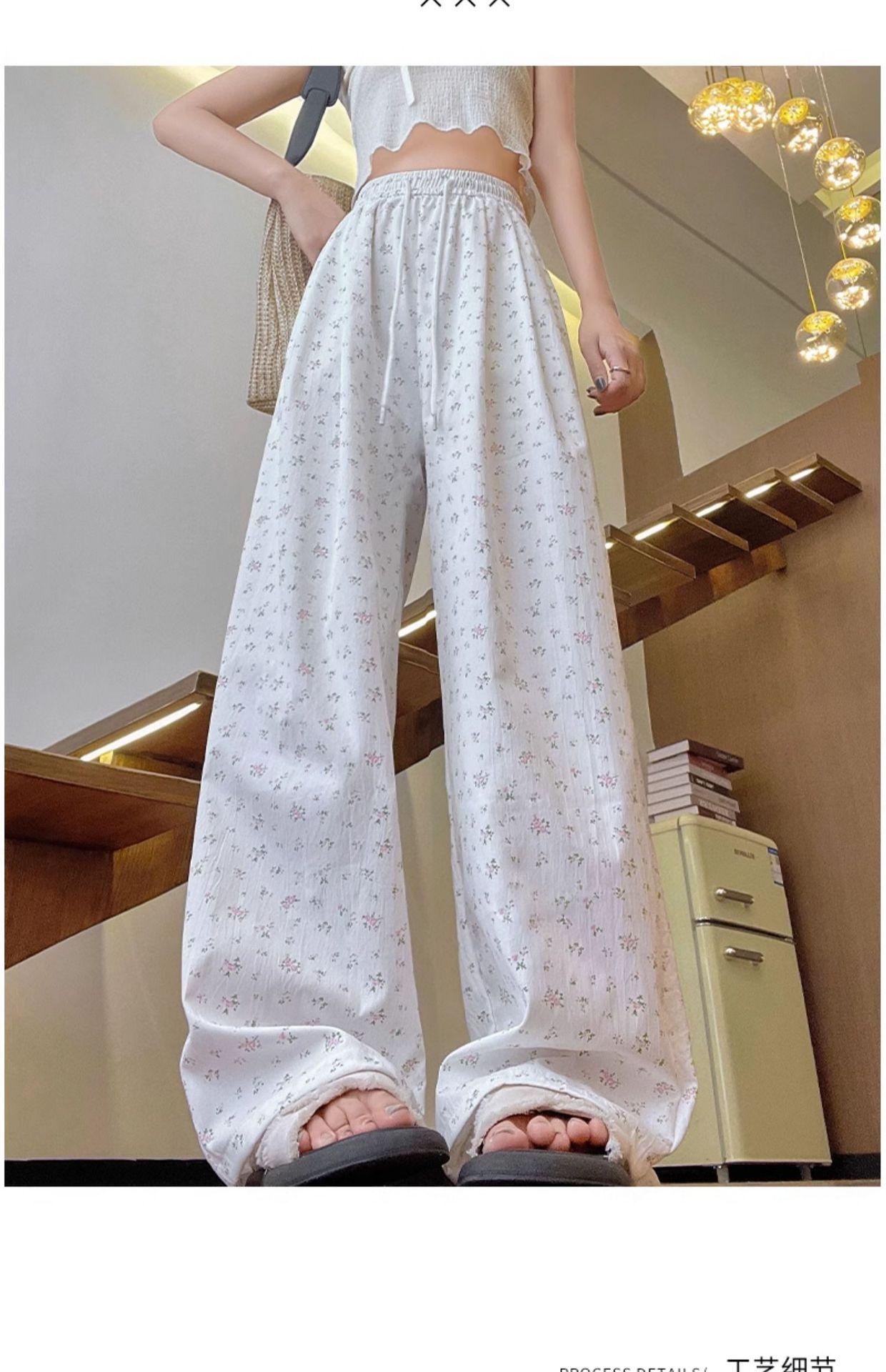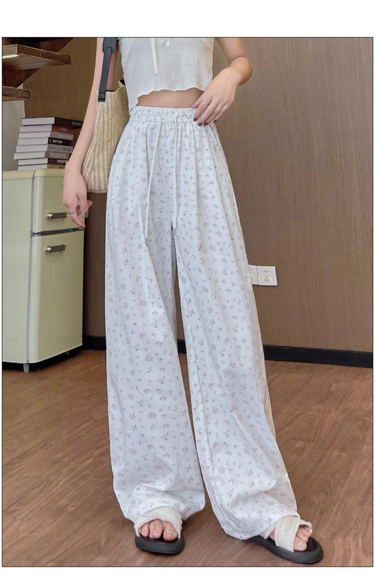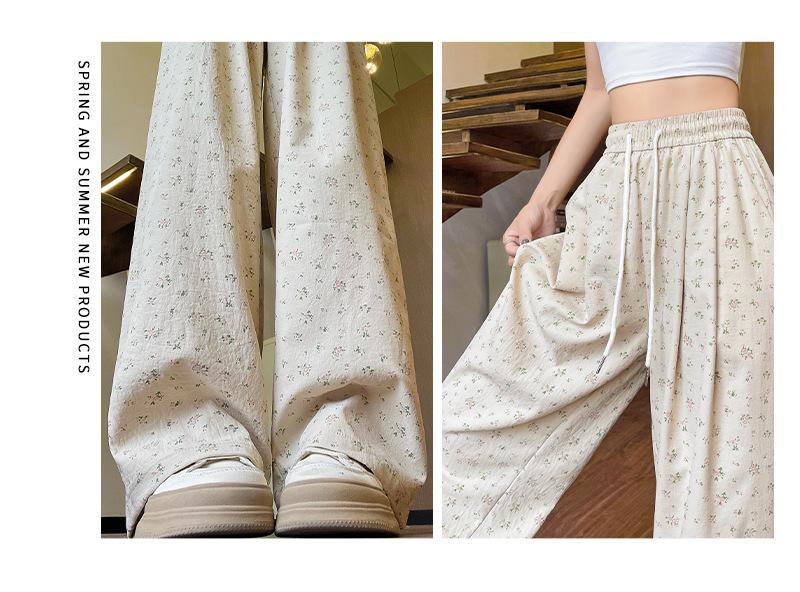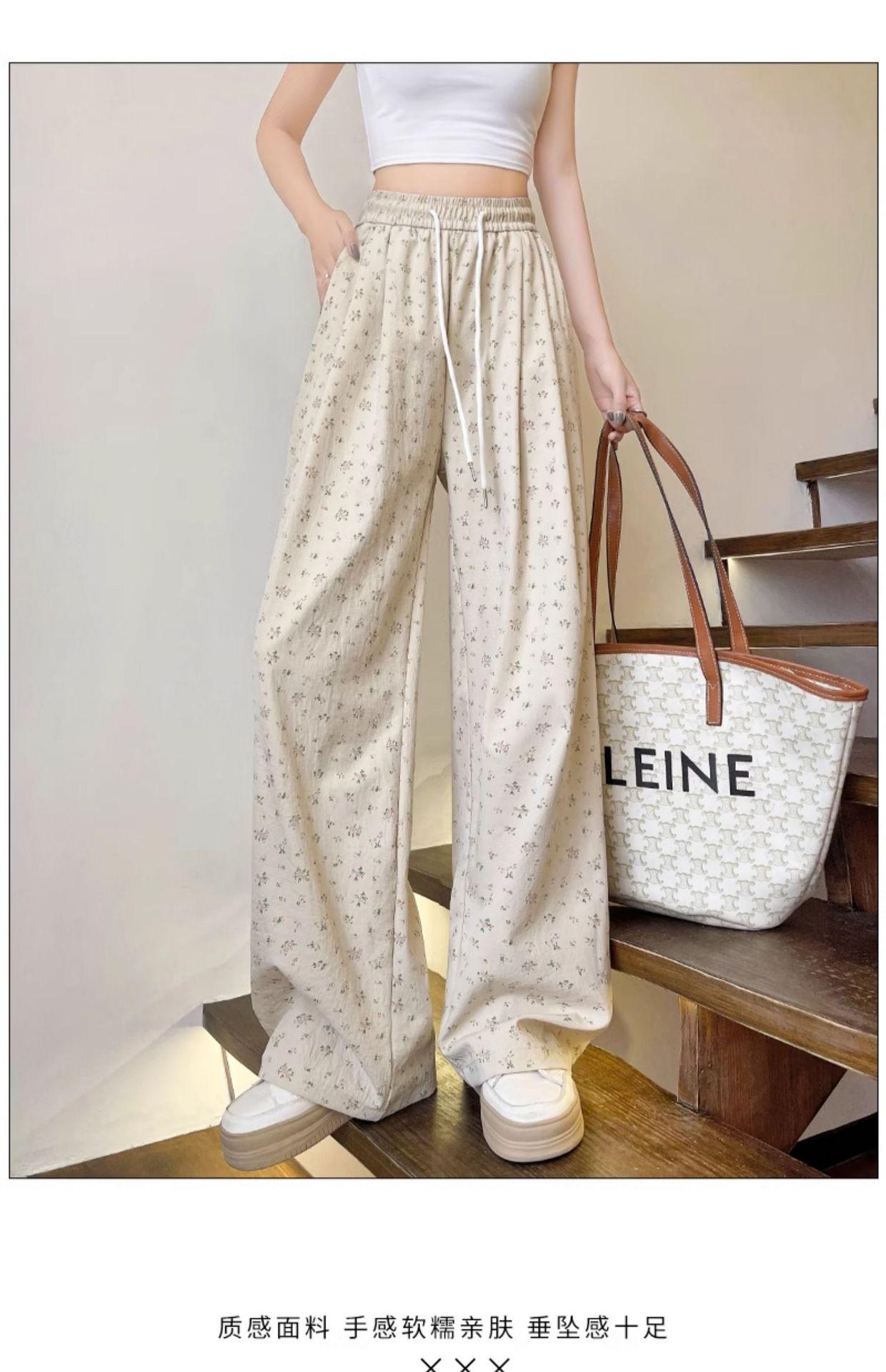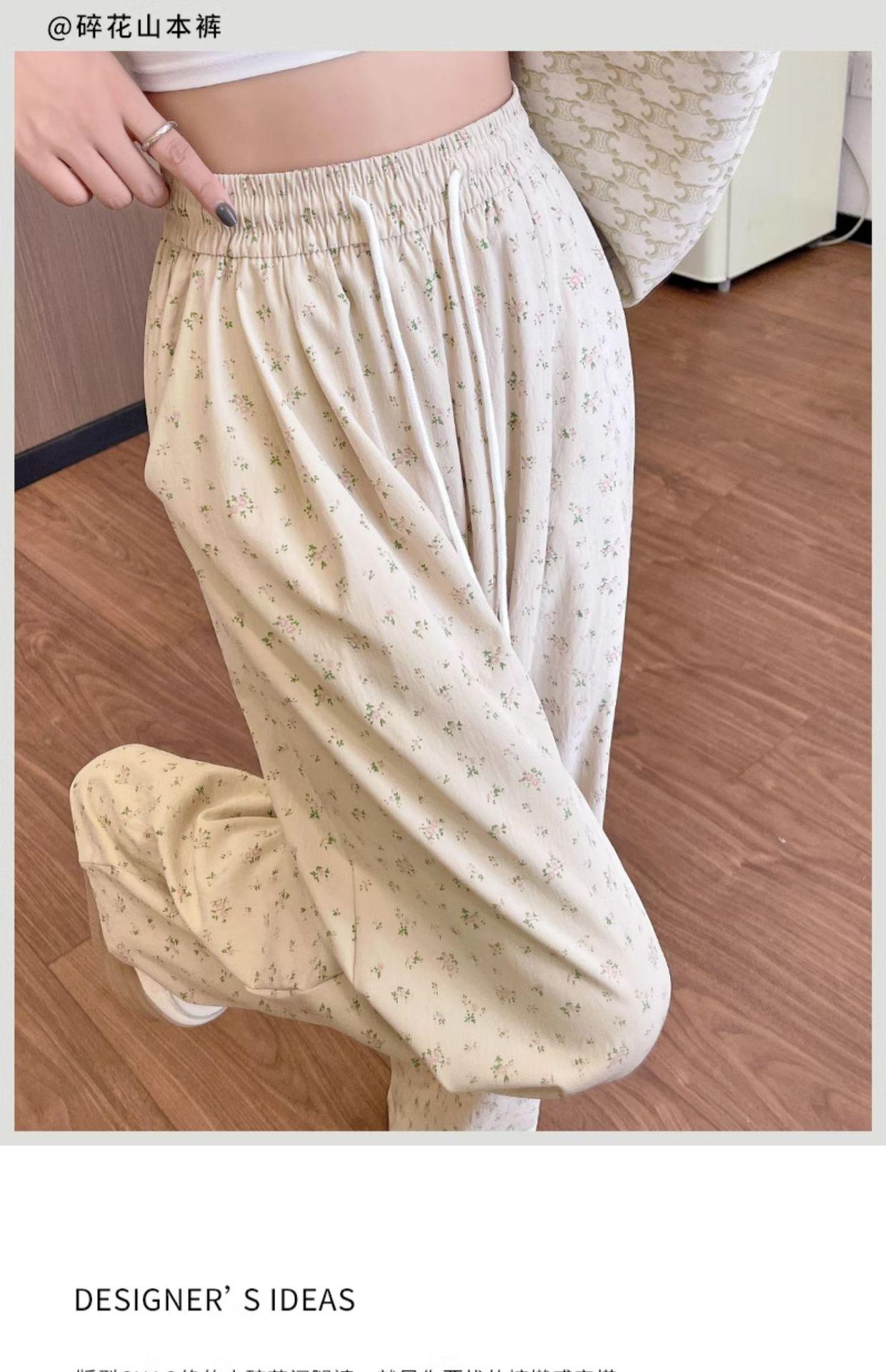 Pantalones Florales de Seda de Hielo Blanco para Mujer Verano 2025 Nuevo Casual Pequeño Perezoso Textura Yamamoto Piernas Anchas