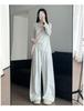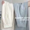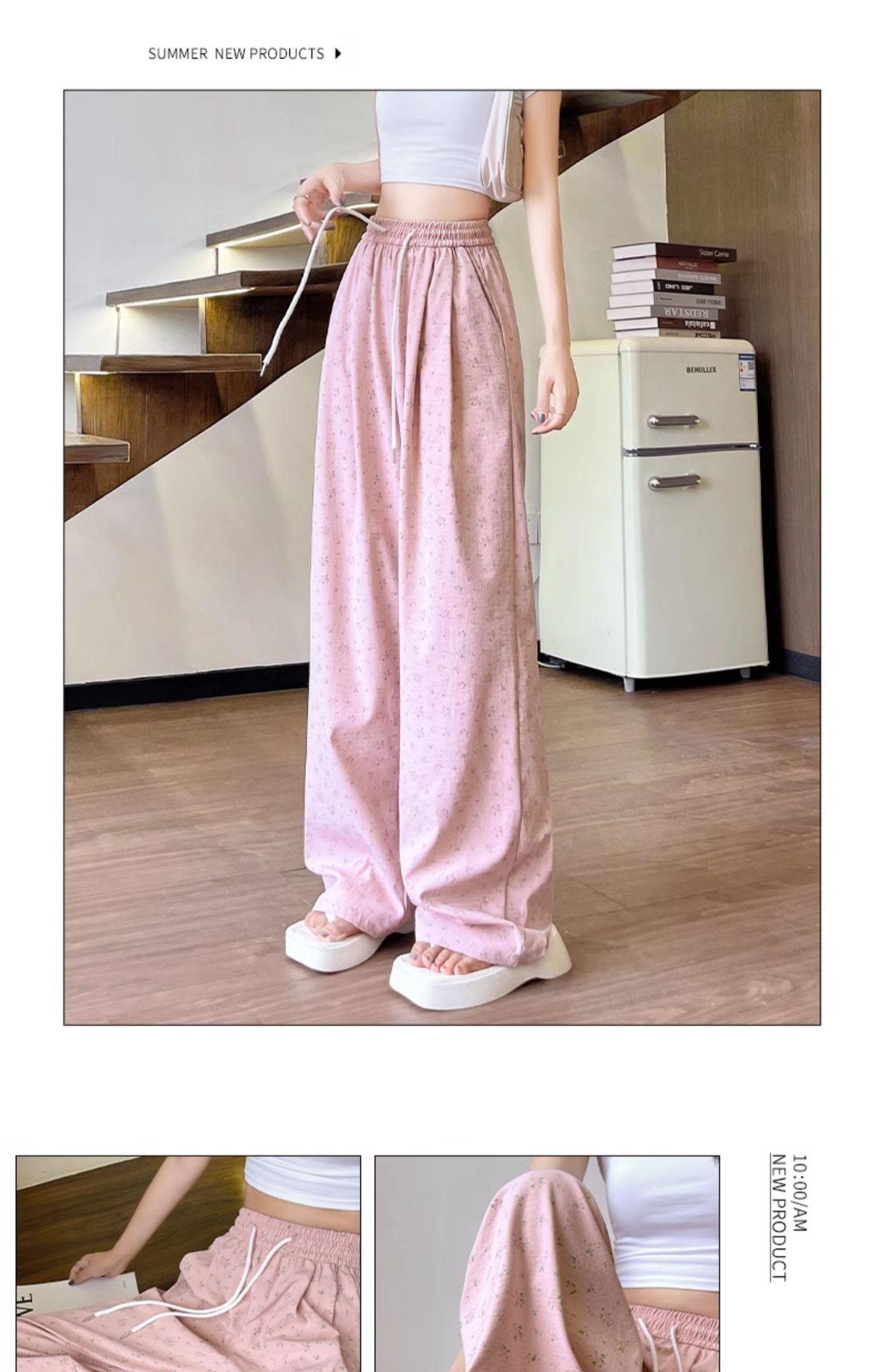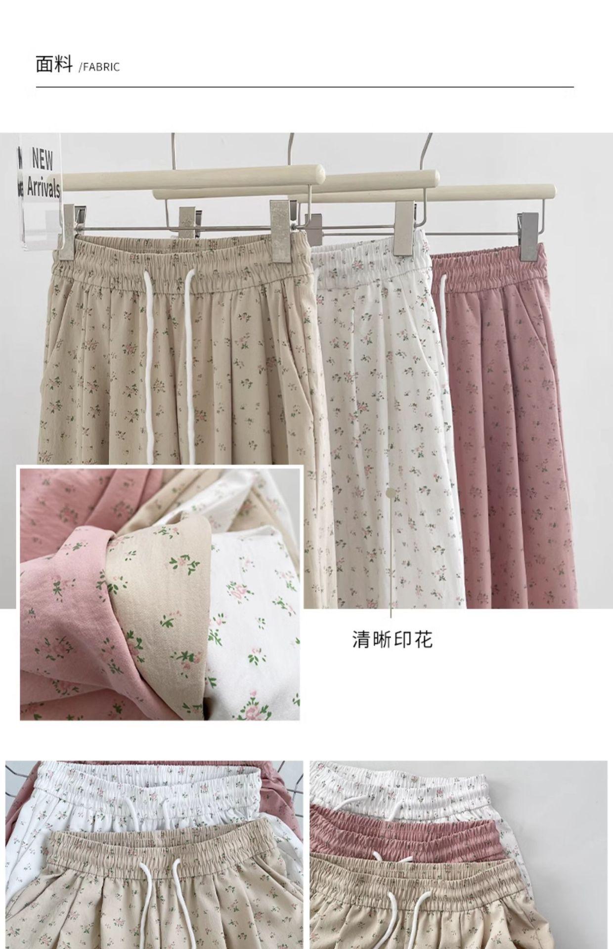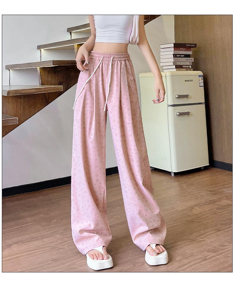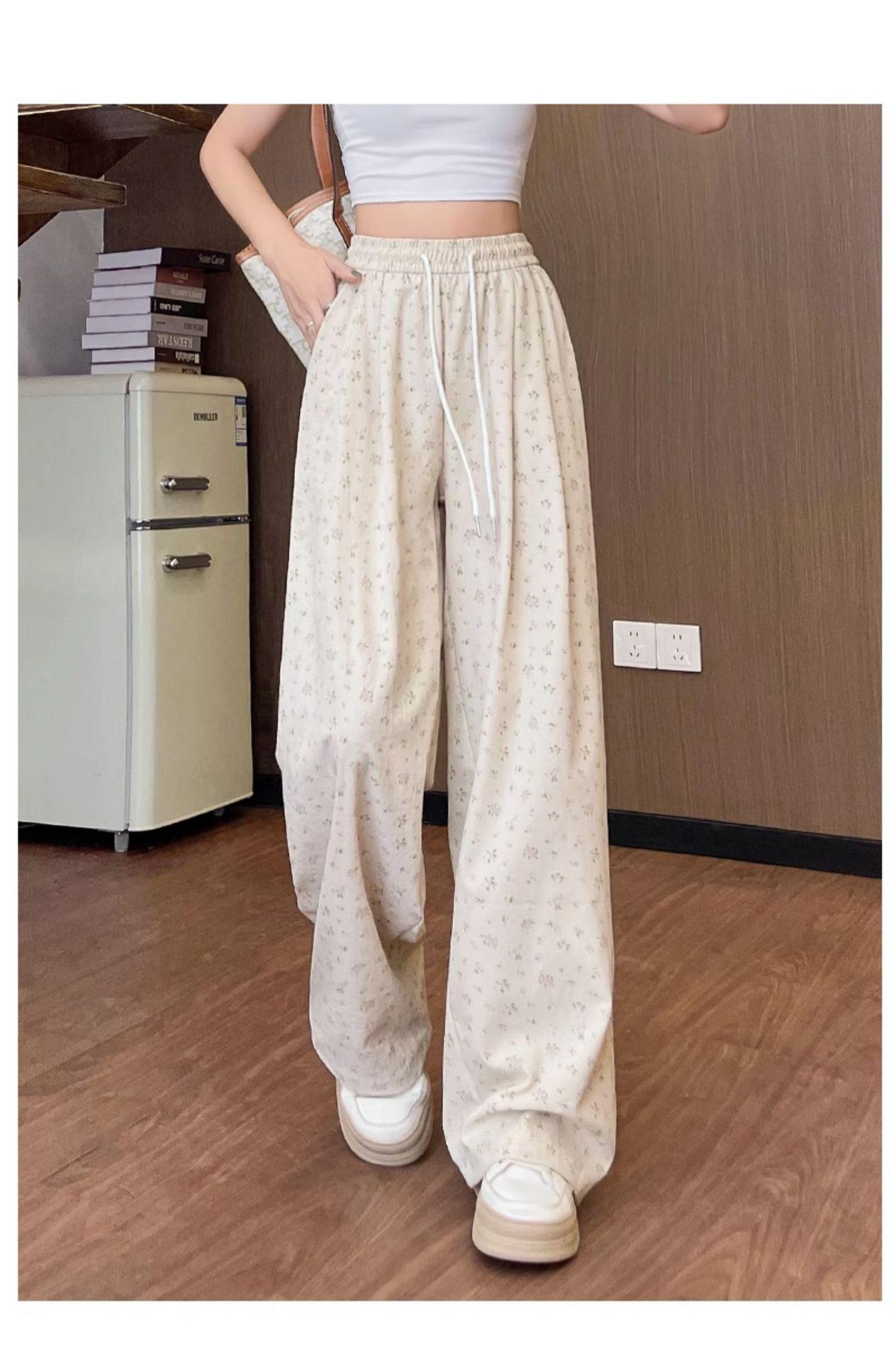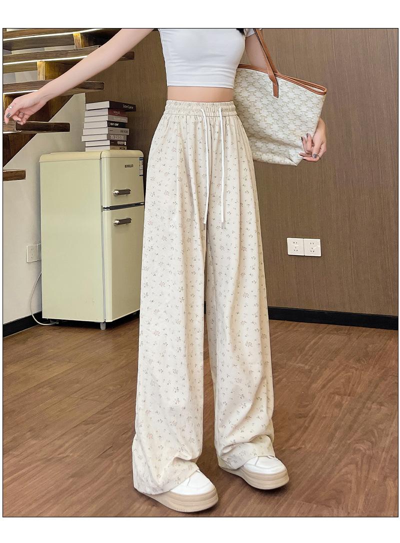 Pantalones Florales de Seda de Hielo Blanco para Mujer Verano 2025 Nuevo Casual Pequeño Perezoso Textura Yamamoto Piernas Anchas