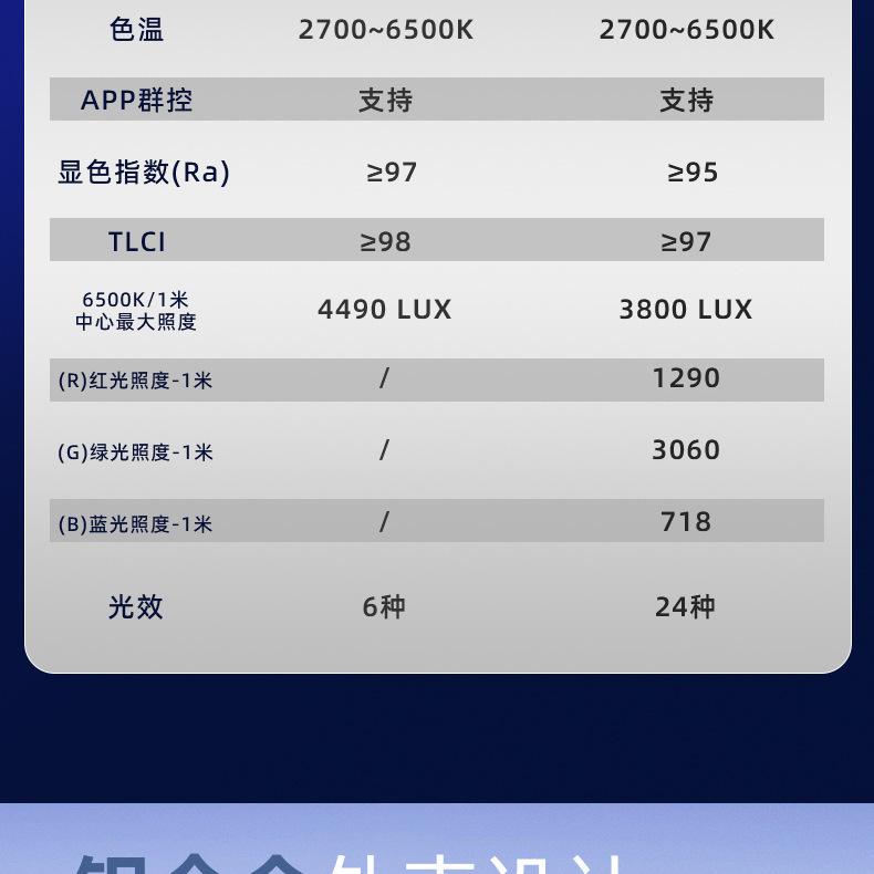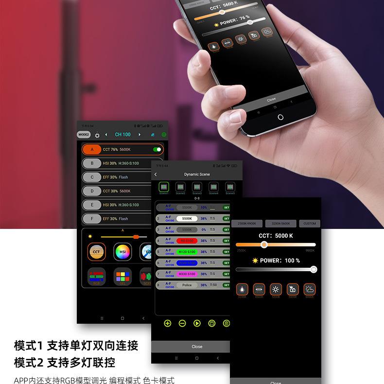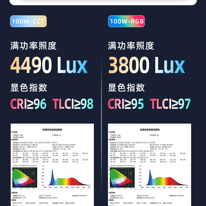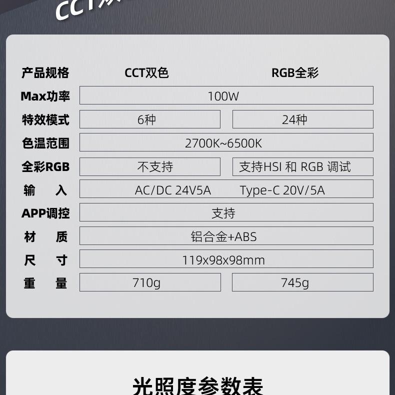 100w·dual color temperature·app control, 100w·dual color temperature + full color·app control, 20800 mah power handle