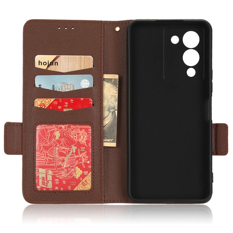 【Características】Cuero de lichi de alta calidad, resistente al desgaste, resistente a las caídas, billetera portátil con ranura para tarjetas