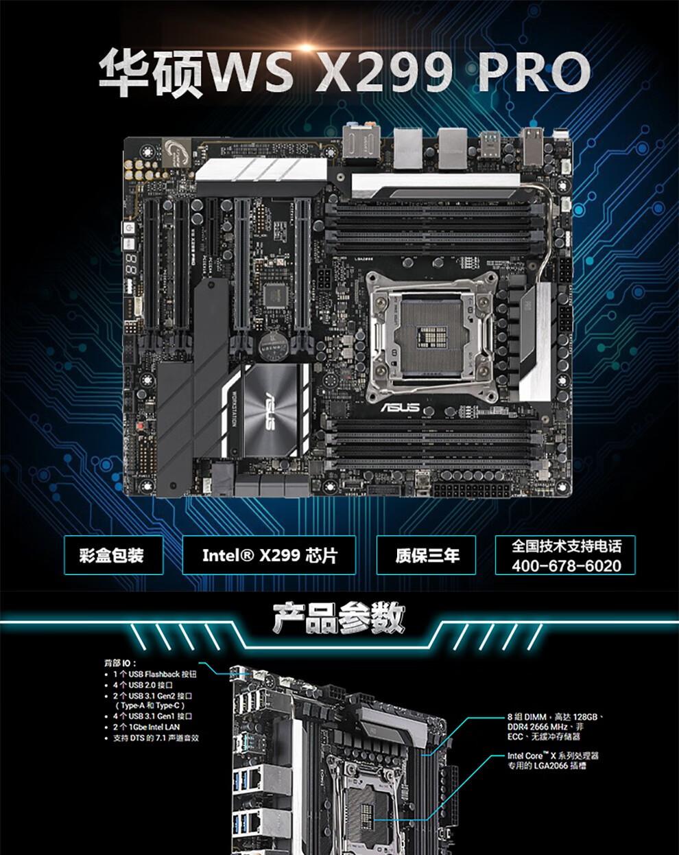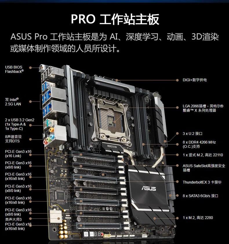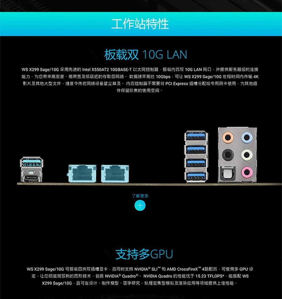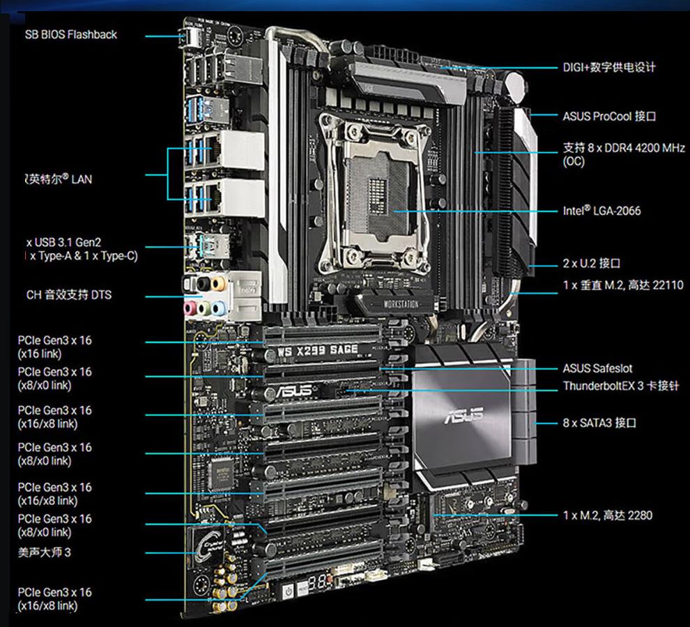 Placa base WS X299 placa base de estación de trabajo única soporta crossfire doble tarjeta doble velocidad placa base doble gigabit