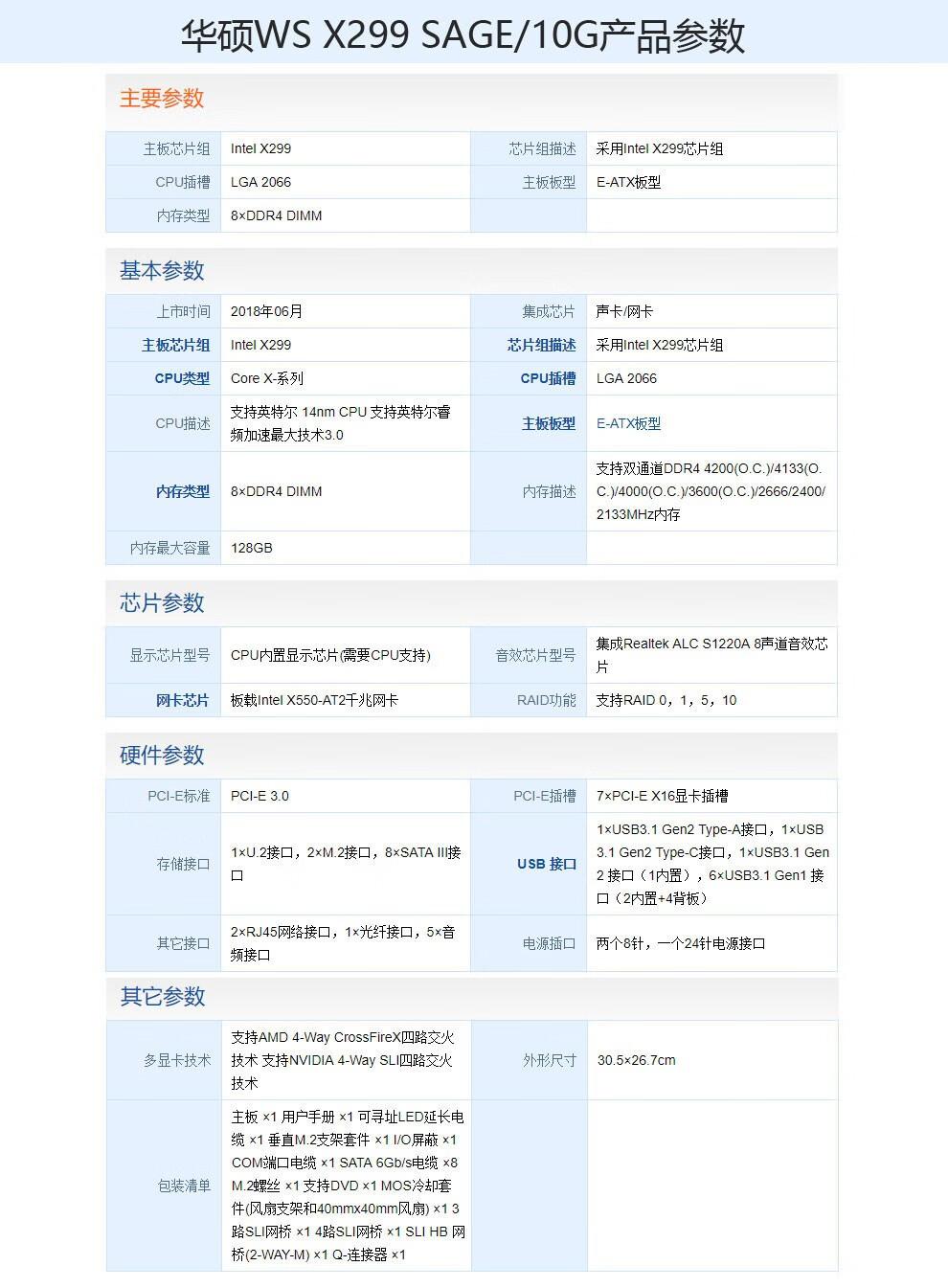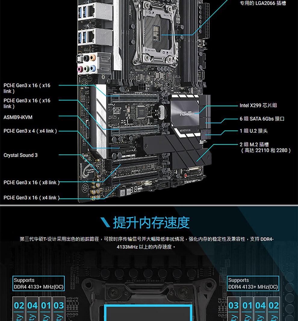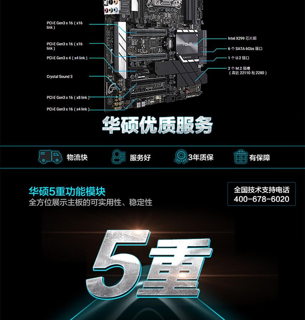 Placa base WS X299 placa base de estación de trabajo única soporta crossfire doble tarjeta doble velocidad placa base doble gigabit