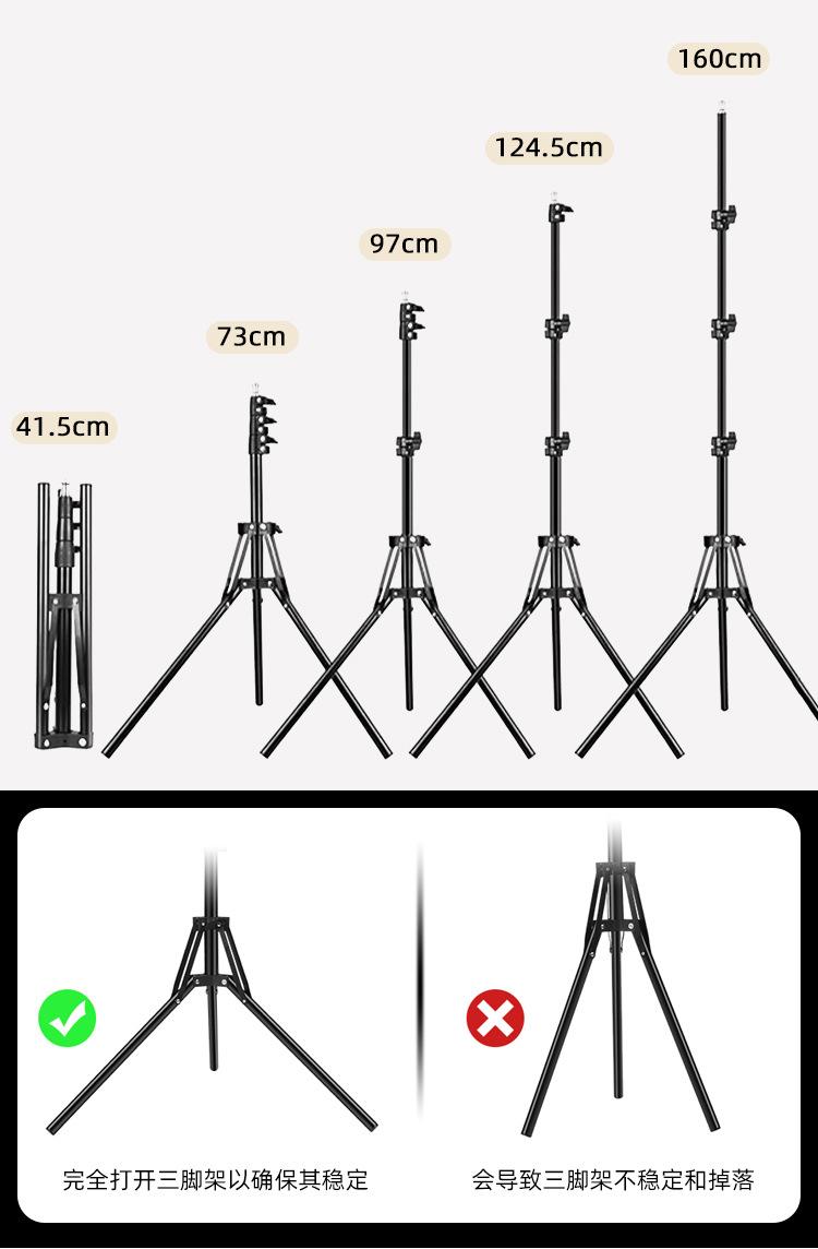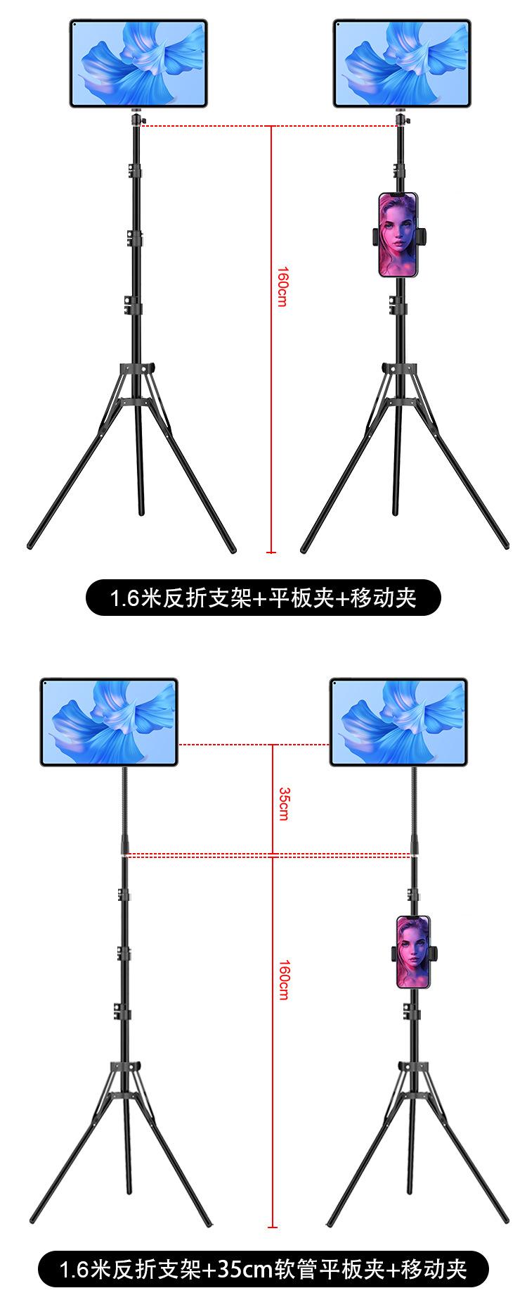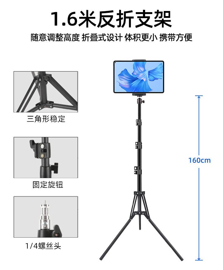 1.6m reflective stand + 360-degree adjustable pan/tilt + mobile phone and tablet dual-purpose clip + bluetooth + mobile phone clip