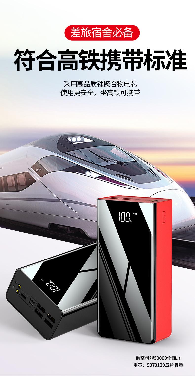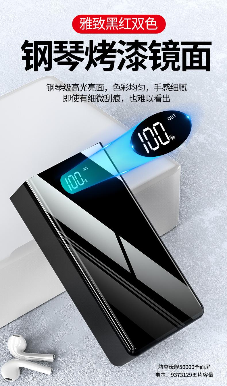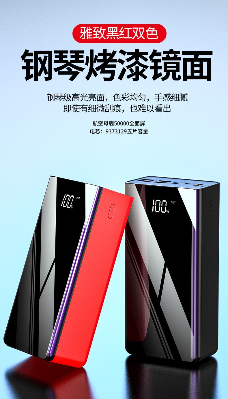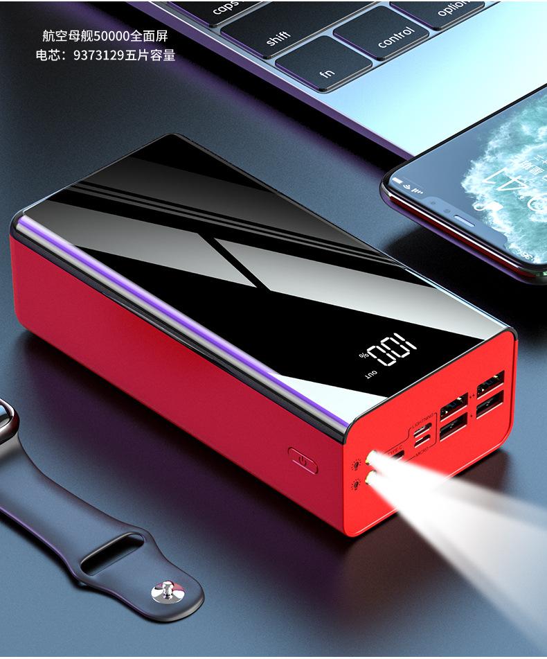 Banco de energía de 50000 mAh con certificación 3C Kc transfronterizo, espejo, estilo camping al aire libre, fuente de alimentación móvil de capacidad súper grande