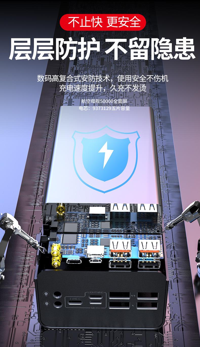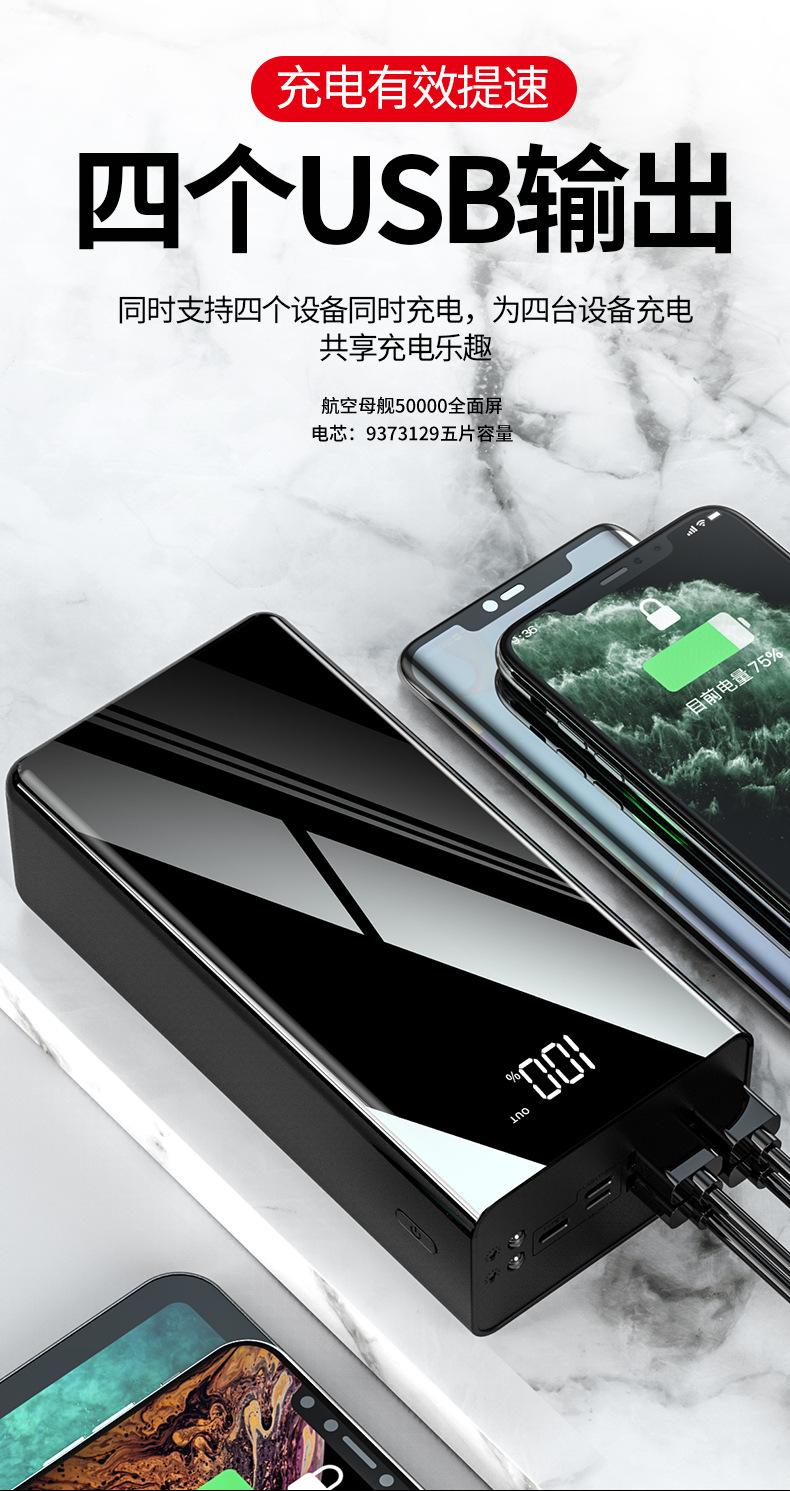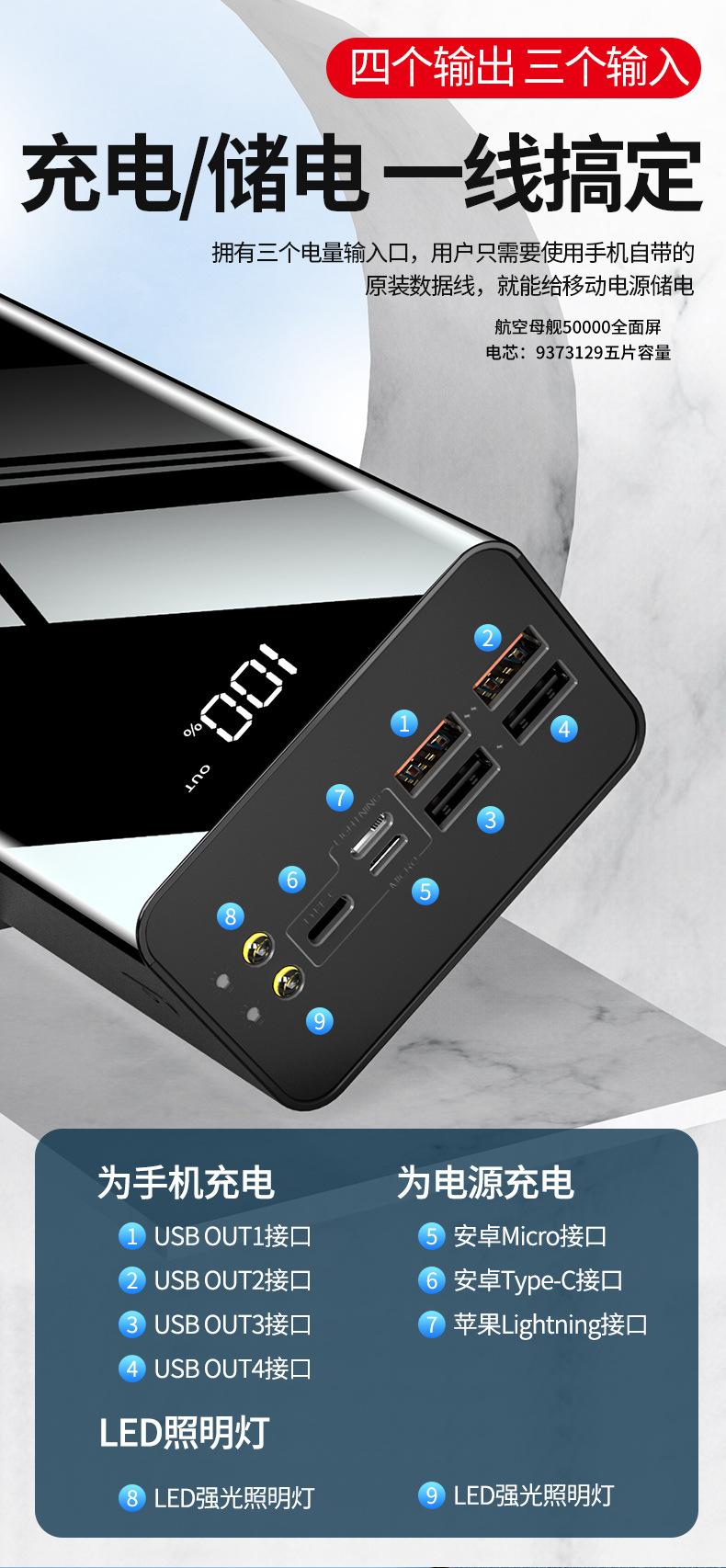 Banco de energía de 50000 mAh con certificación 3C Kc transfronterizo, espejo, estilo camping al aire libre, fuente de alimentación móvil de capacidad súper grande