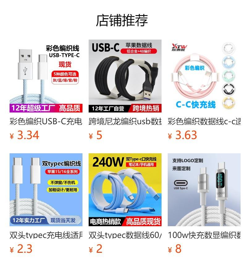 Adecuado para Cable de Carga de Teléfono Móvil Apple Cable de Datos Doble Tipo C Cable de Datos Trenzado de Nailon Huawei Carga Rápida Tipo-C