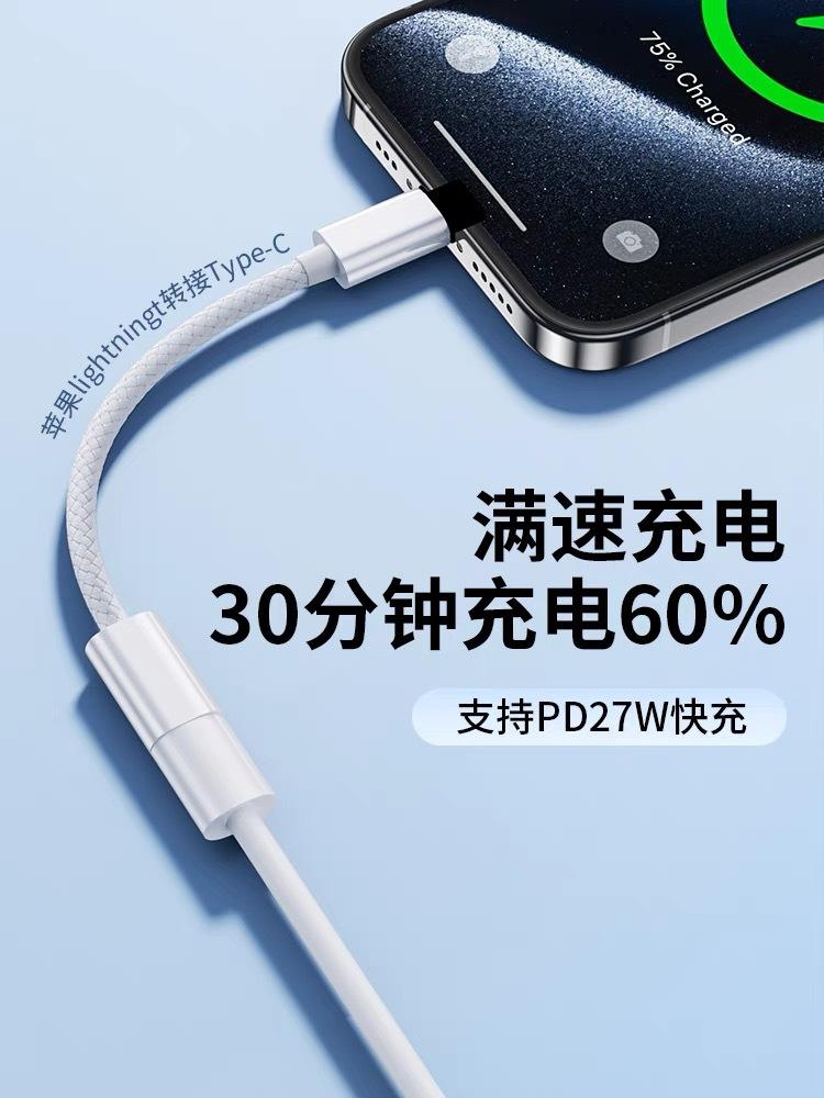 Adecuado para Apple 15 Adaptador iPhone Cable Adaptador Lightning a Tipo-C 60W Carga Rápida iPad Carga Rápida
