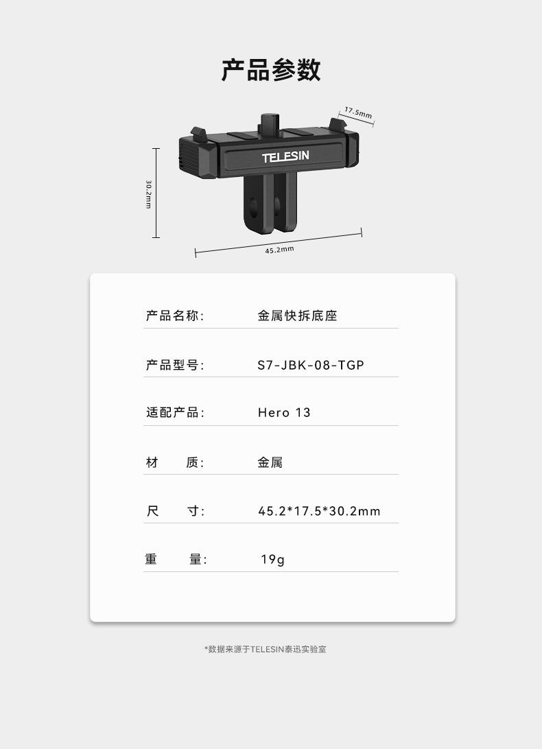 Telesin Es Adecuado para Gopro Hero13 Base Magnética Base de Conversión Adaptador de Liberación Rápida para Cámara Deportiva Accesorios