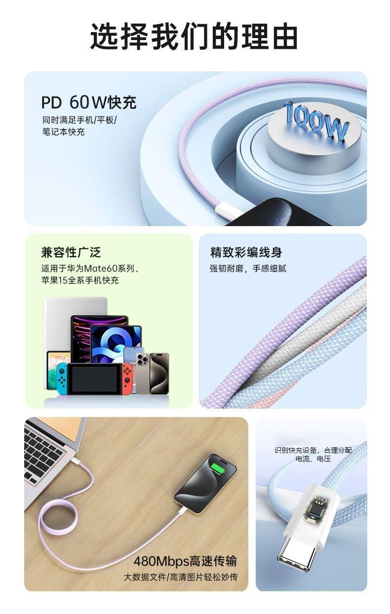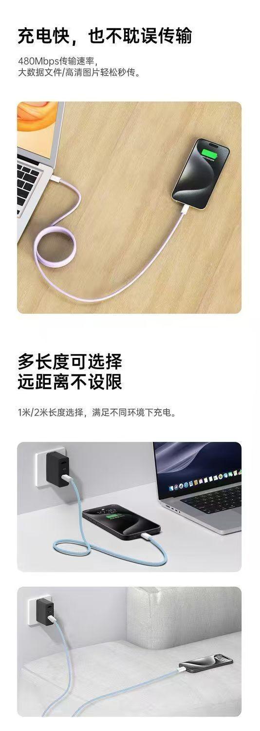 Cable de Datos Trenzado para Teléfono Móvil y Notebook Doble Tipo C/Cable de Carga Rápida Adecuado para Apple 15