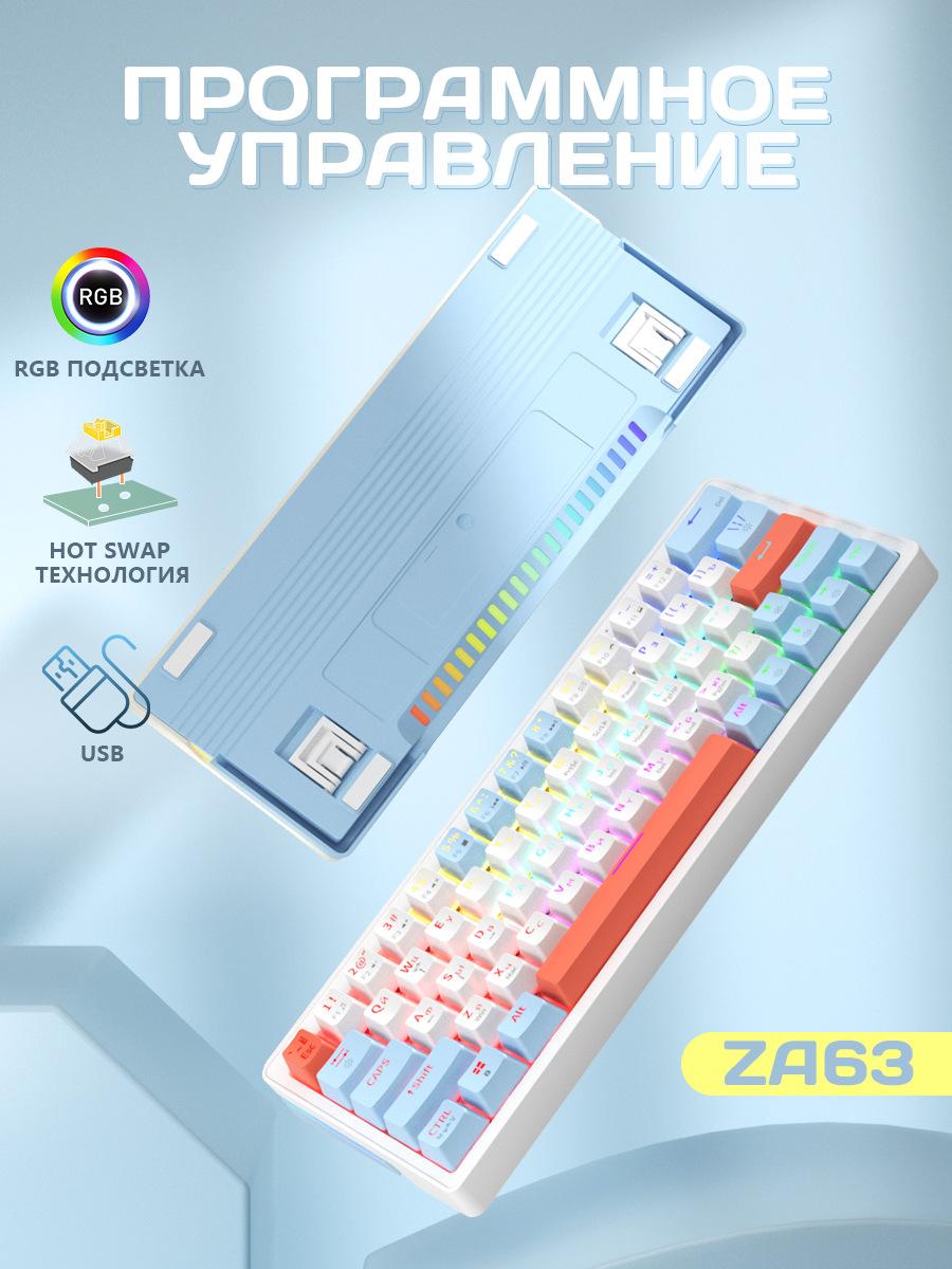 Teclado mecánico Zifriend ruso Za63, intercambiable en caliente, con tres modos de funcionamiento, inalámbrico por Bluetooth y para juegos de deportes electrónicos.