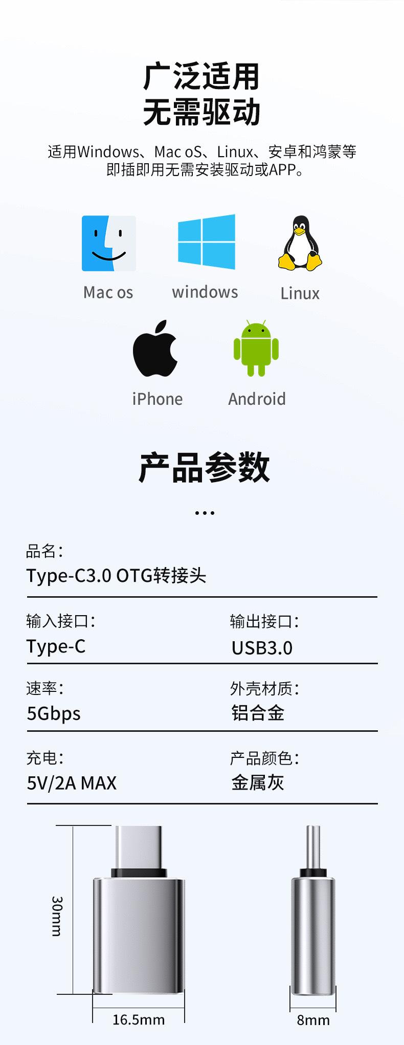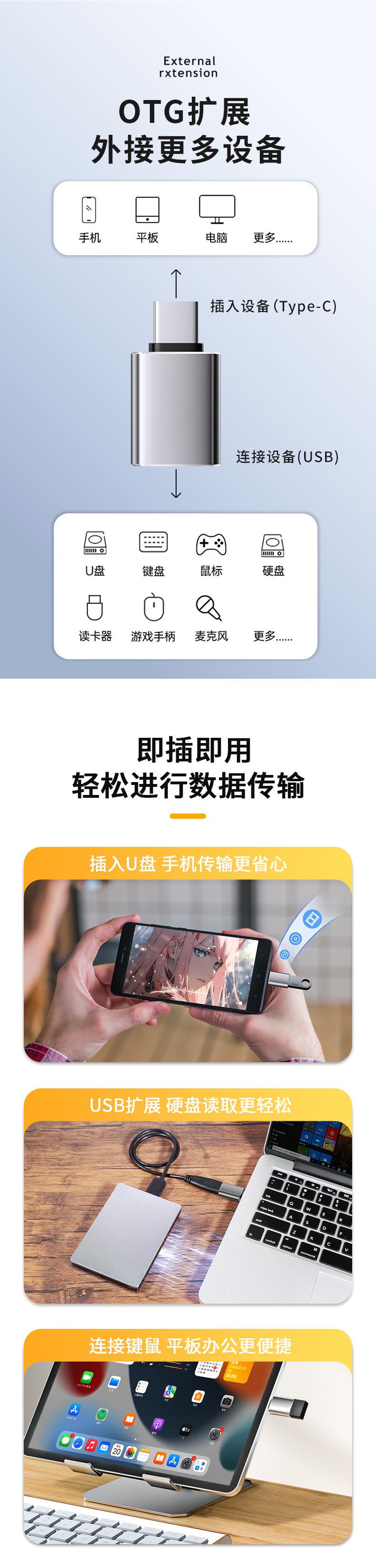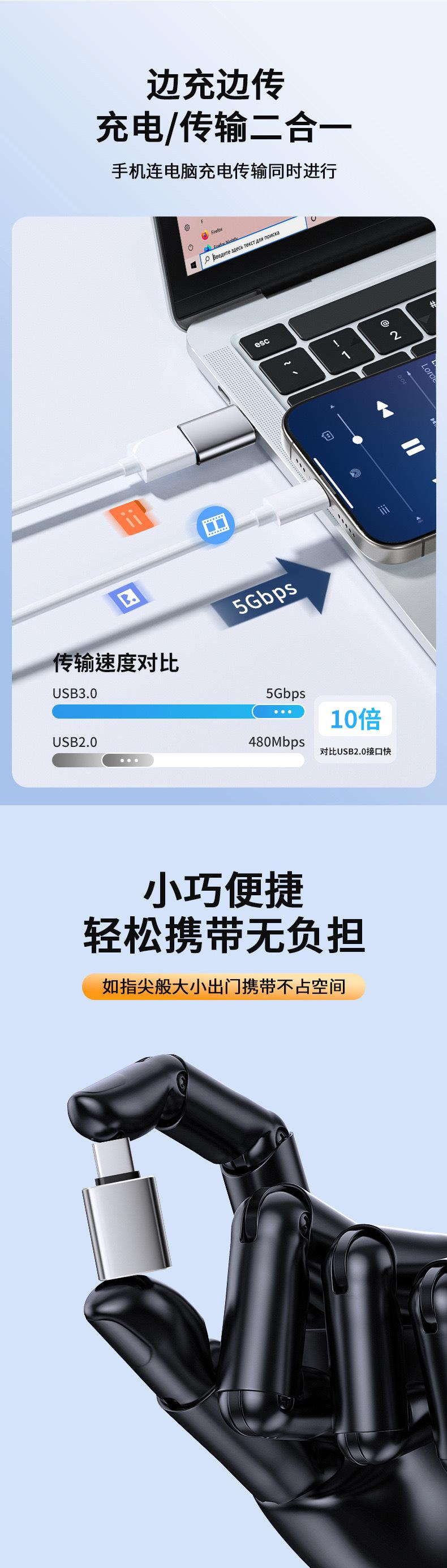 Adaptador OTG tipo C a USB 3.0, convertidor universal de datos para tabletas Android a USB, conversión de computadora.