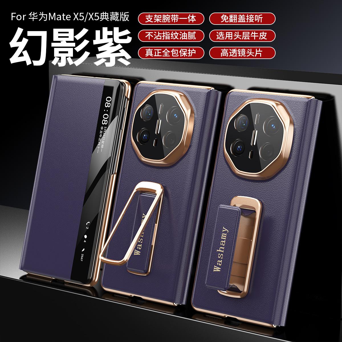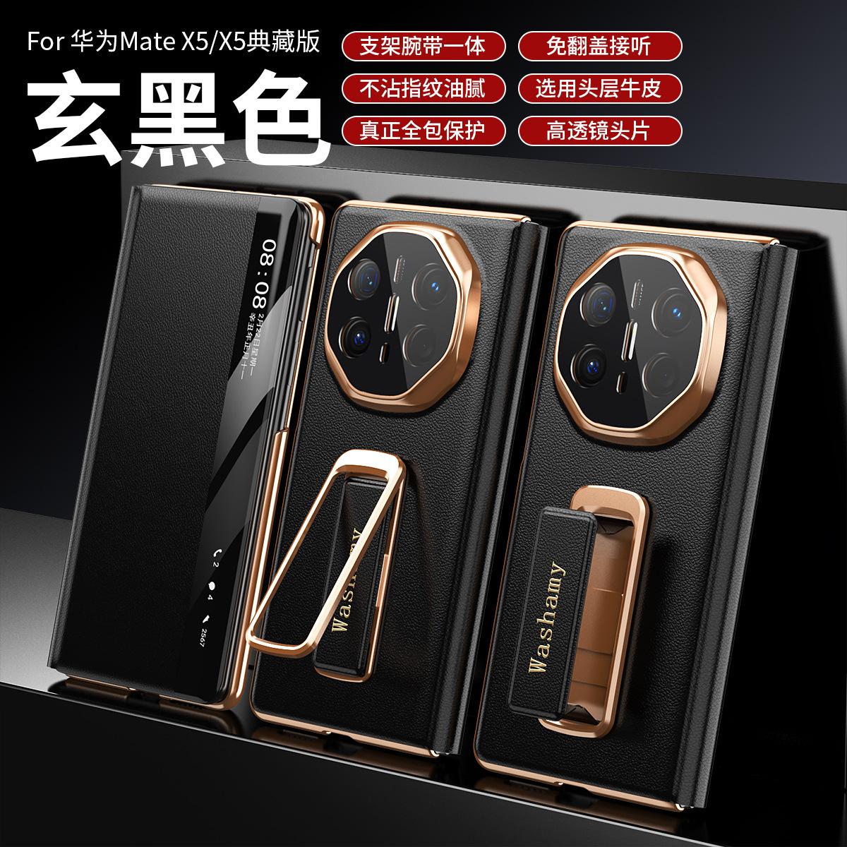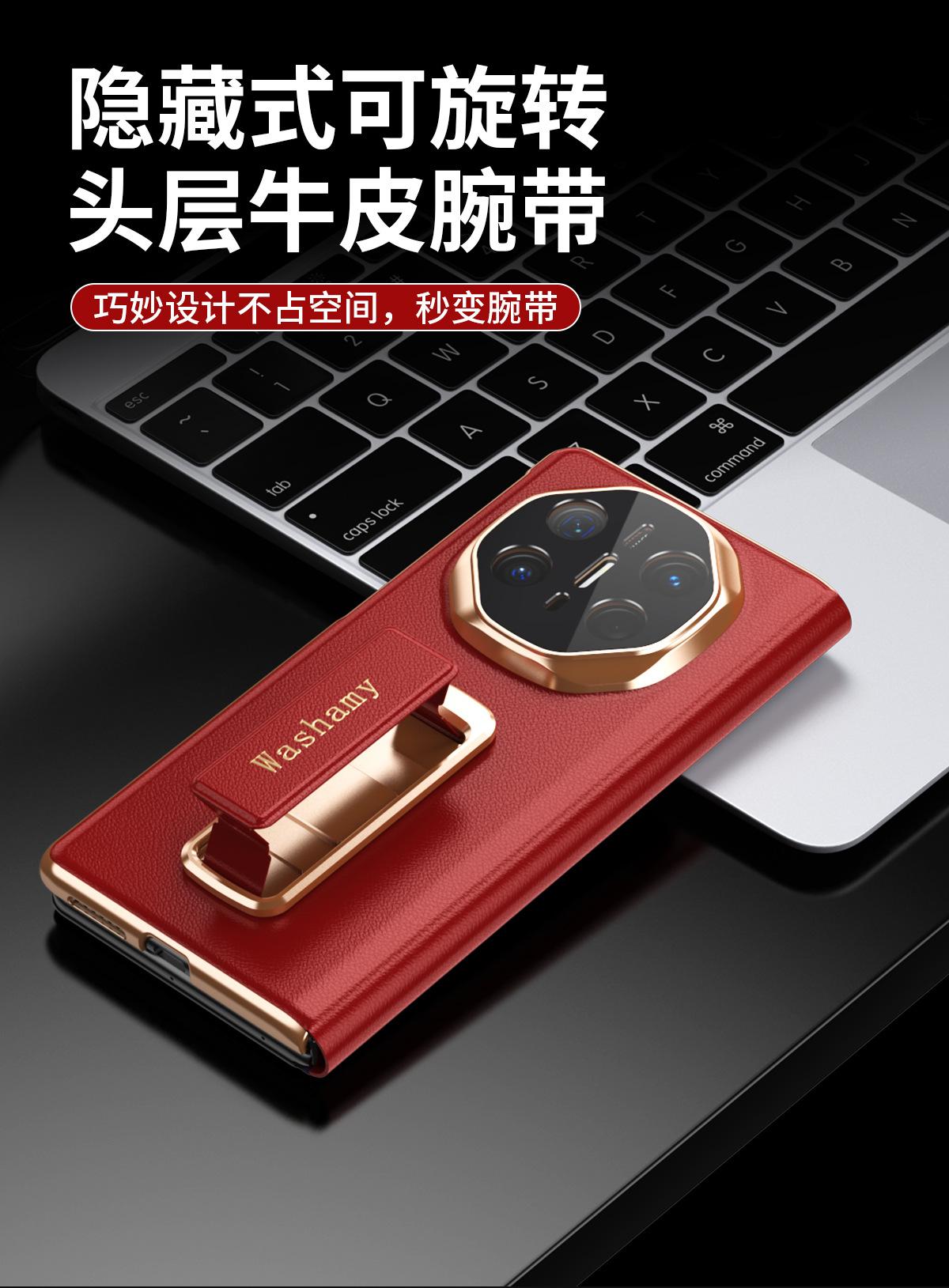 Adecuado para Huawei Matex6 Cuero Genuino Inteligente Magnético Tipo Libro Funda de Cuero Matex5 Soporte Giratorio de Muñeca Protección Total