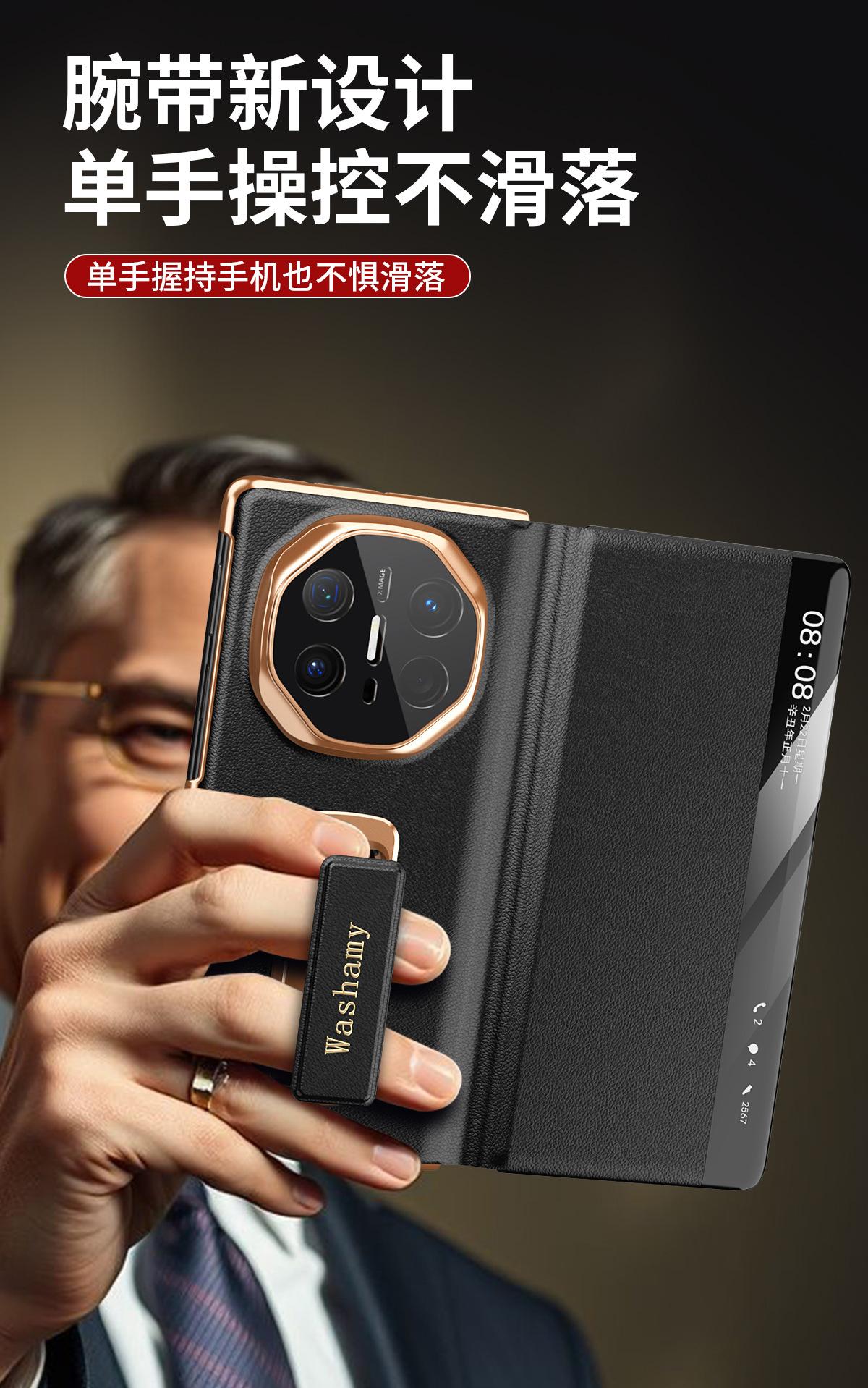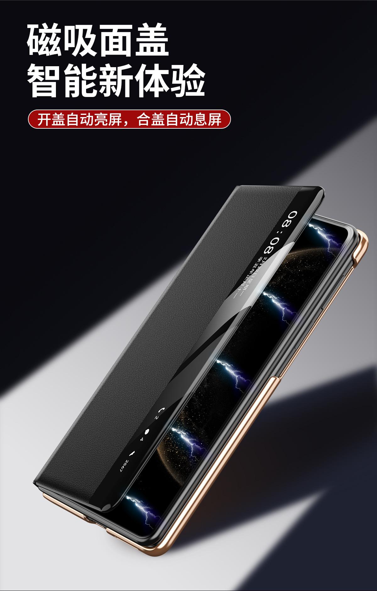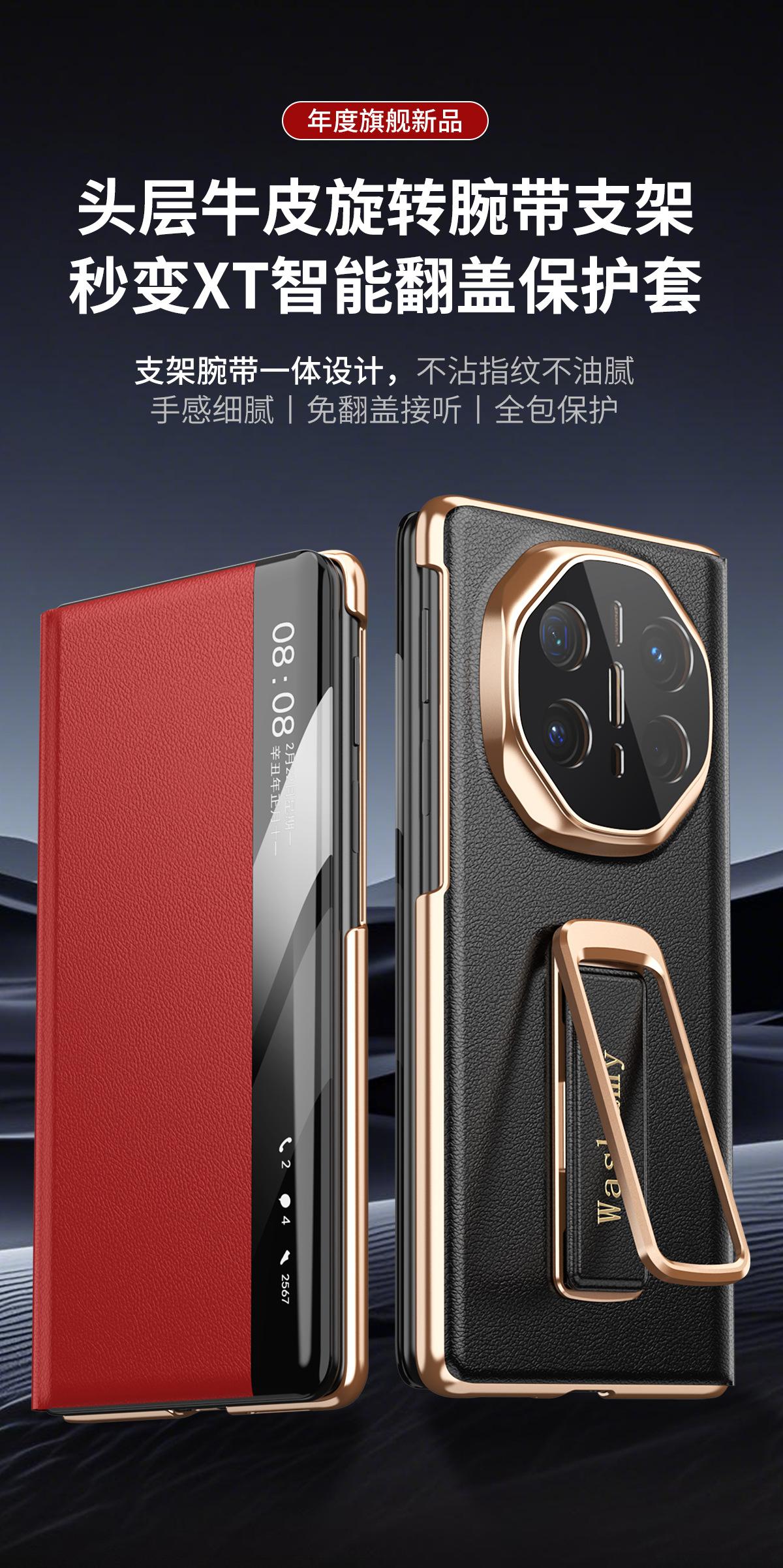 Adecuado para Huawei Matex6 Cuero Genuino Inteligente Magnético Tipo Libro Funda de Cuero Matex5 Soporte Giratorio de Muñeca Protección Total